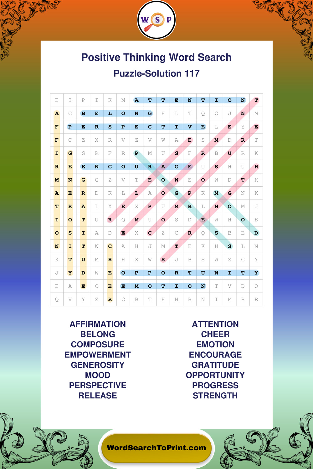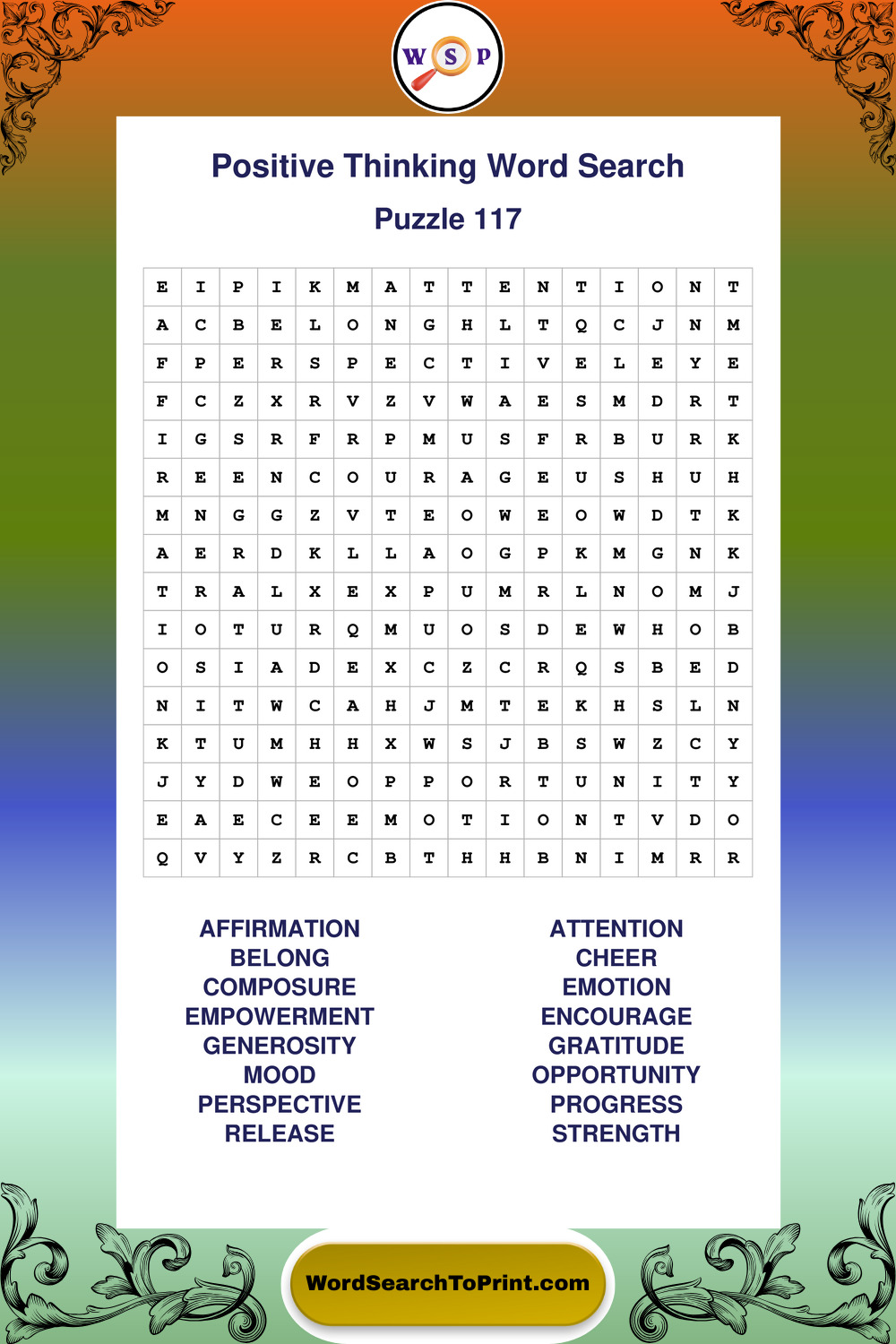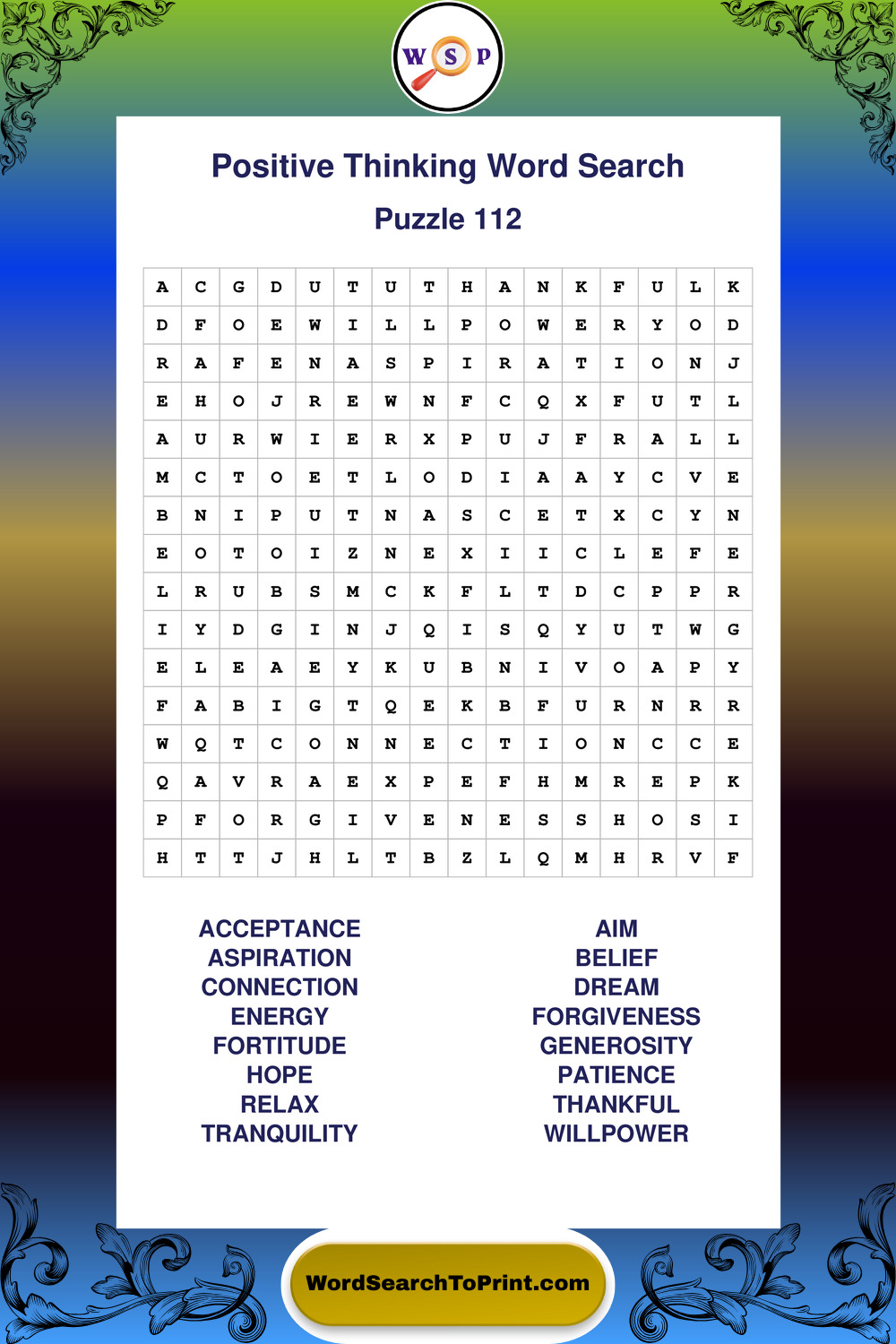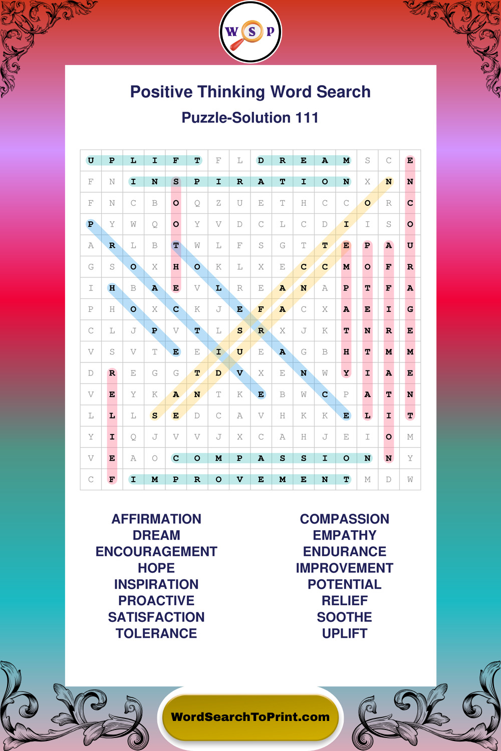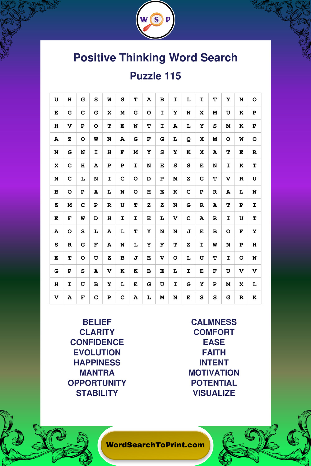 Printable Positive Thinking Wordsearch Puzzles
