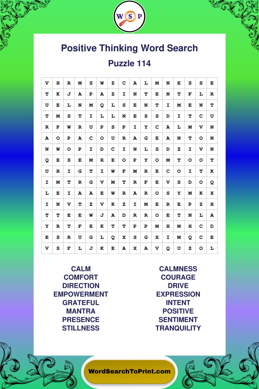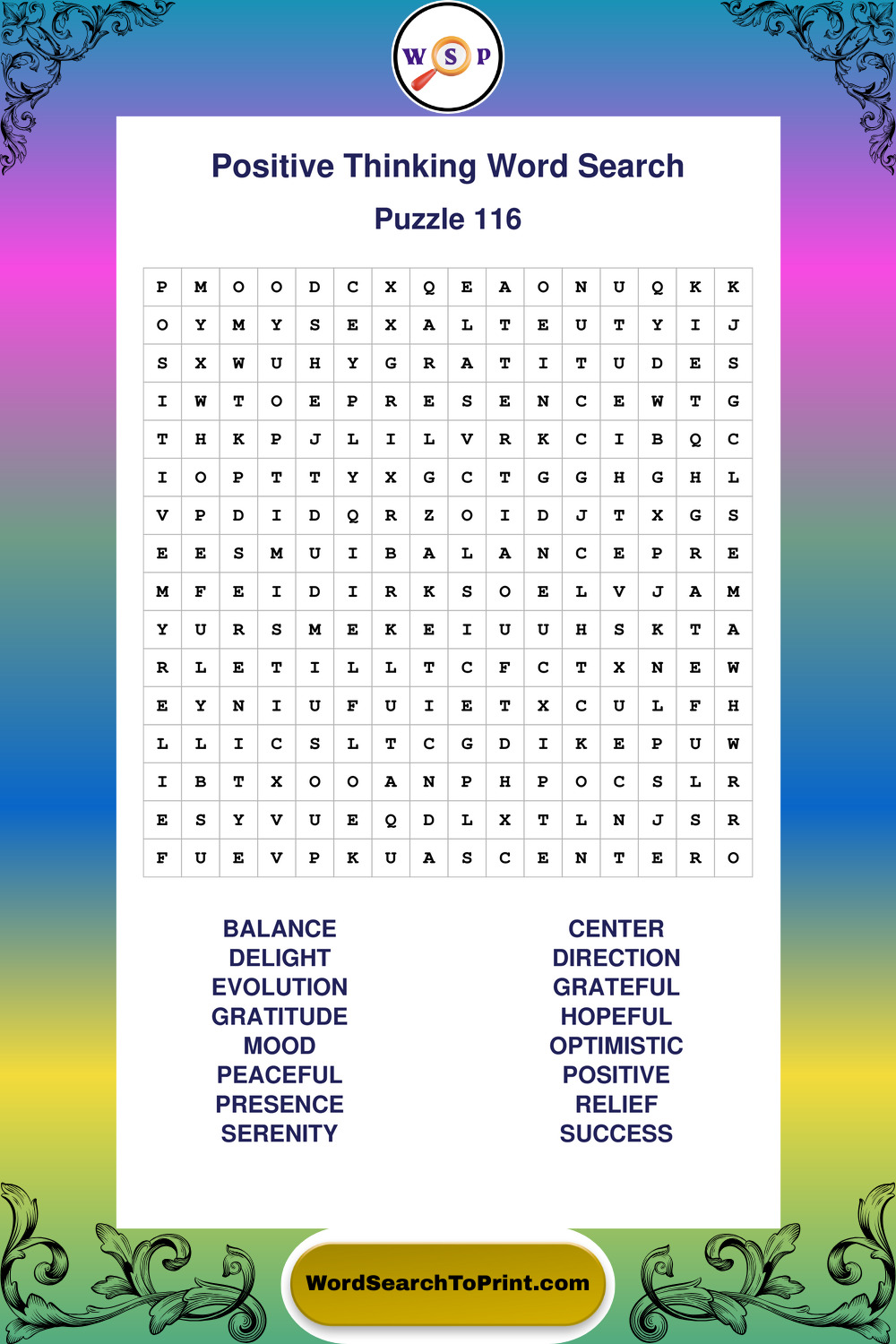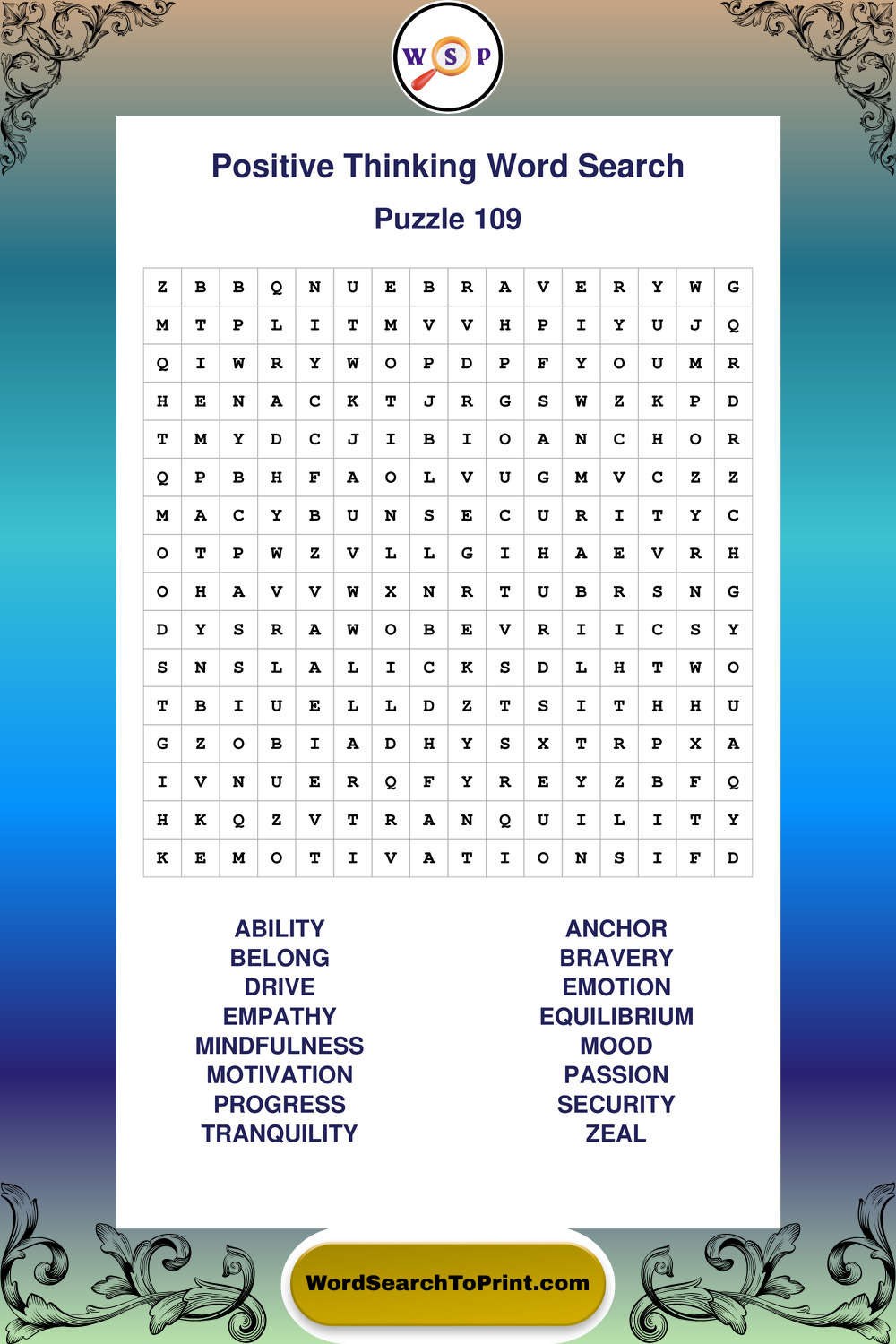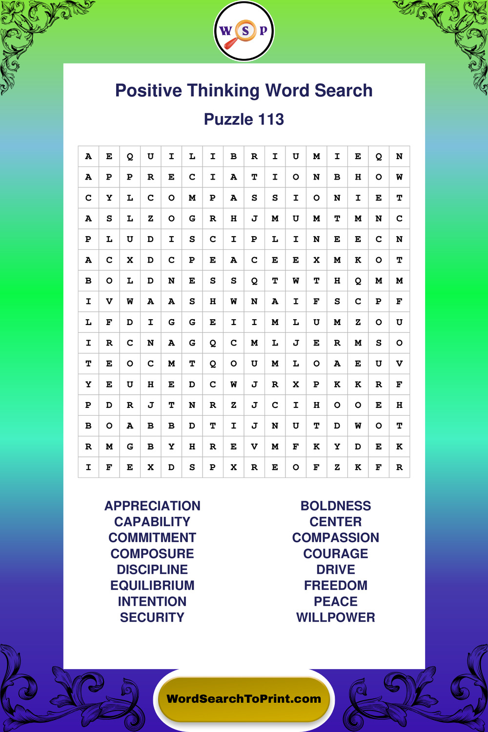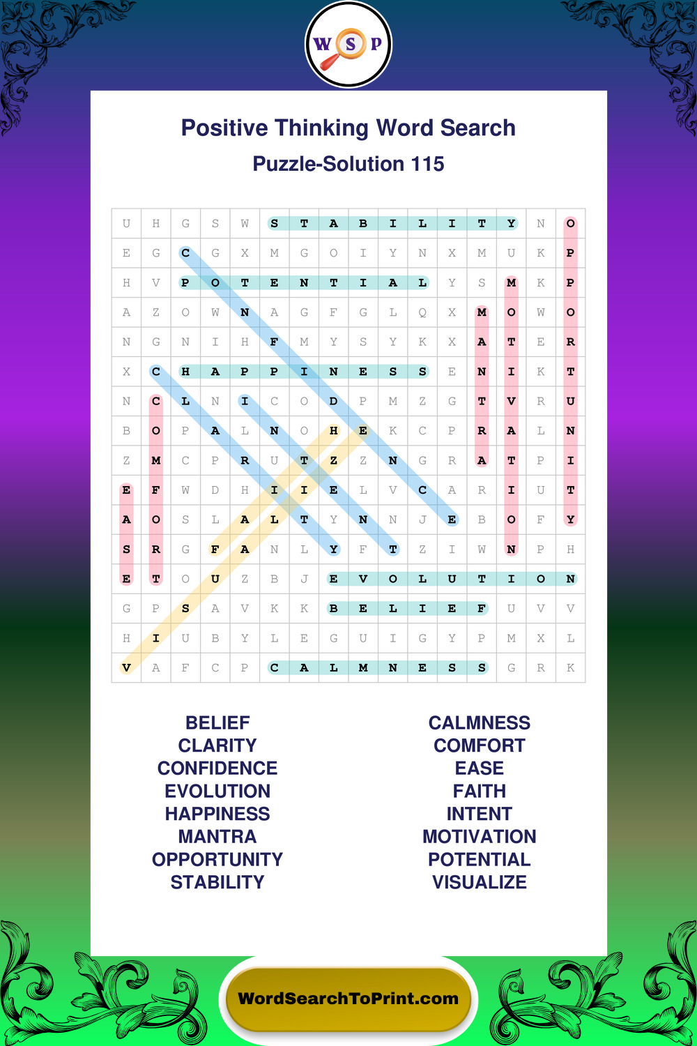 Printable Positive Thinking Wordsearch Puzzles