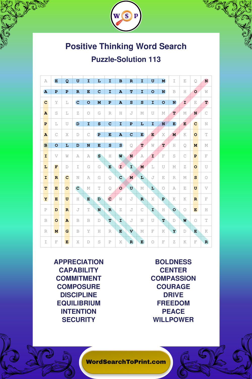 Positive Thinking Wordsearches