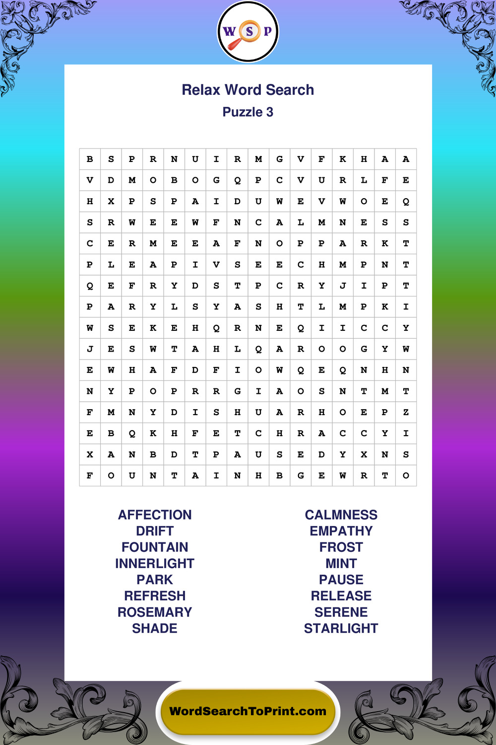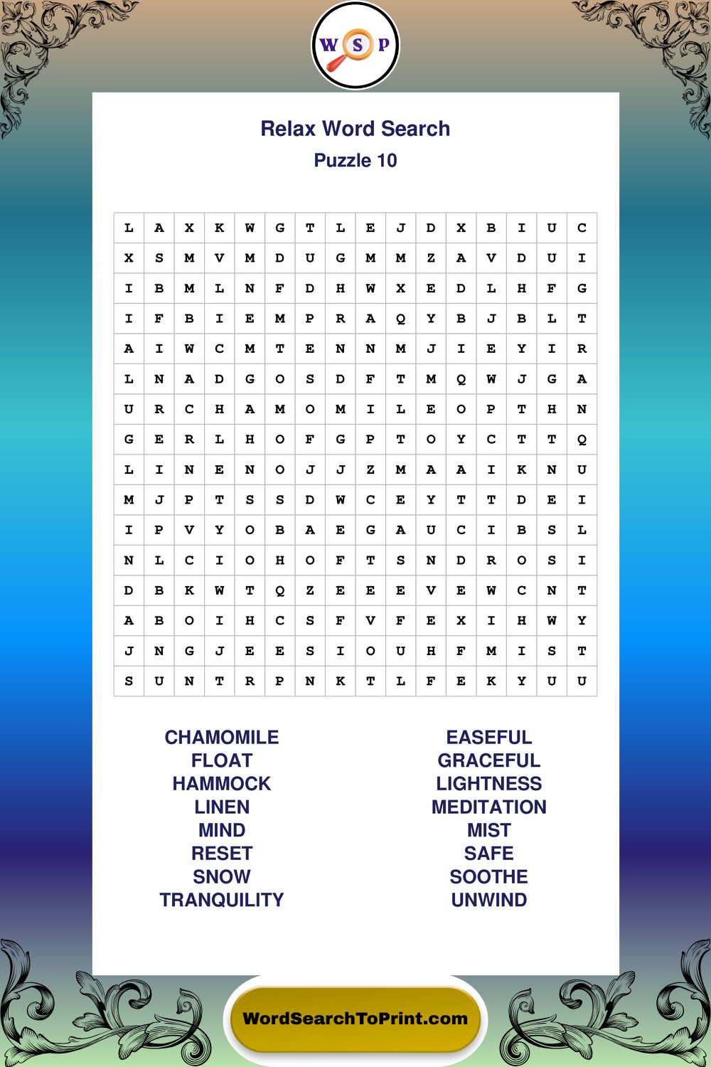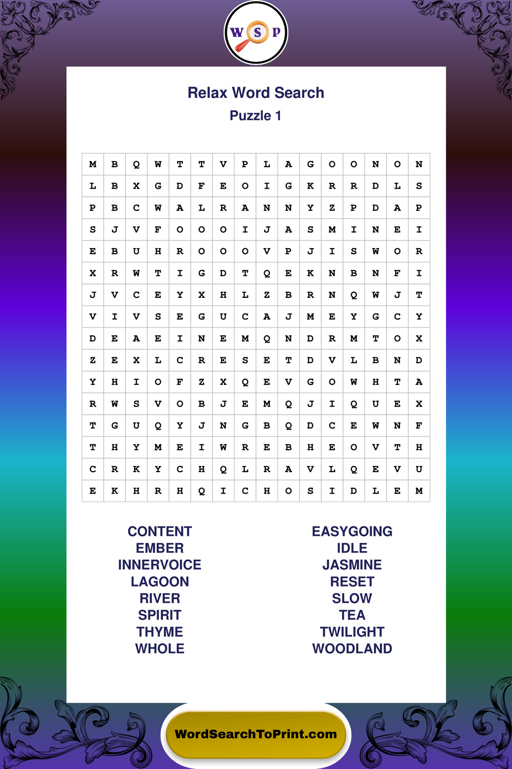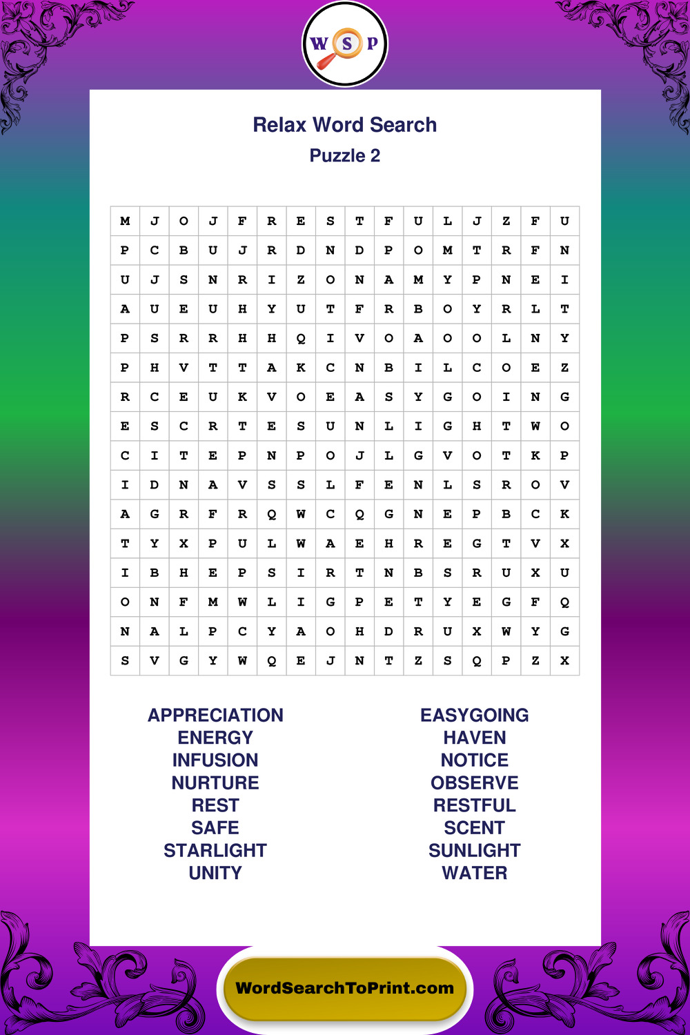 Printable Relax Wordsearch Puzzles