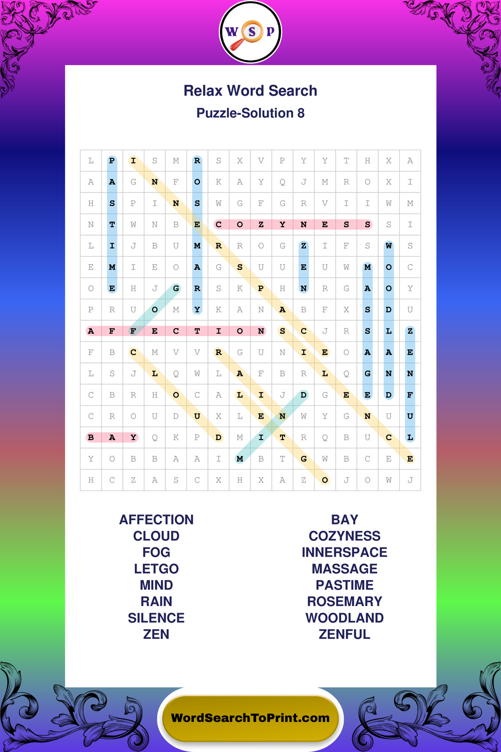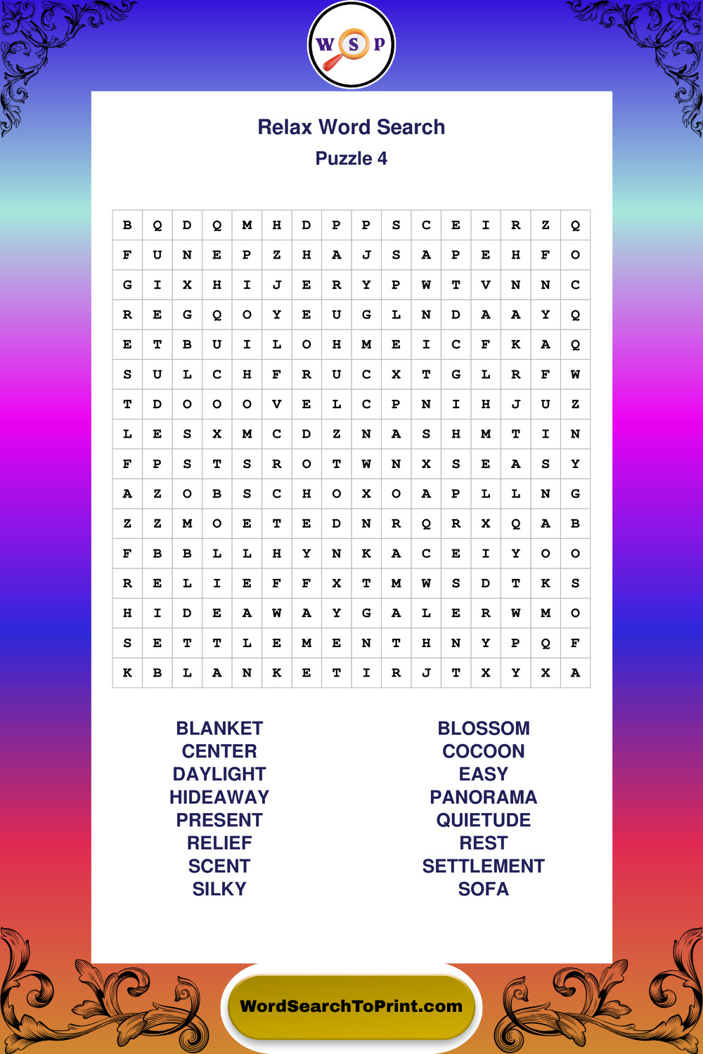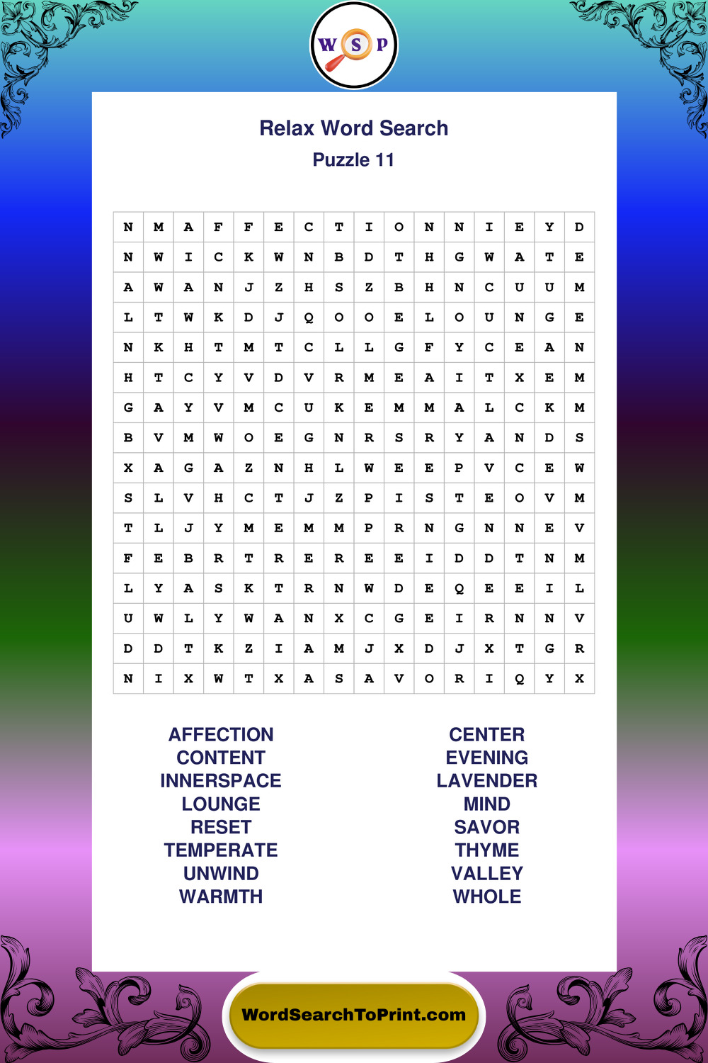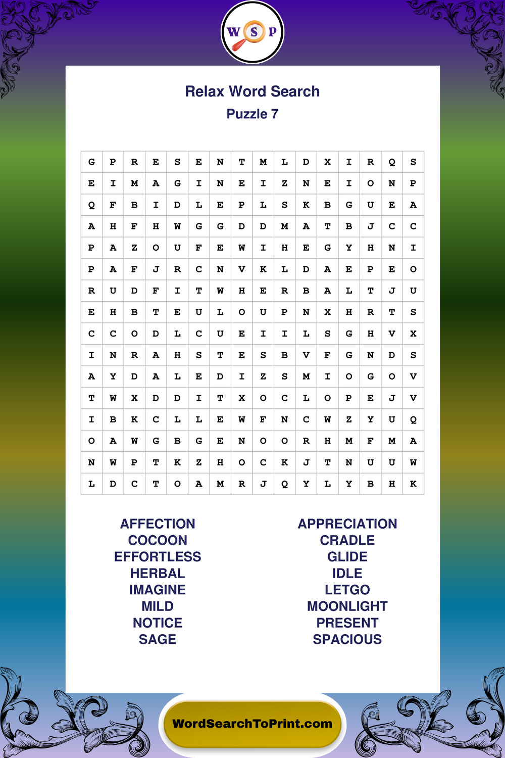 Printable Relax Wordsearch Puzzles