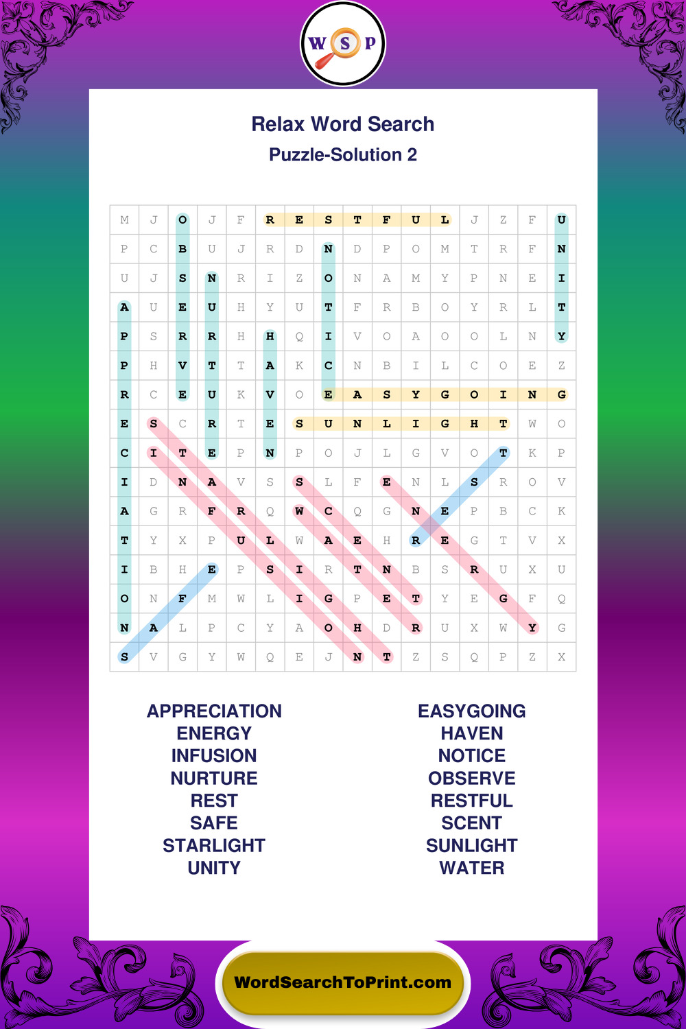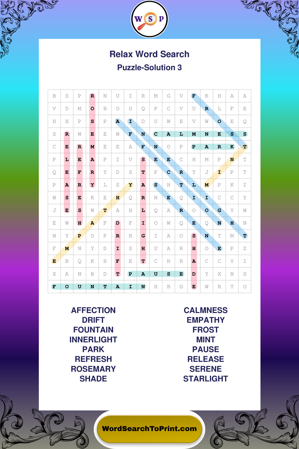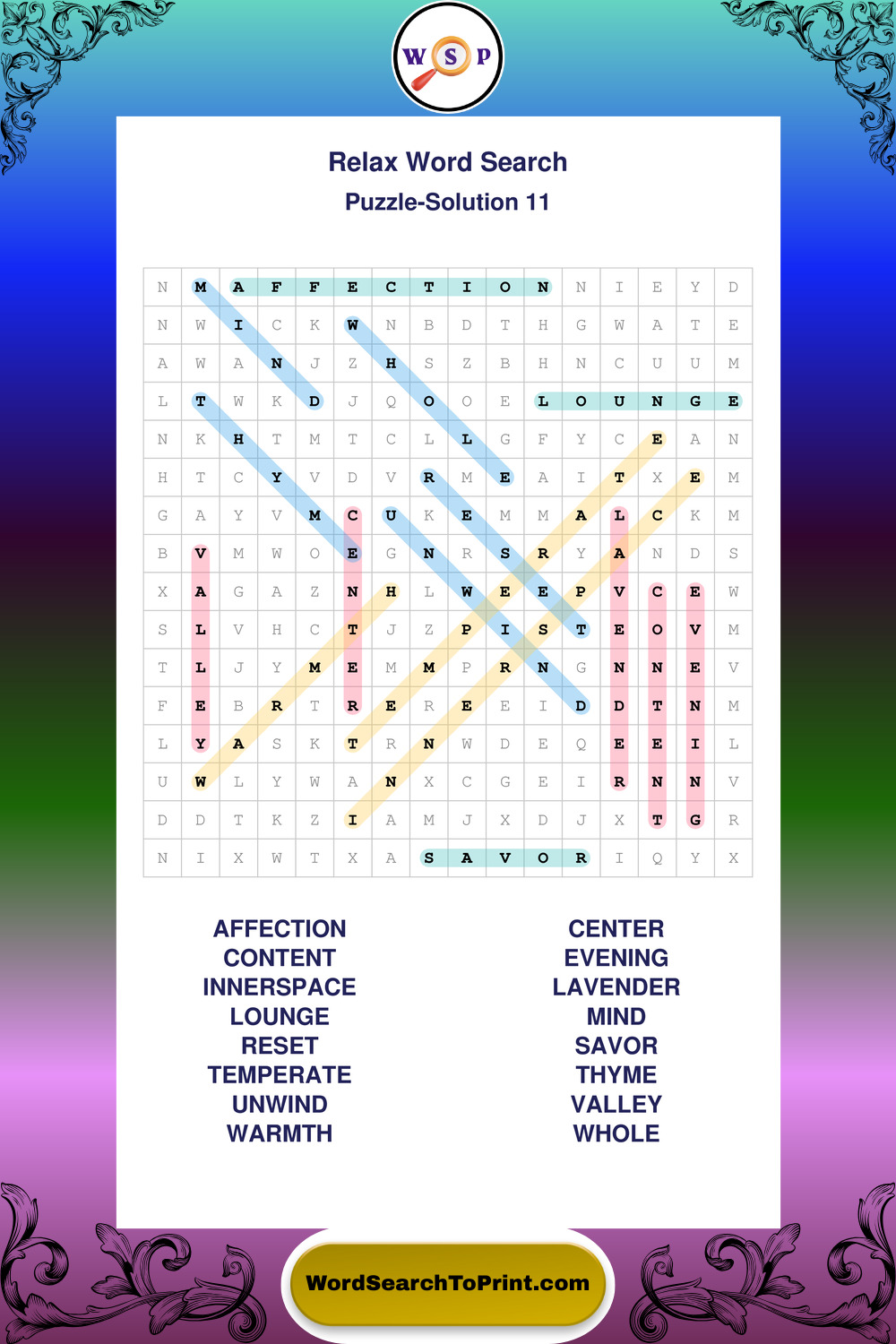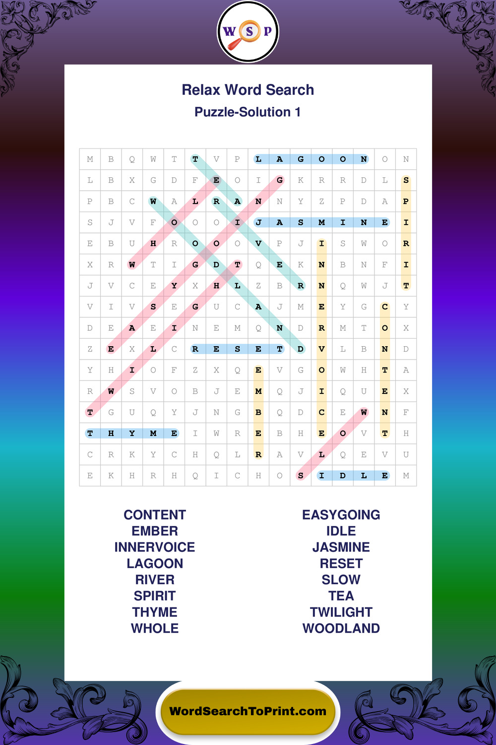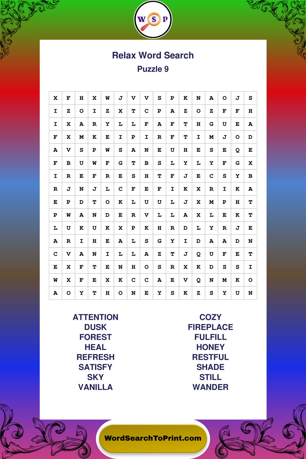 Printable Relax Wordsearch Puzzles