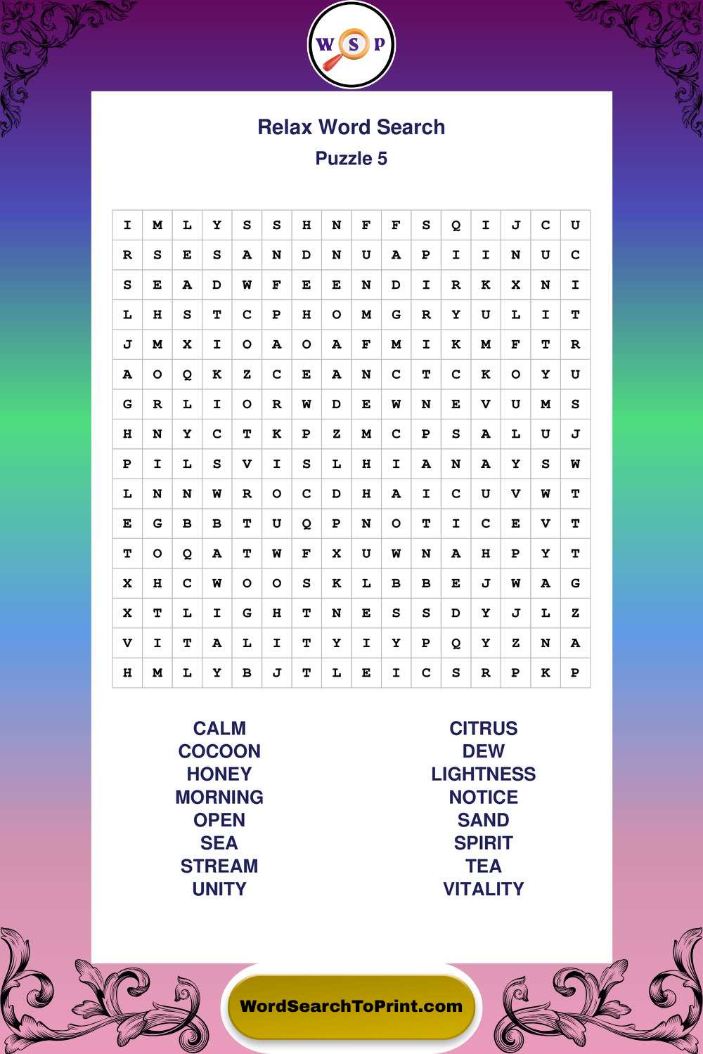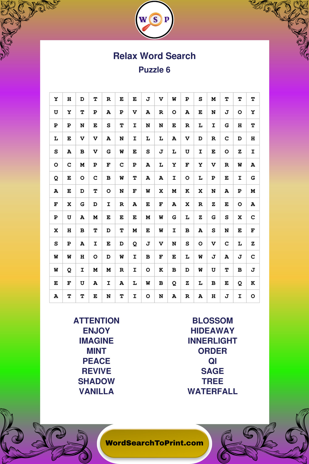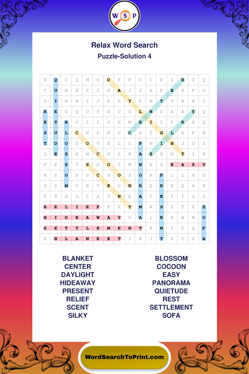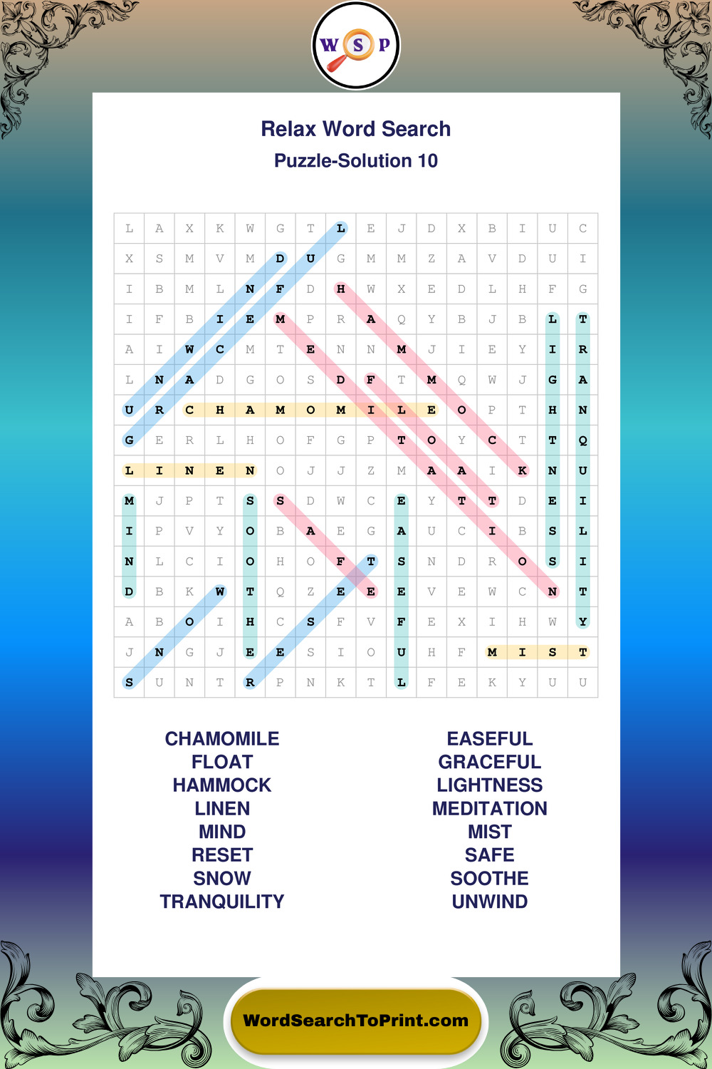 Printable Relax Wordsearch Puzzles