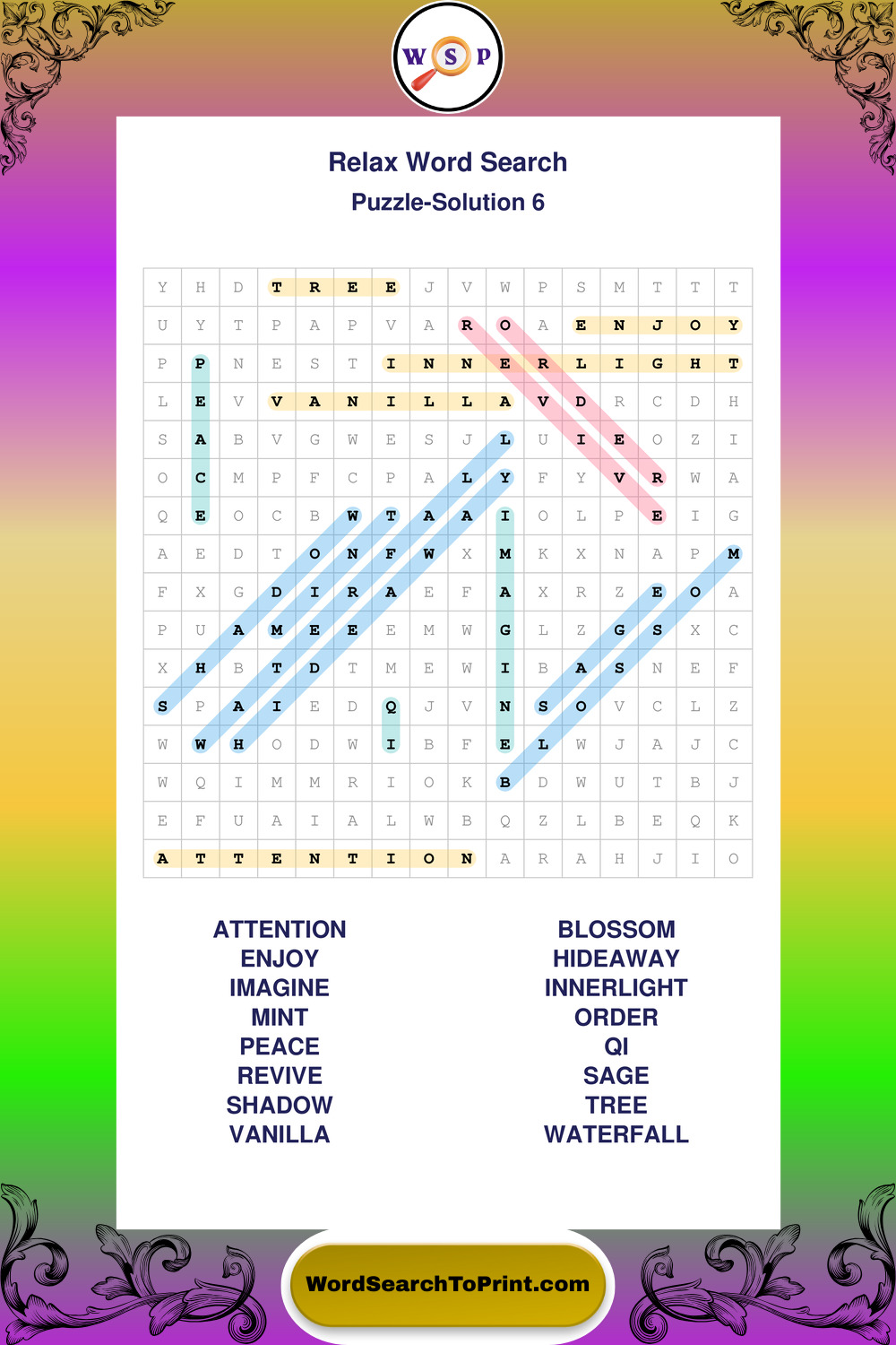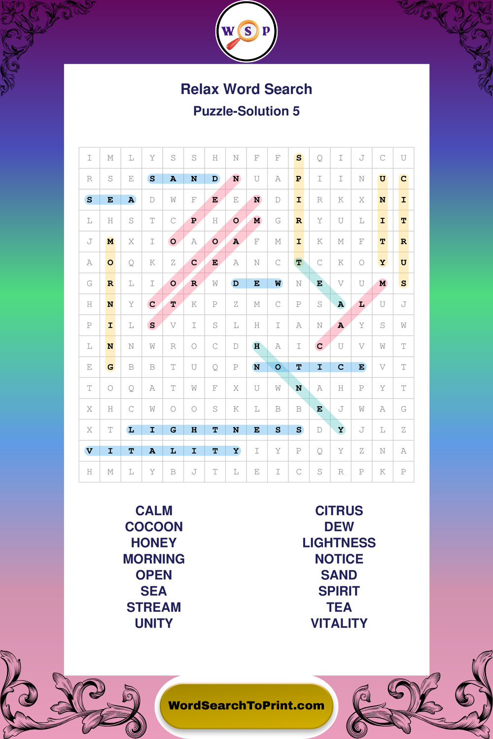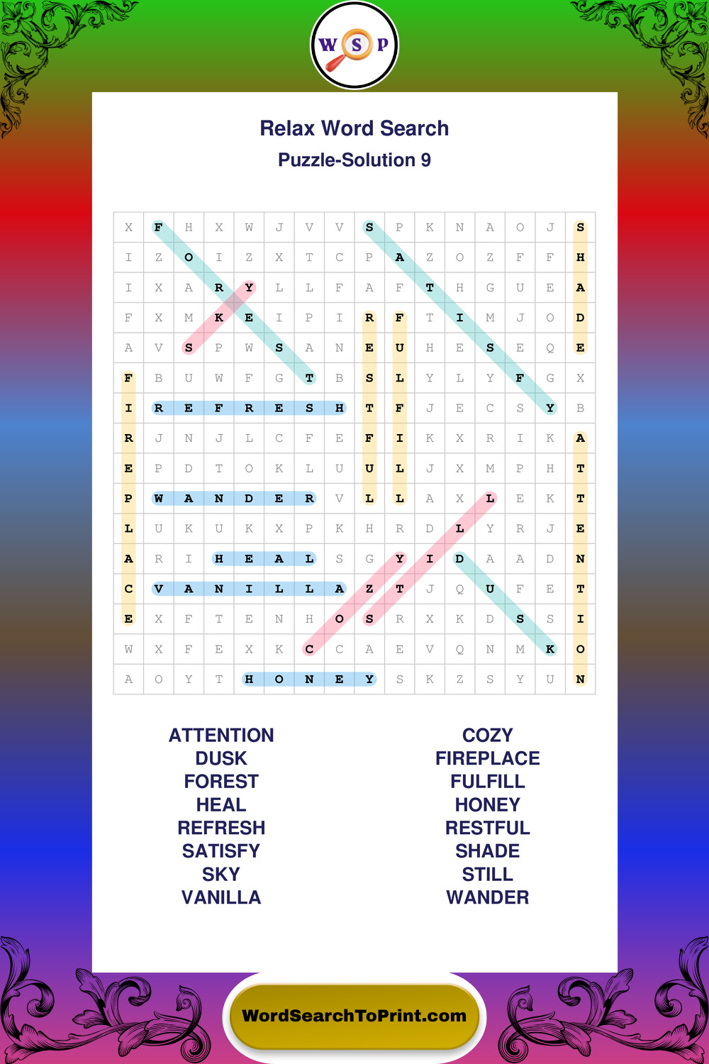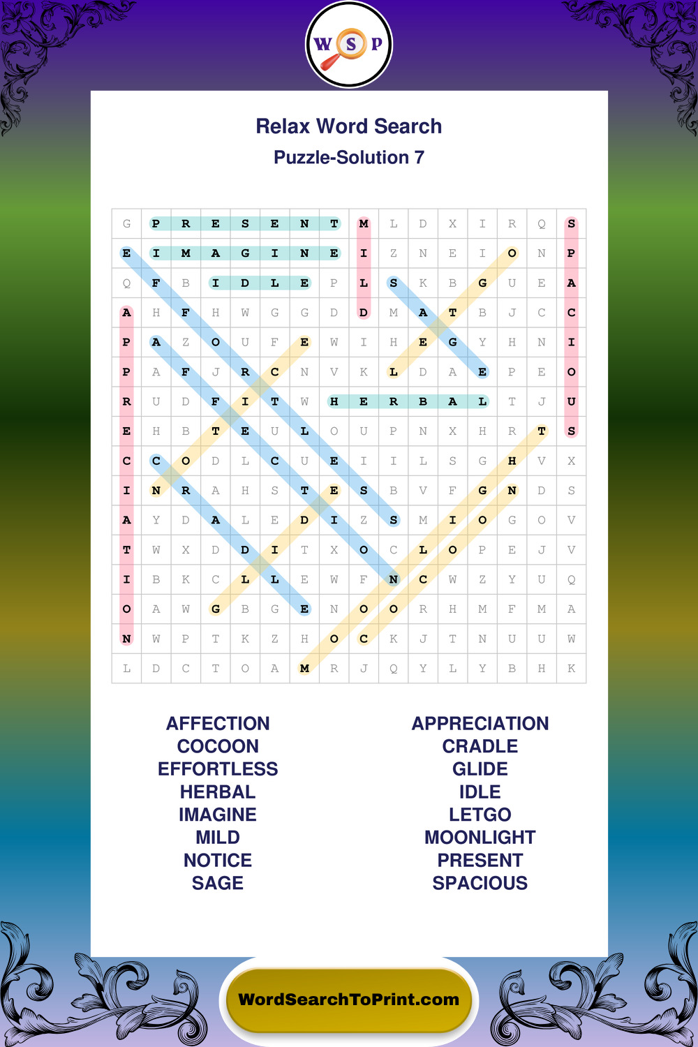 Printable Relax Wordsearch Puzzles
