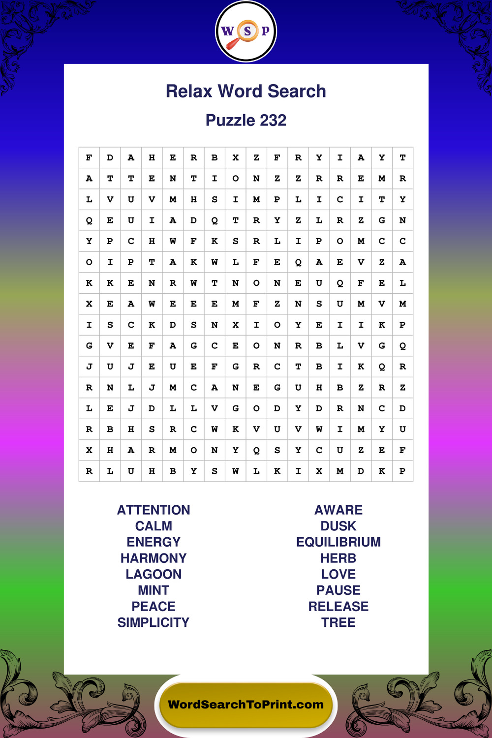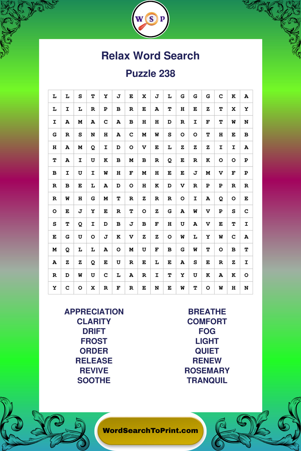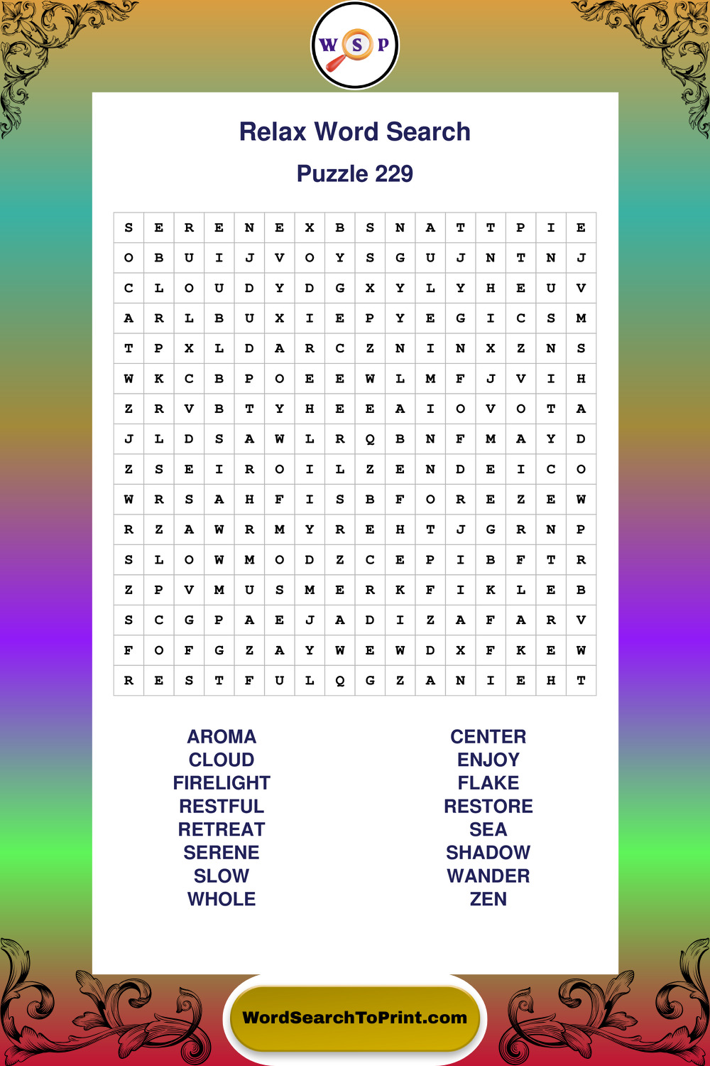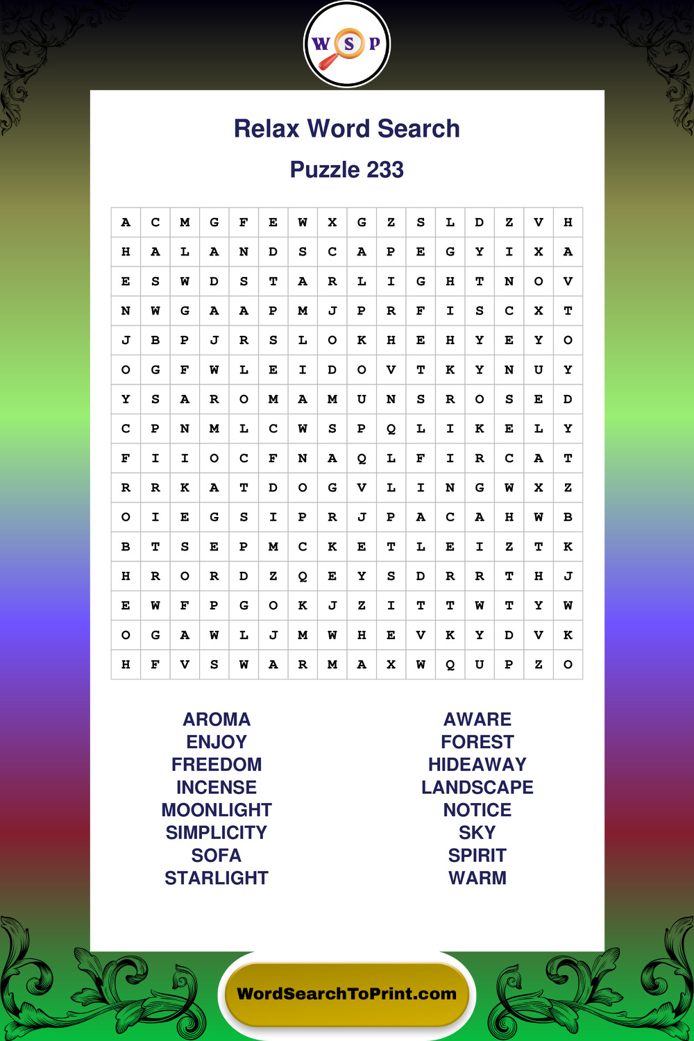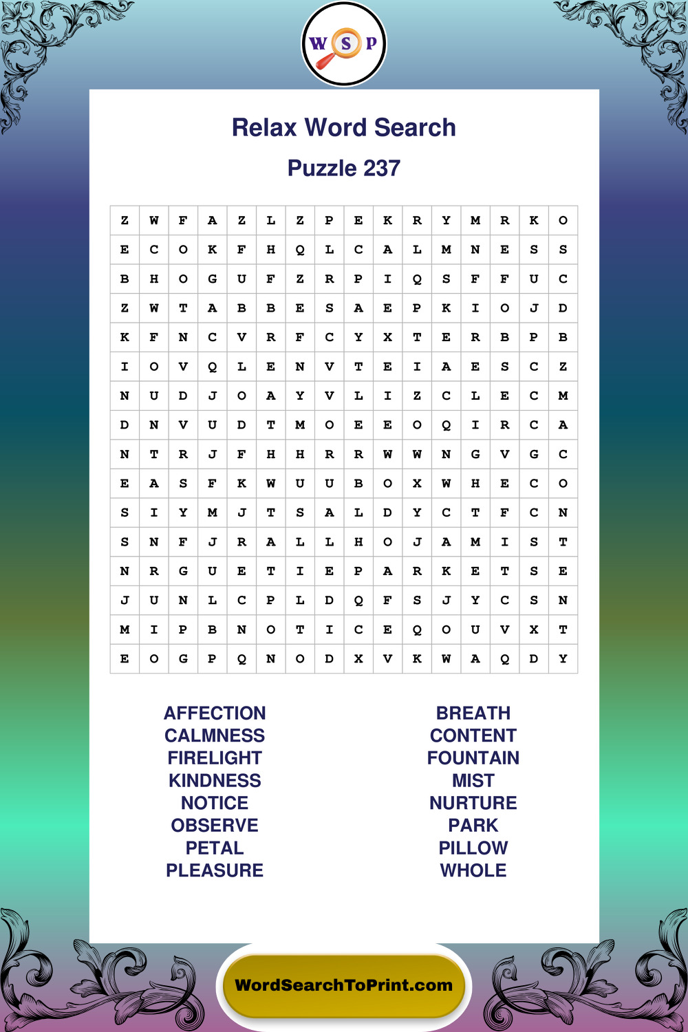 Printable Relax Wordsearch Puzzles