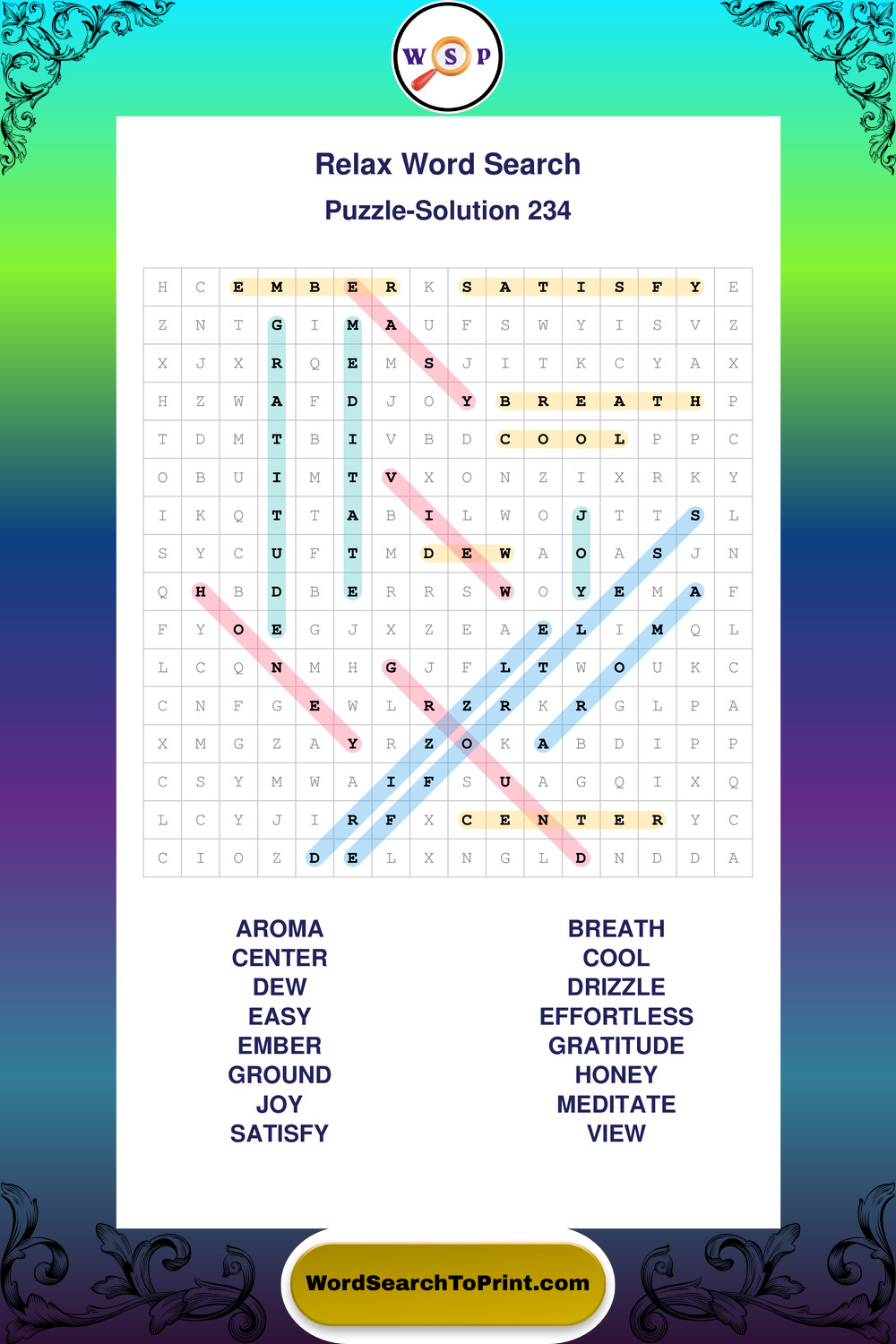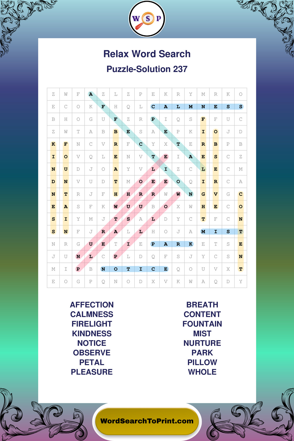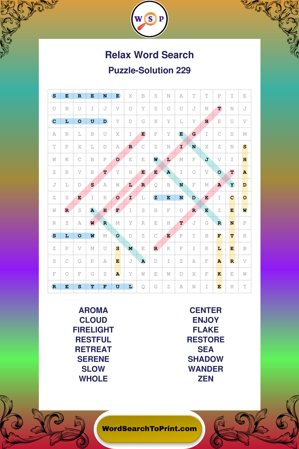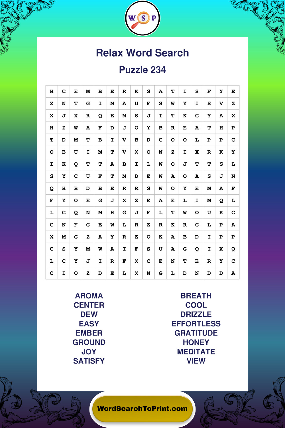 Printable Relax Wordsearch Puzzles