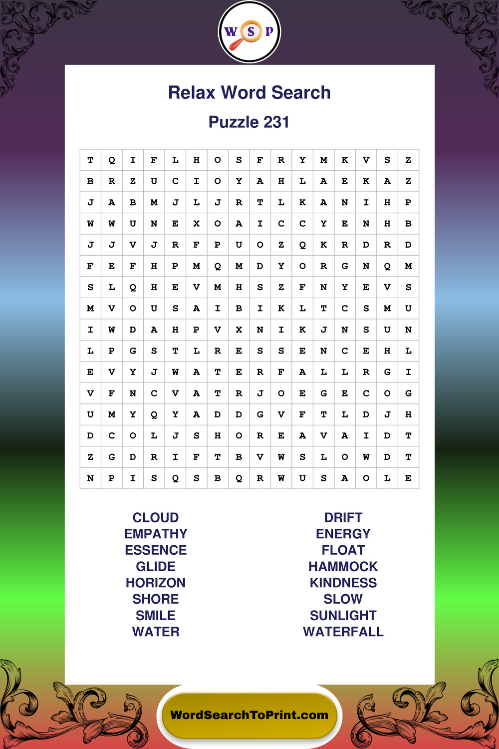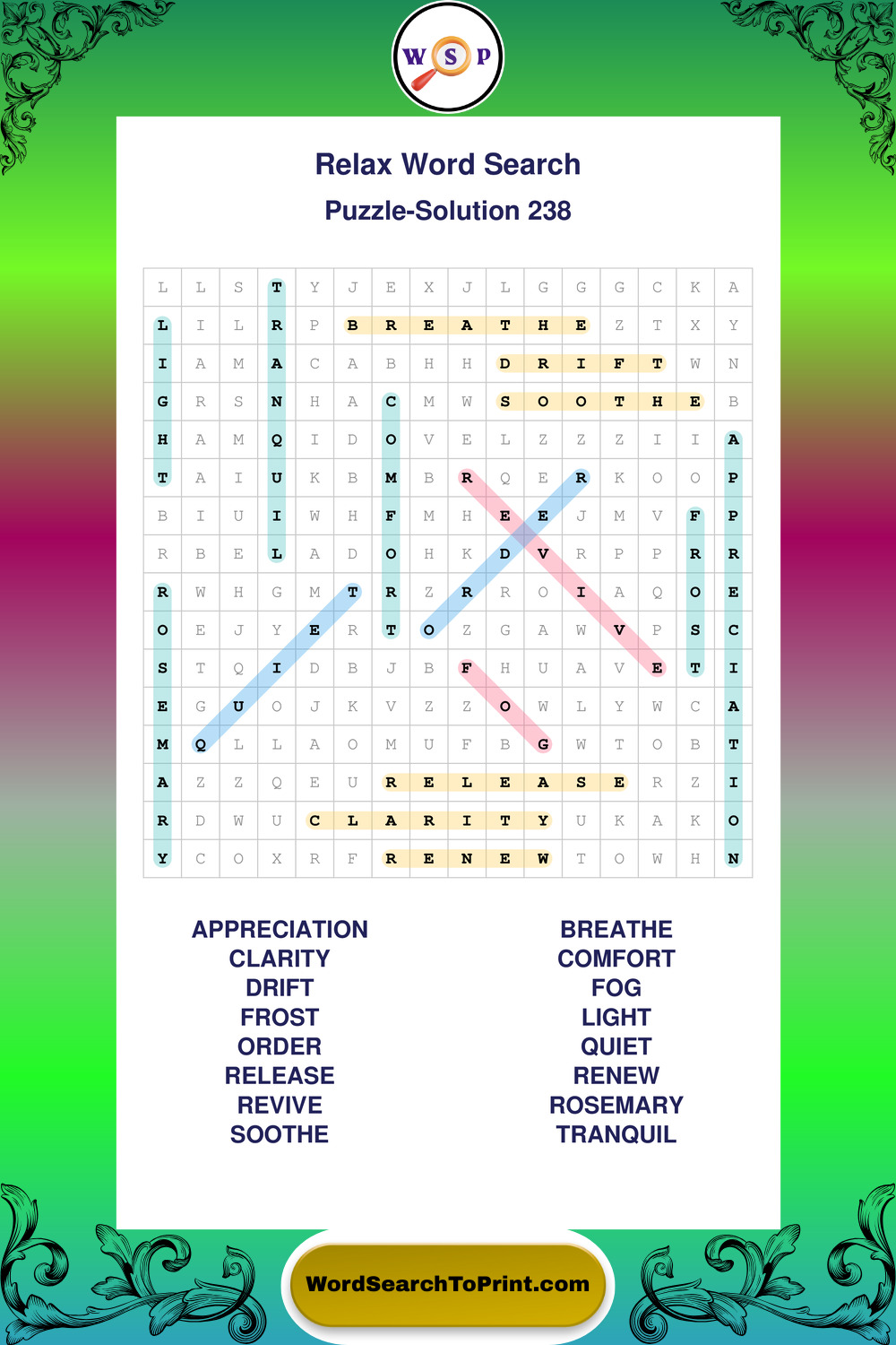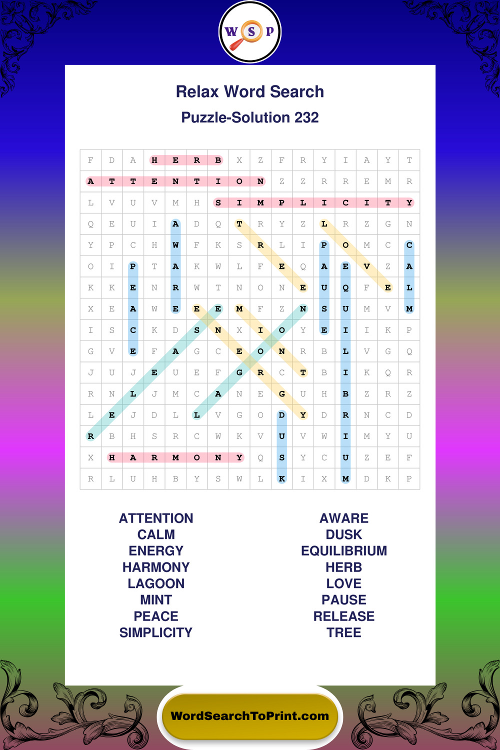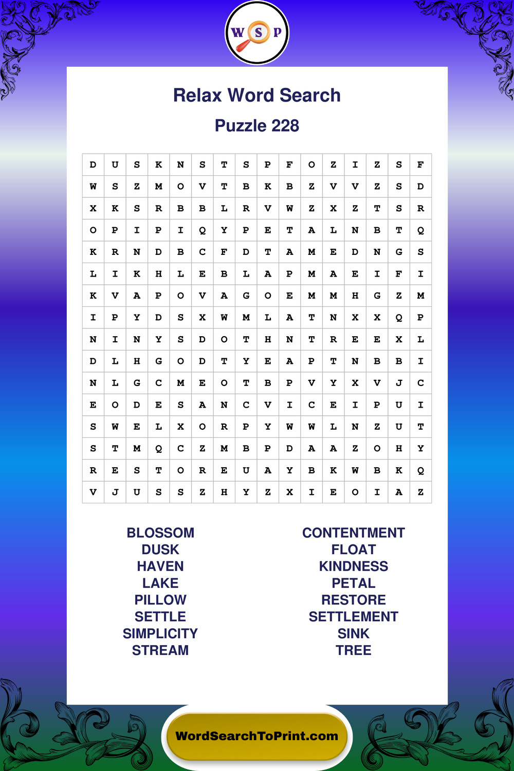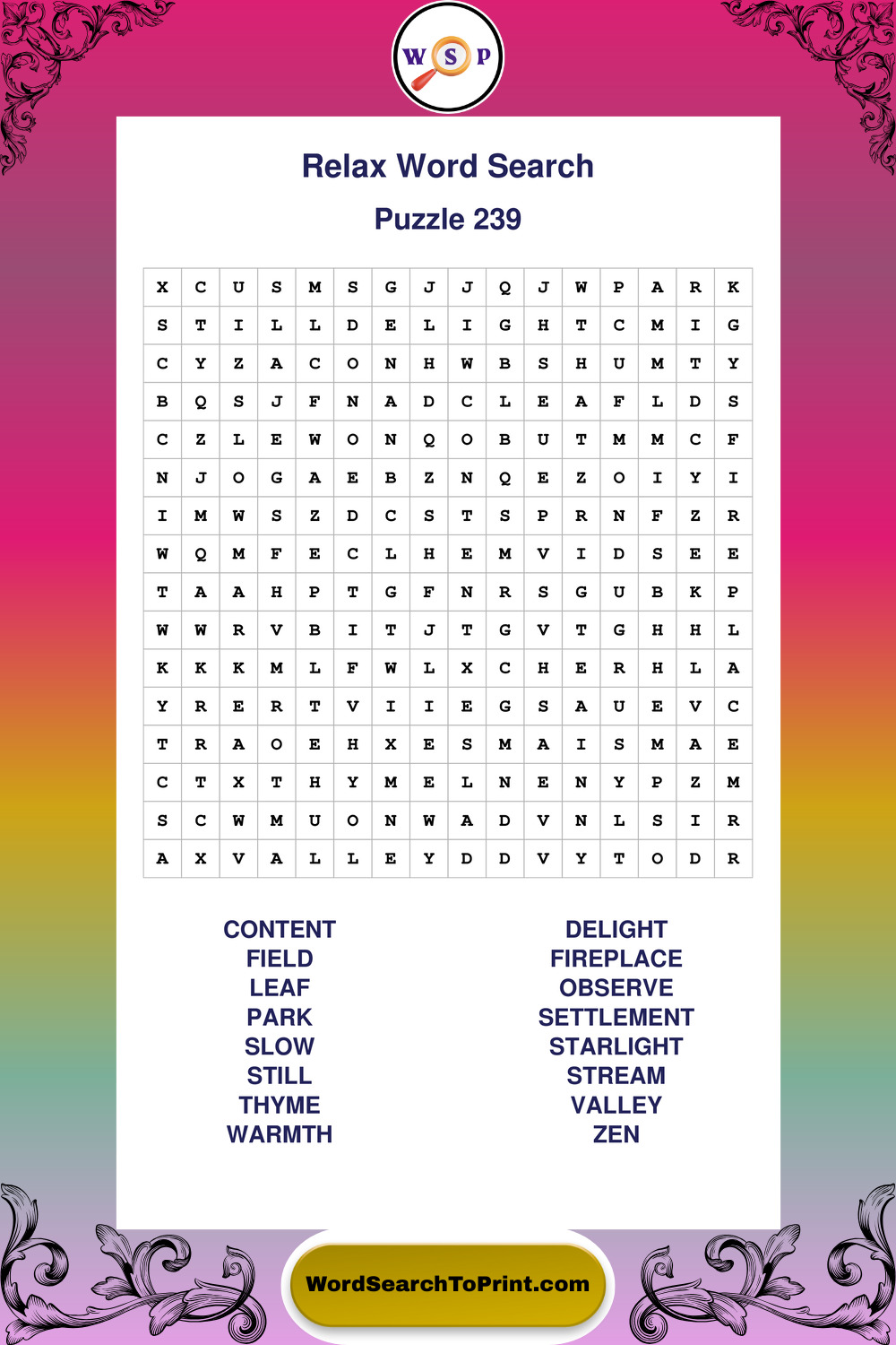 Printable Relax Wordsearch Puzzles