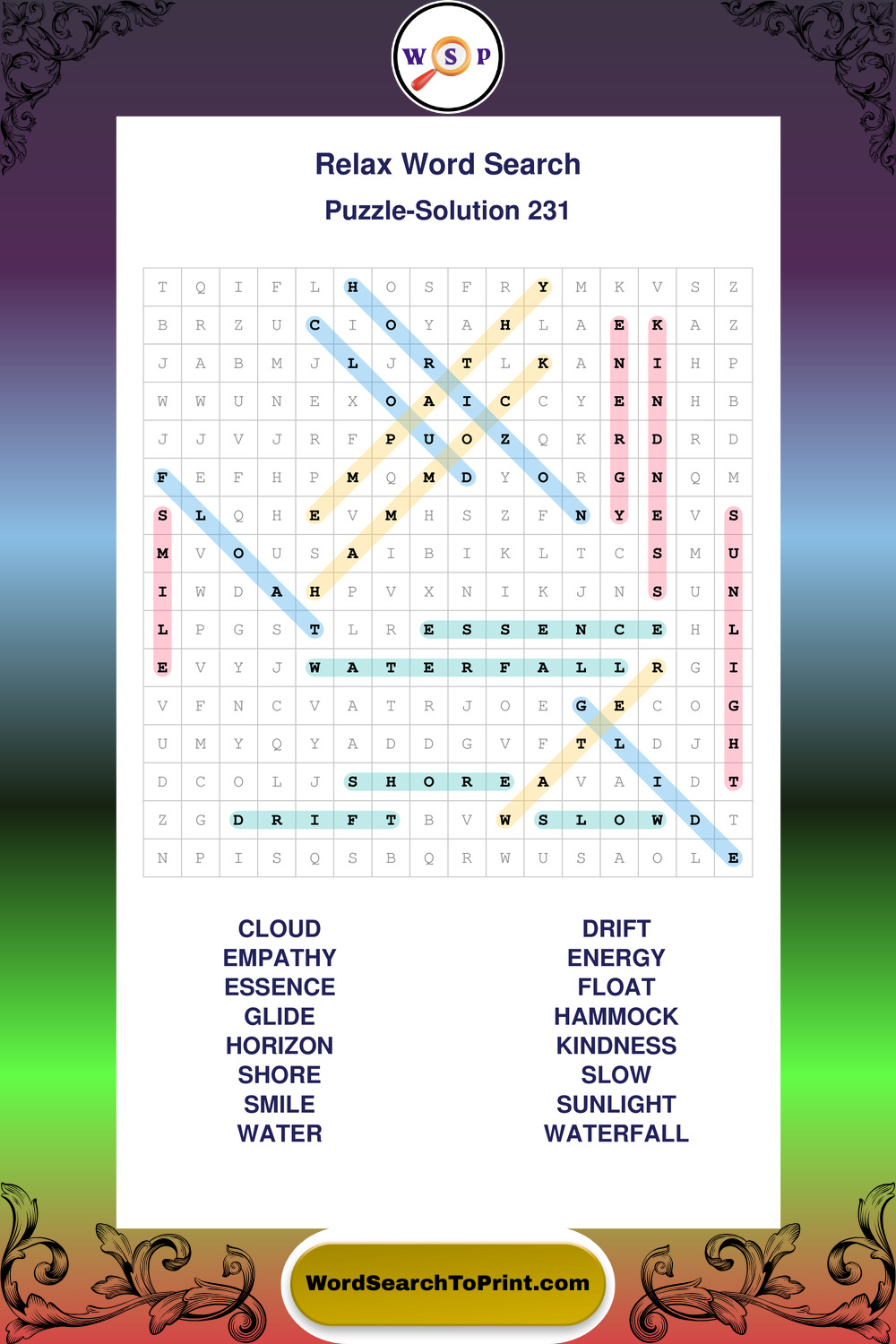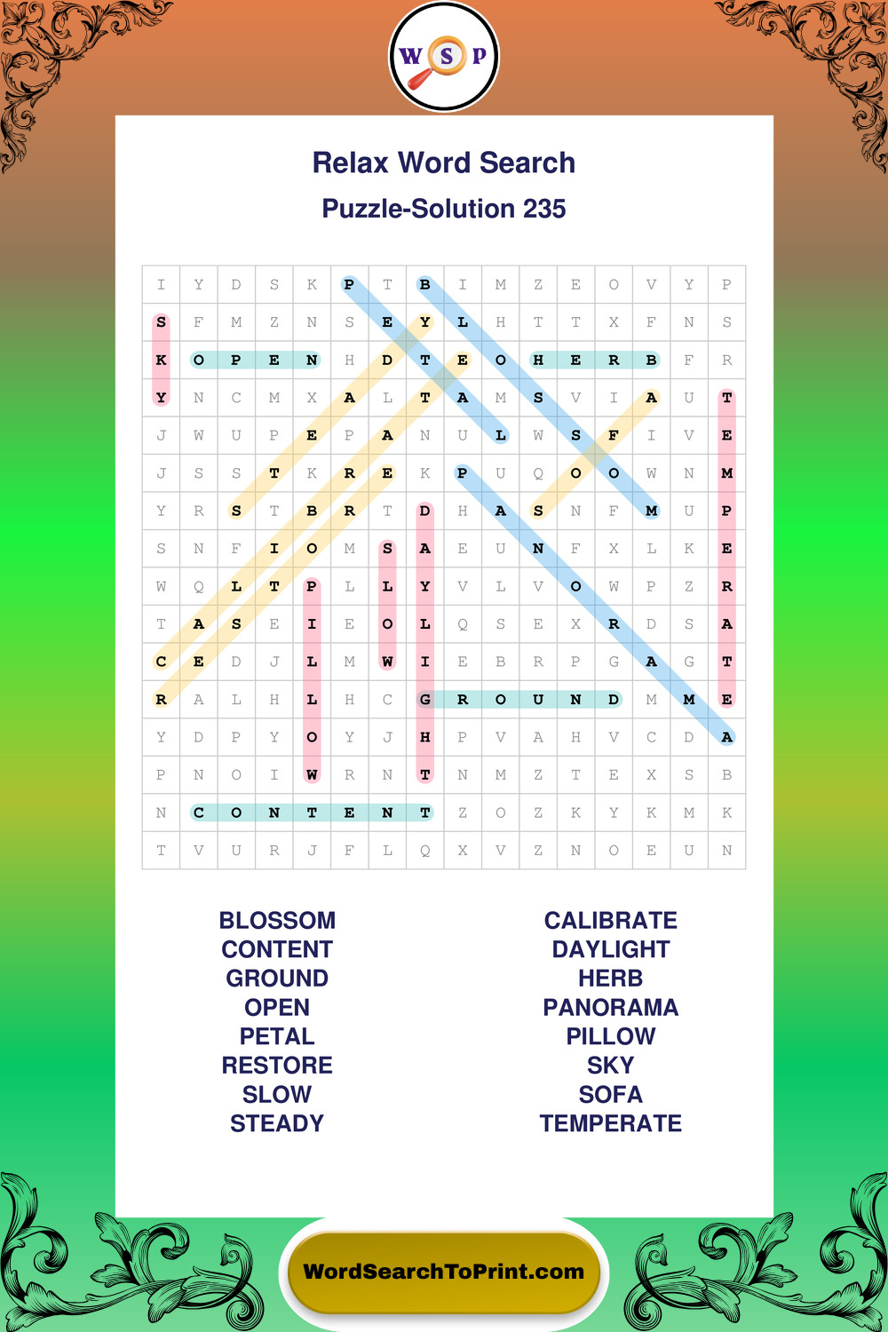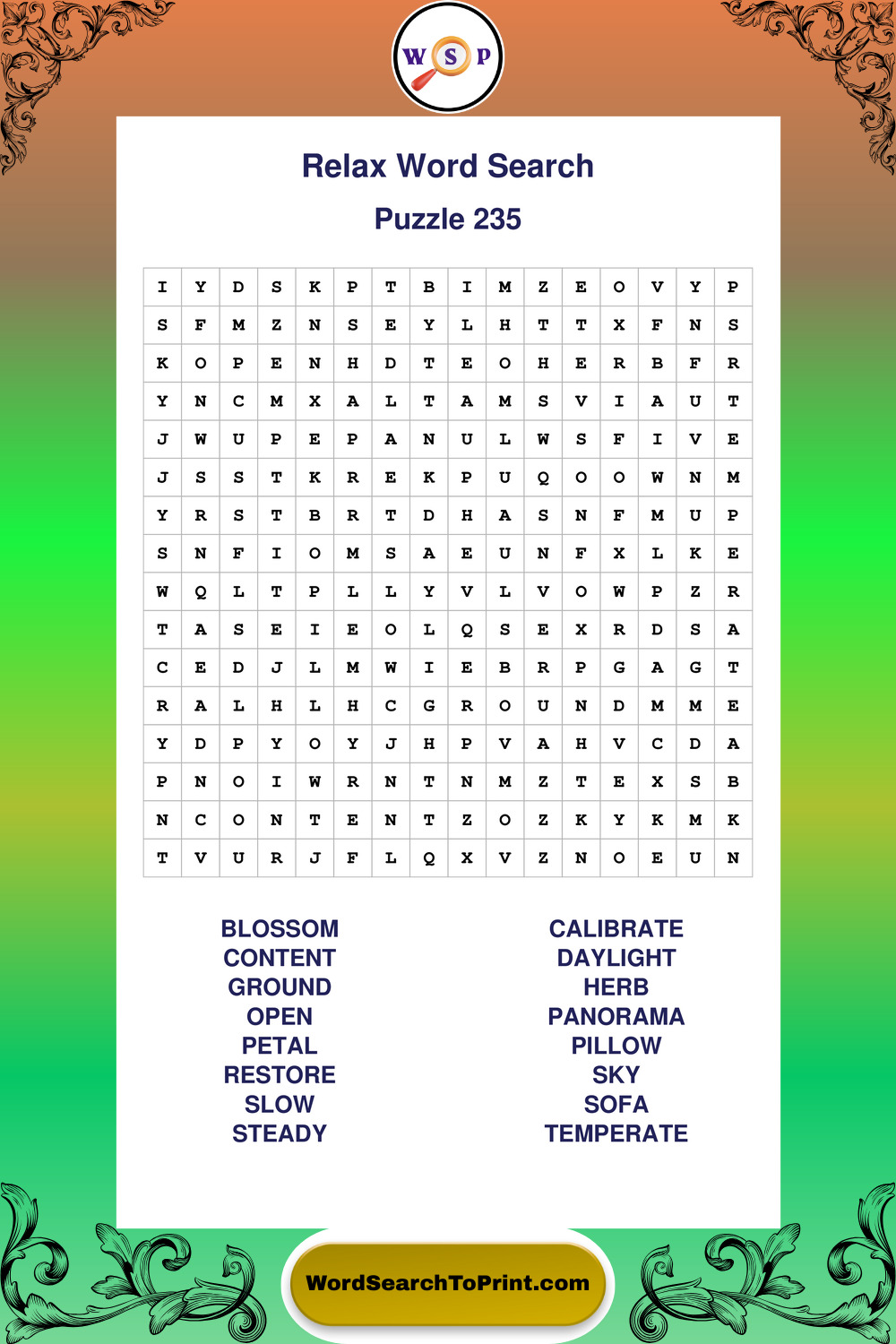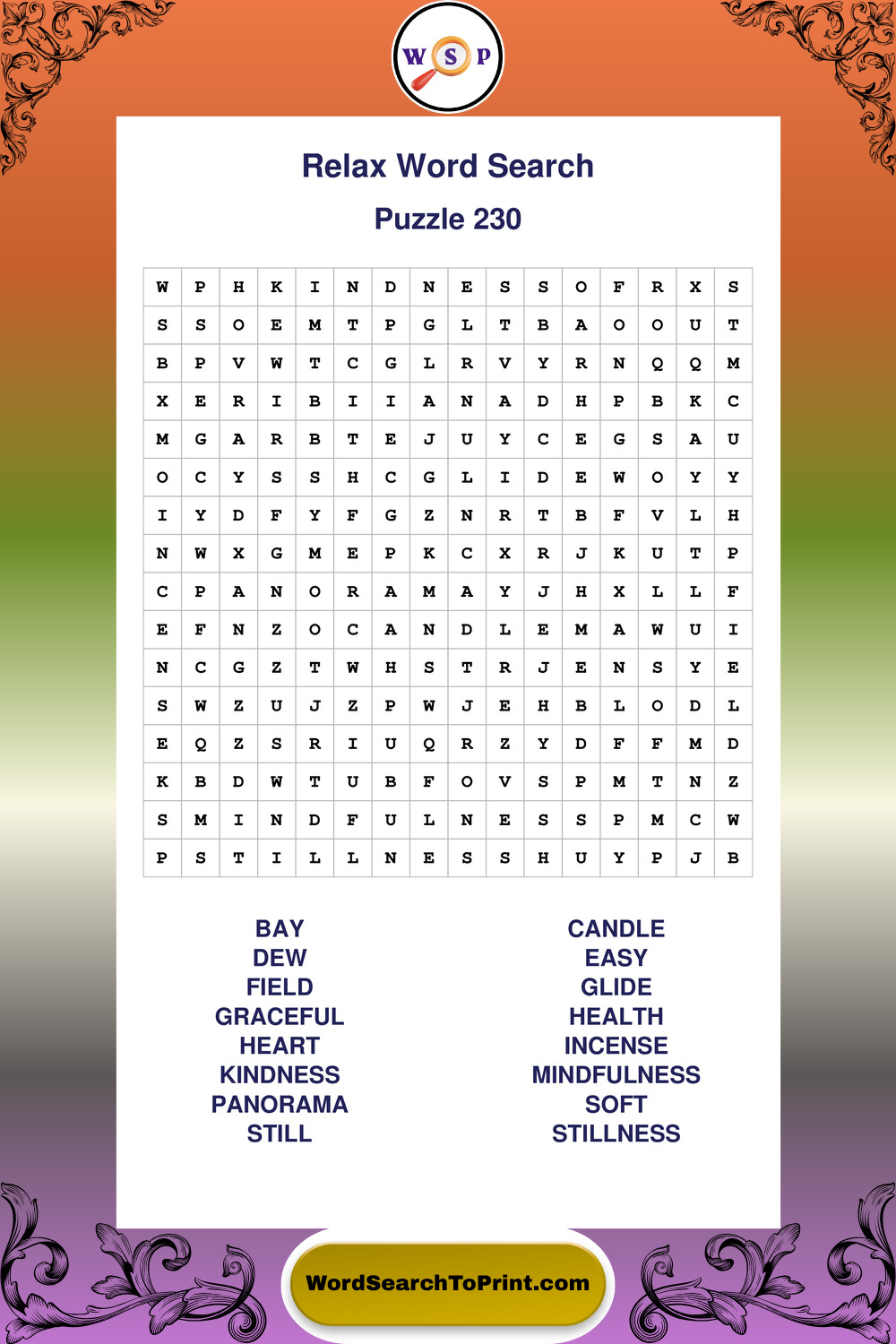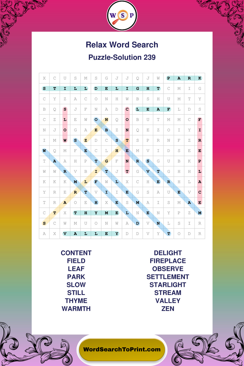 Printable Relax Wordsearch Puzzles