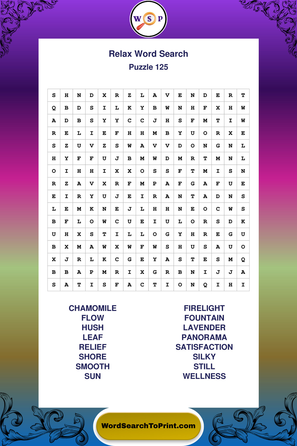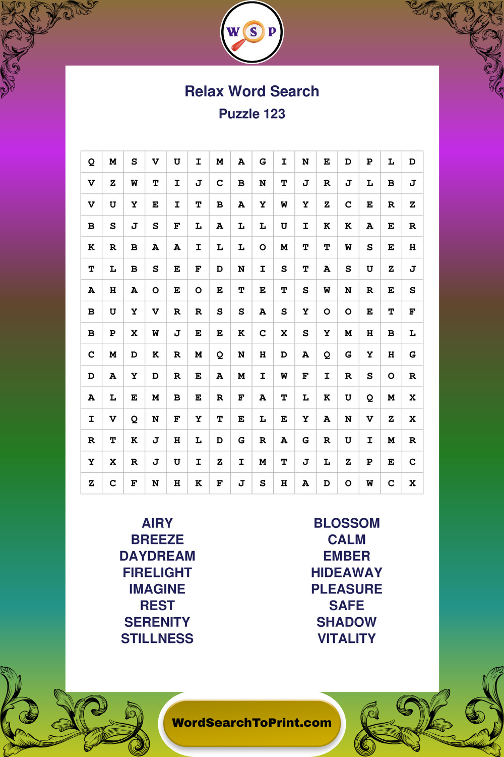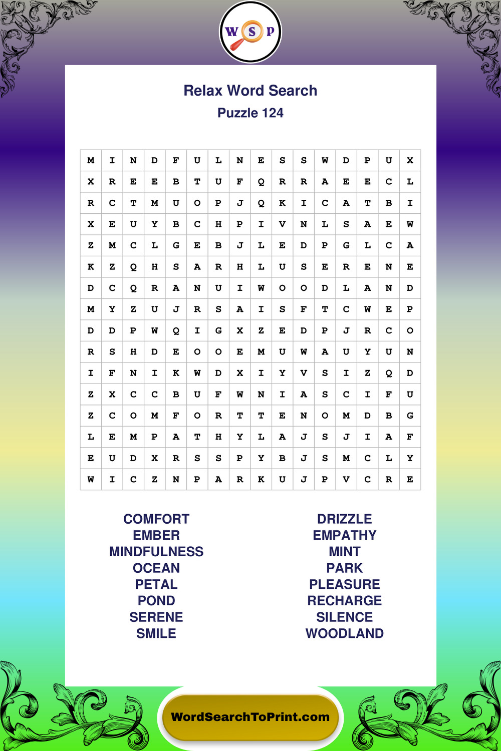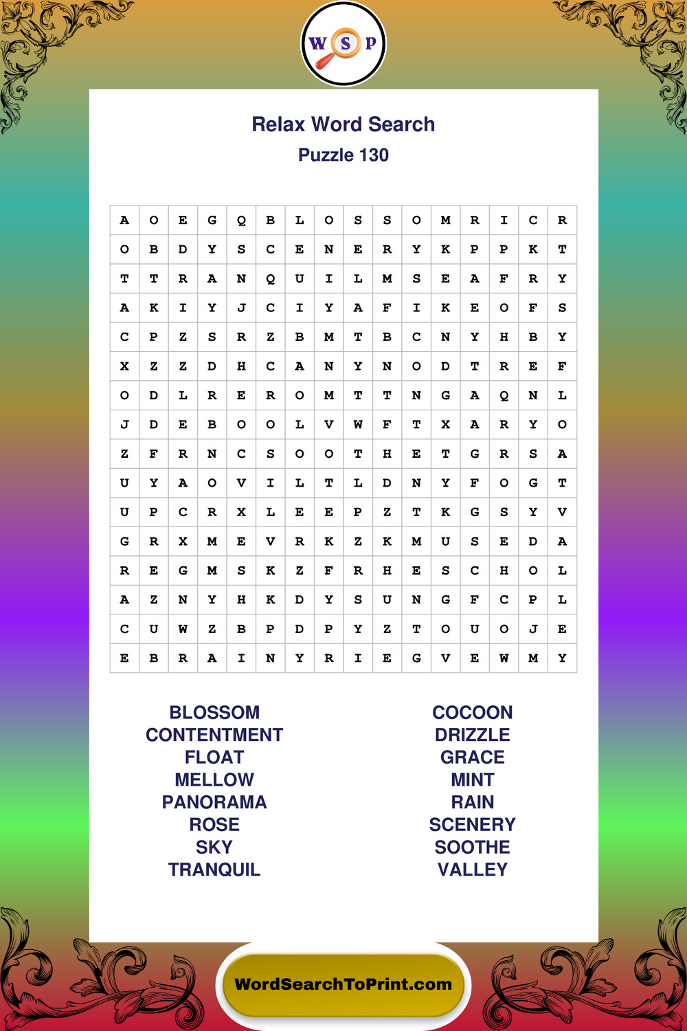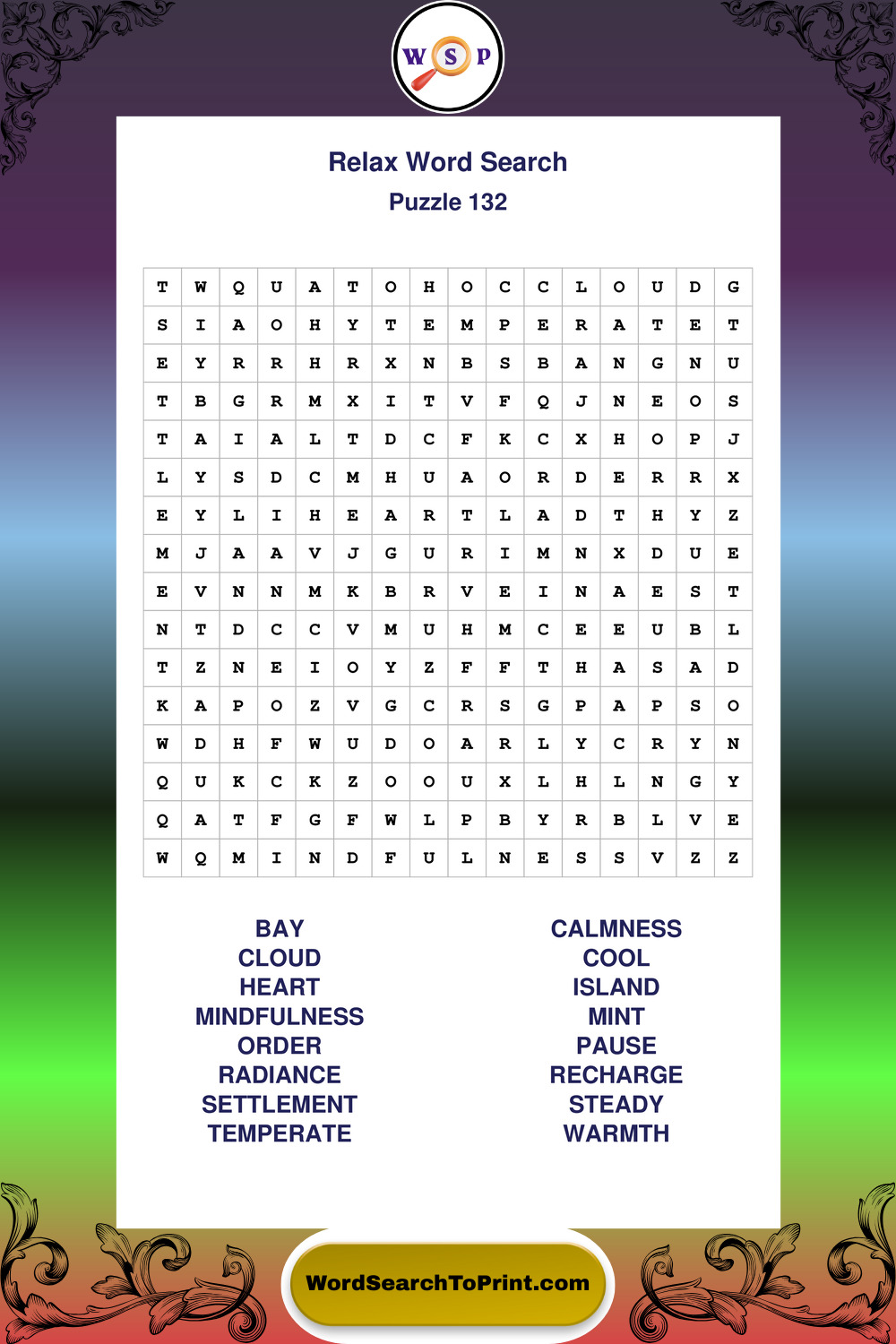 Printable Relax Wordsearch Puzzles