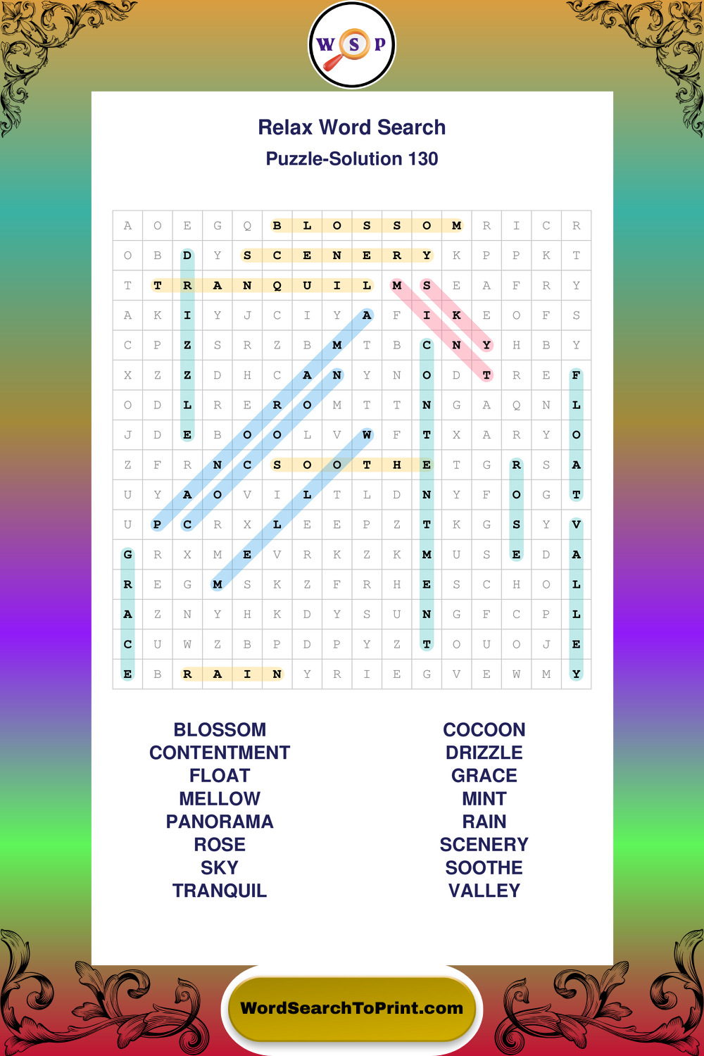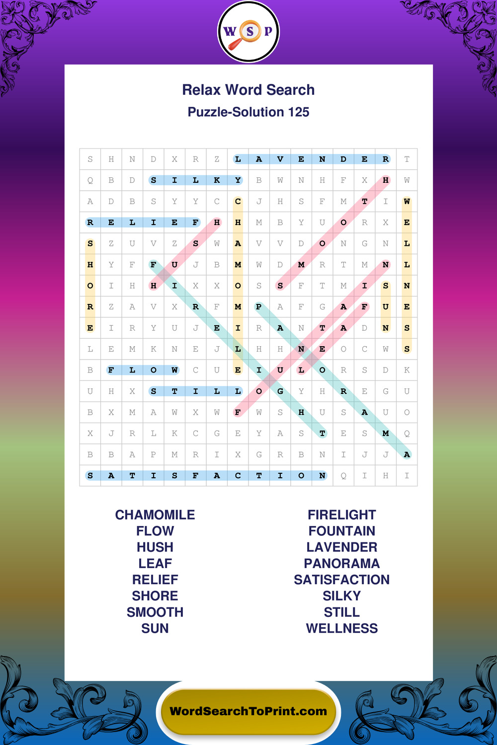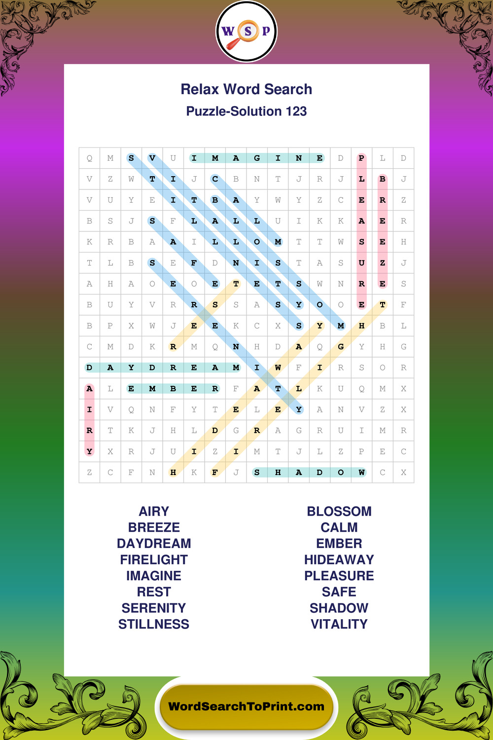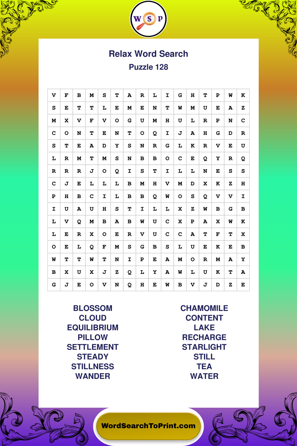Printable Relax Wordsearch Puzzles