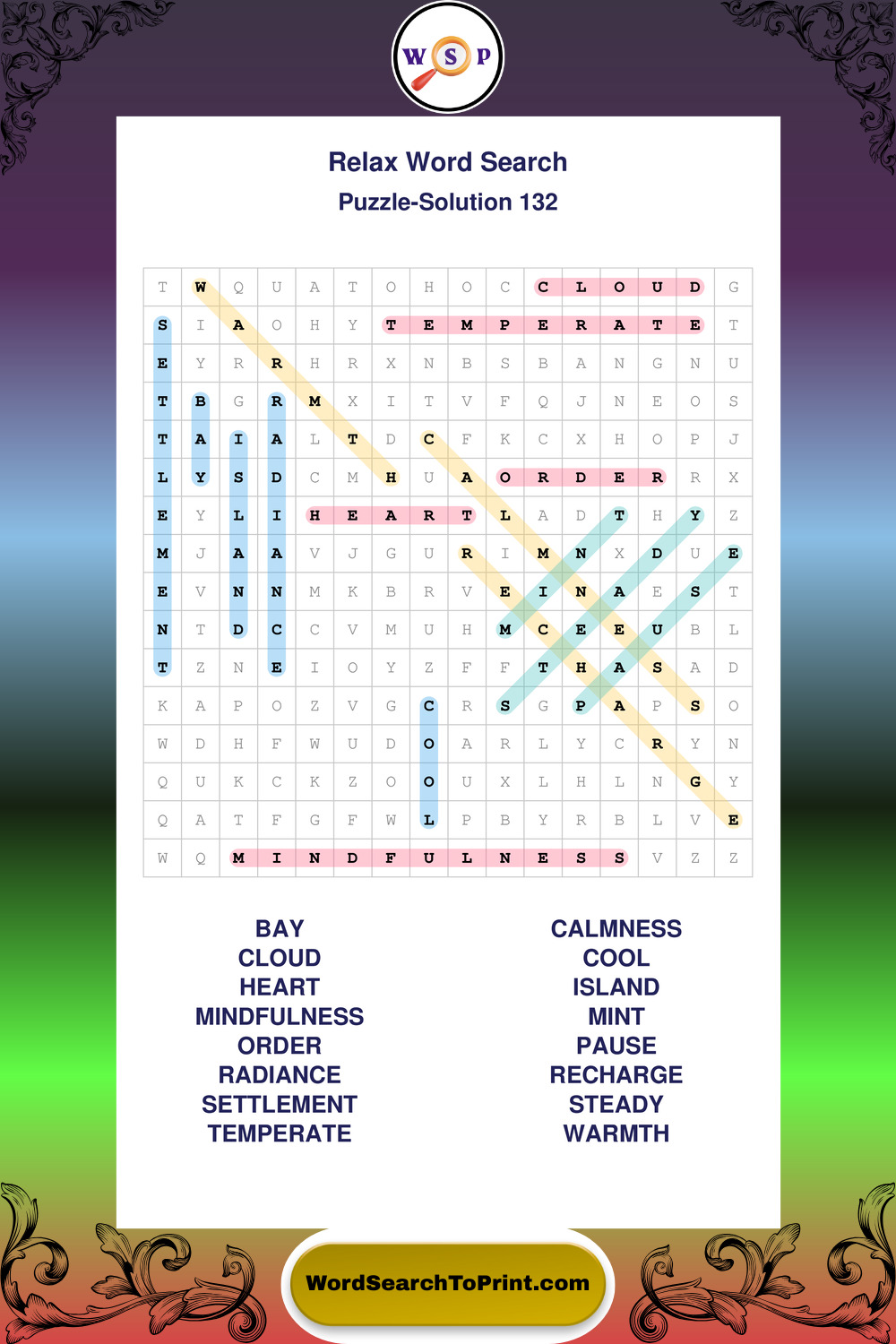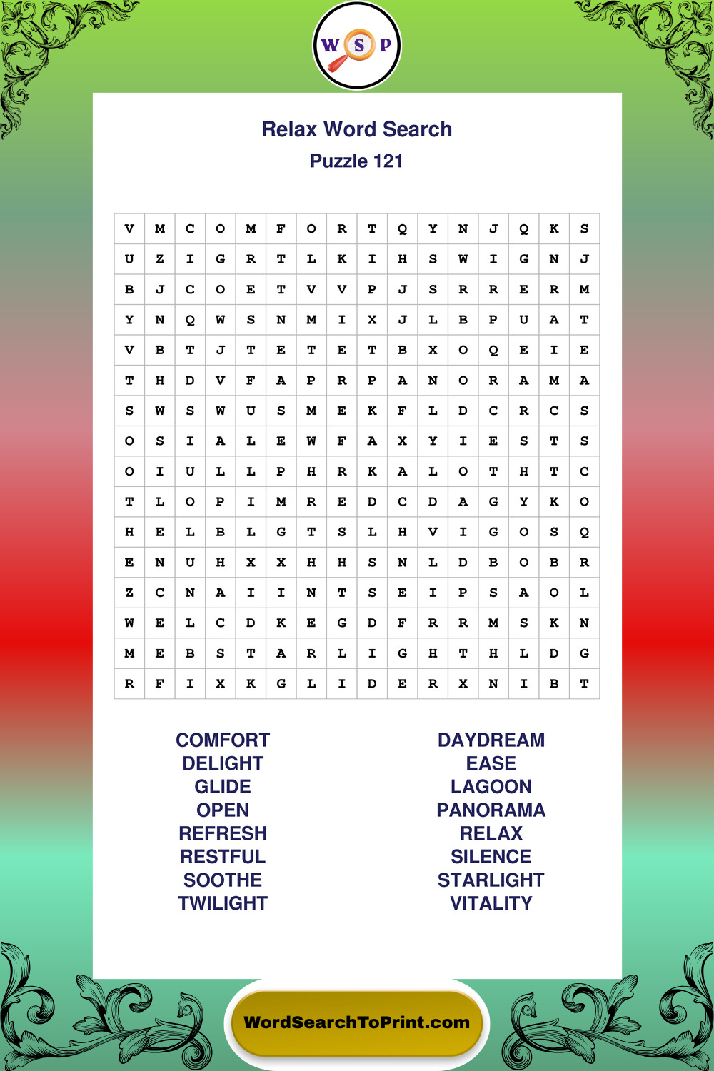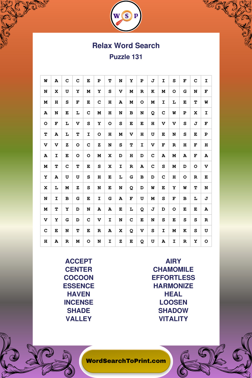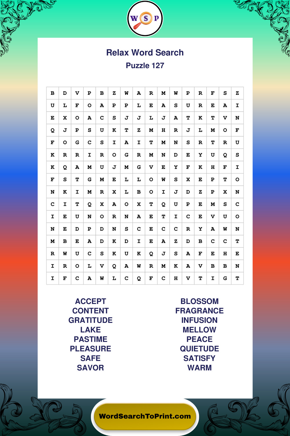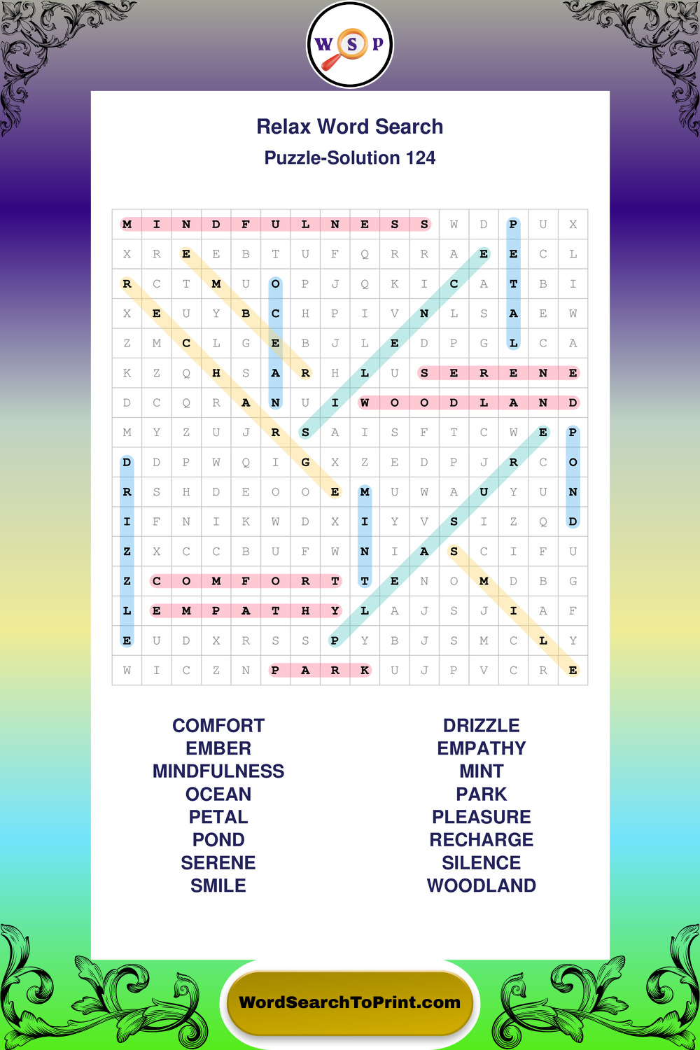 Printable Relax Wordsearch Puzzles