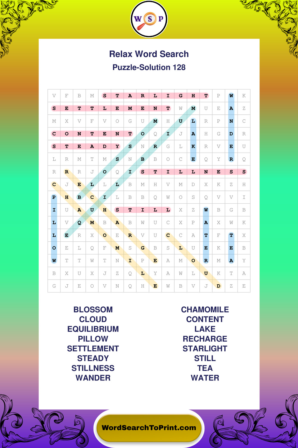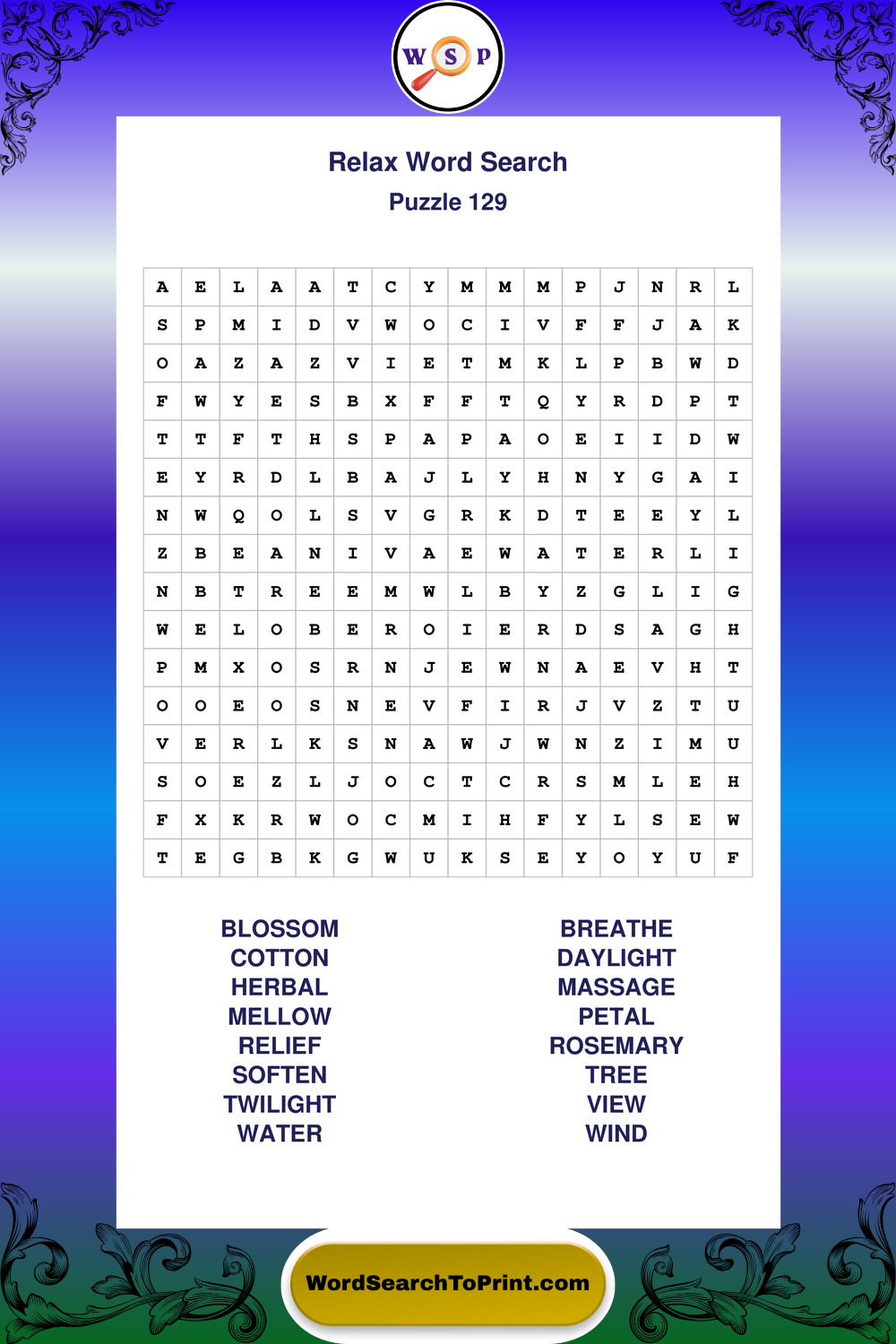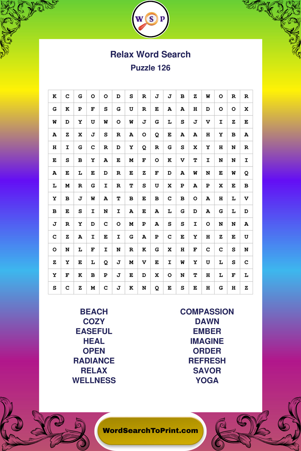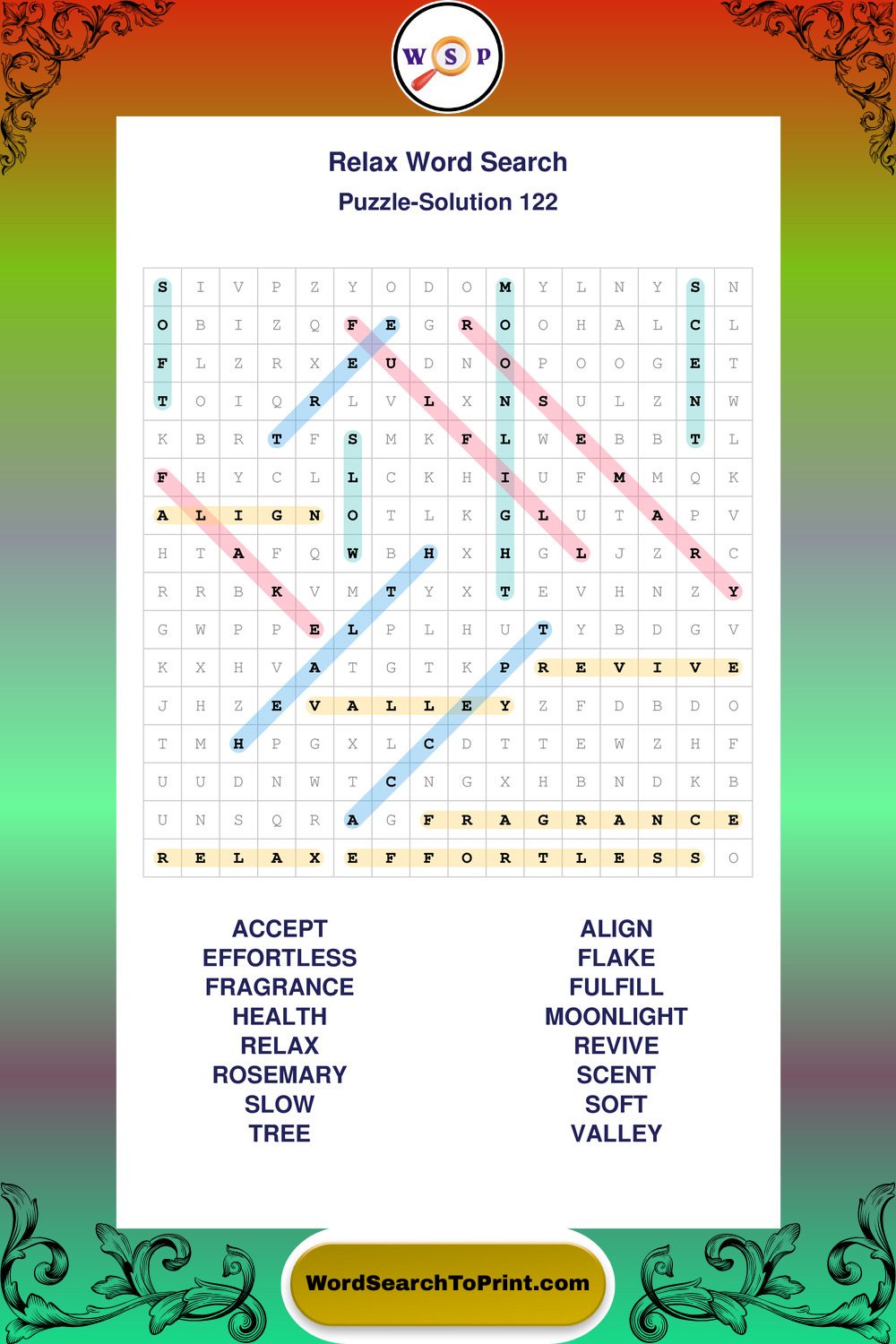 Printable Relax Wordsearch Puzzles