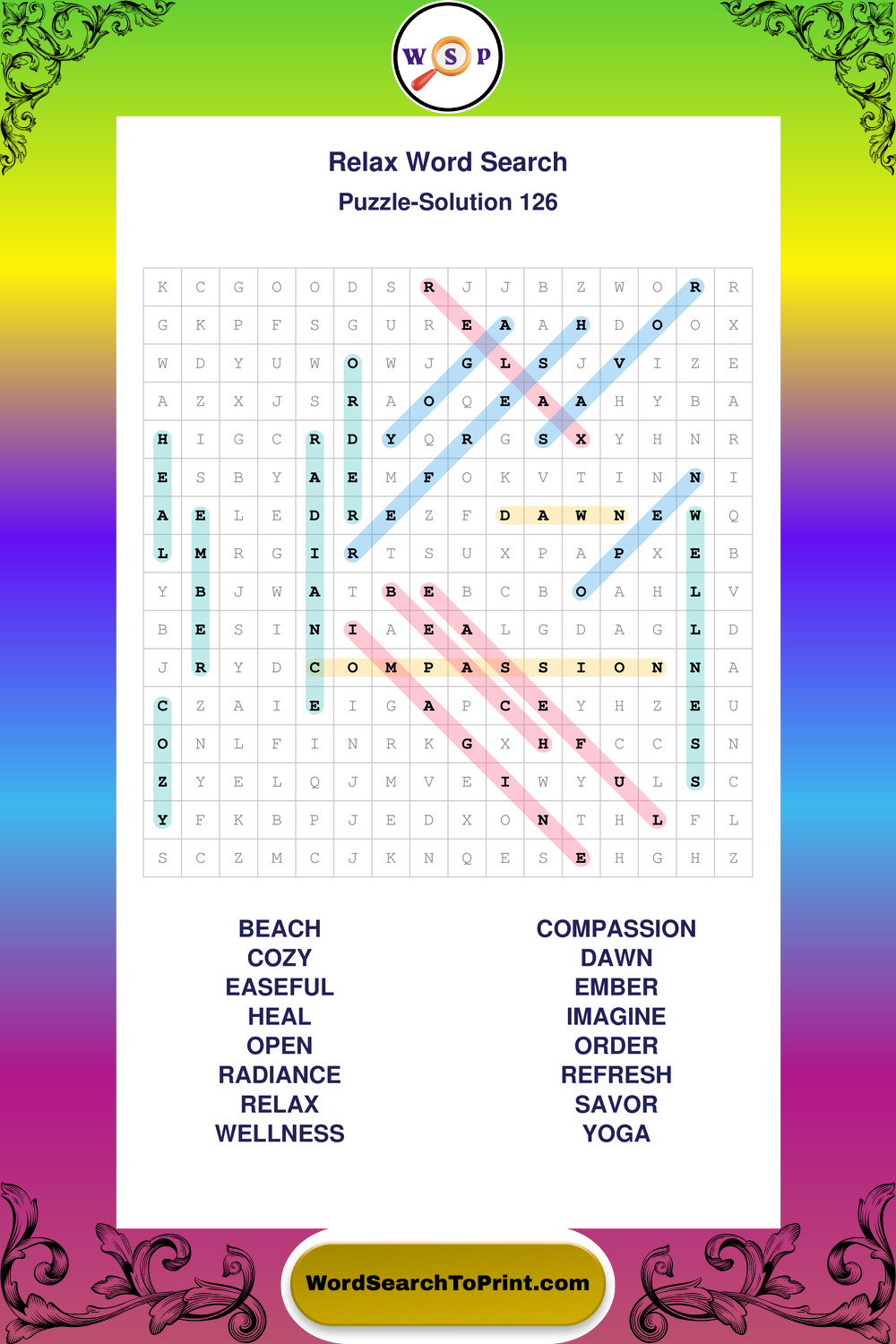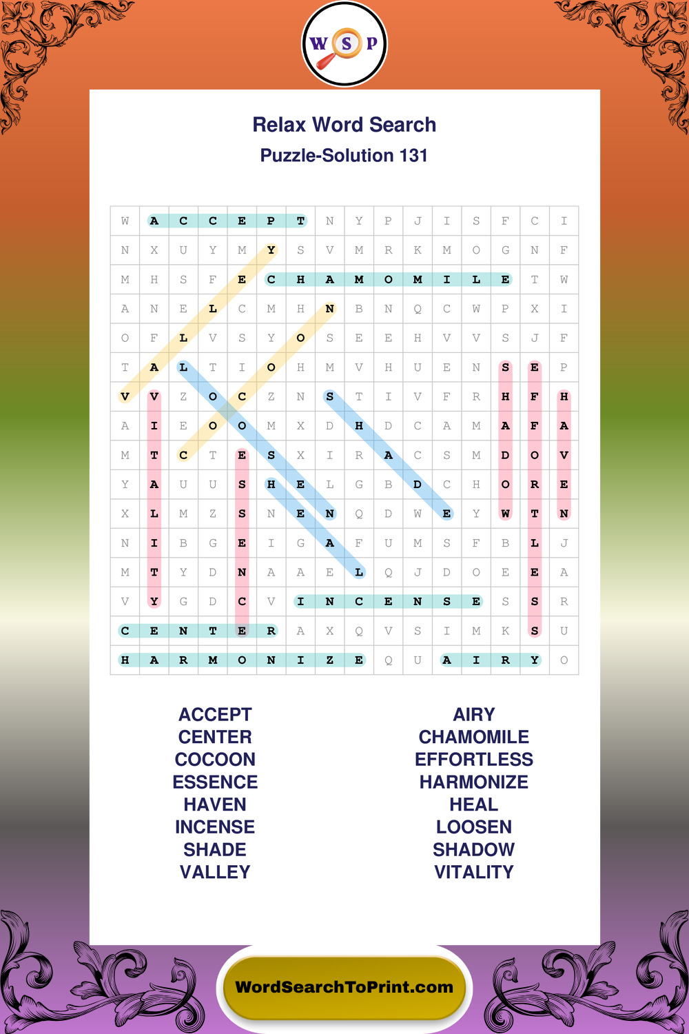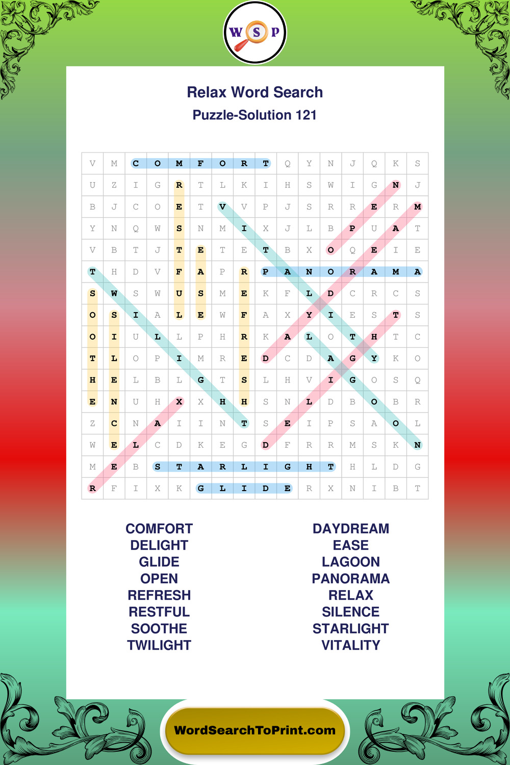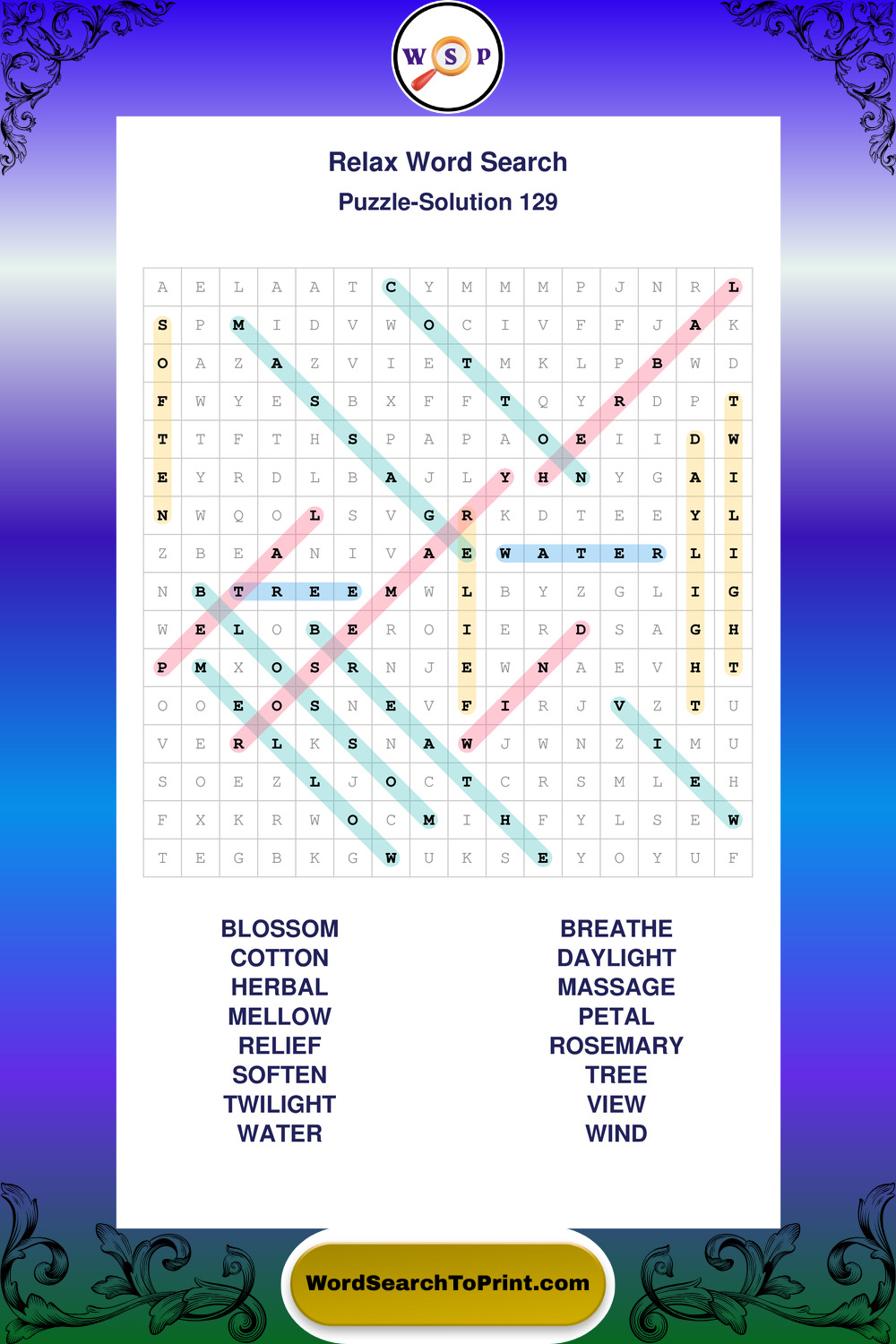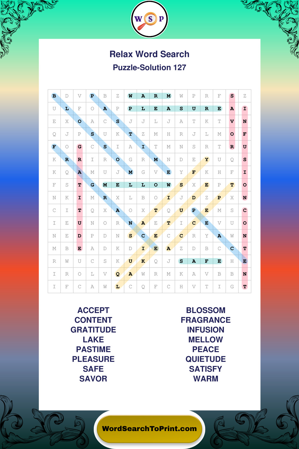Printable Relax Wordsearch Puzzles