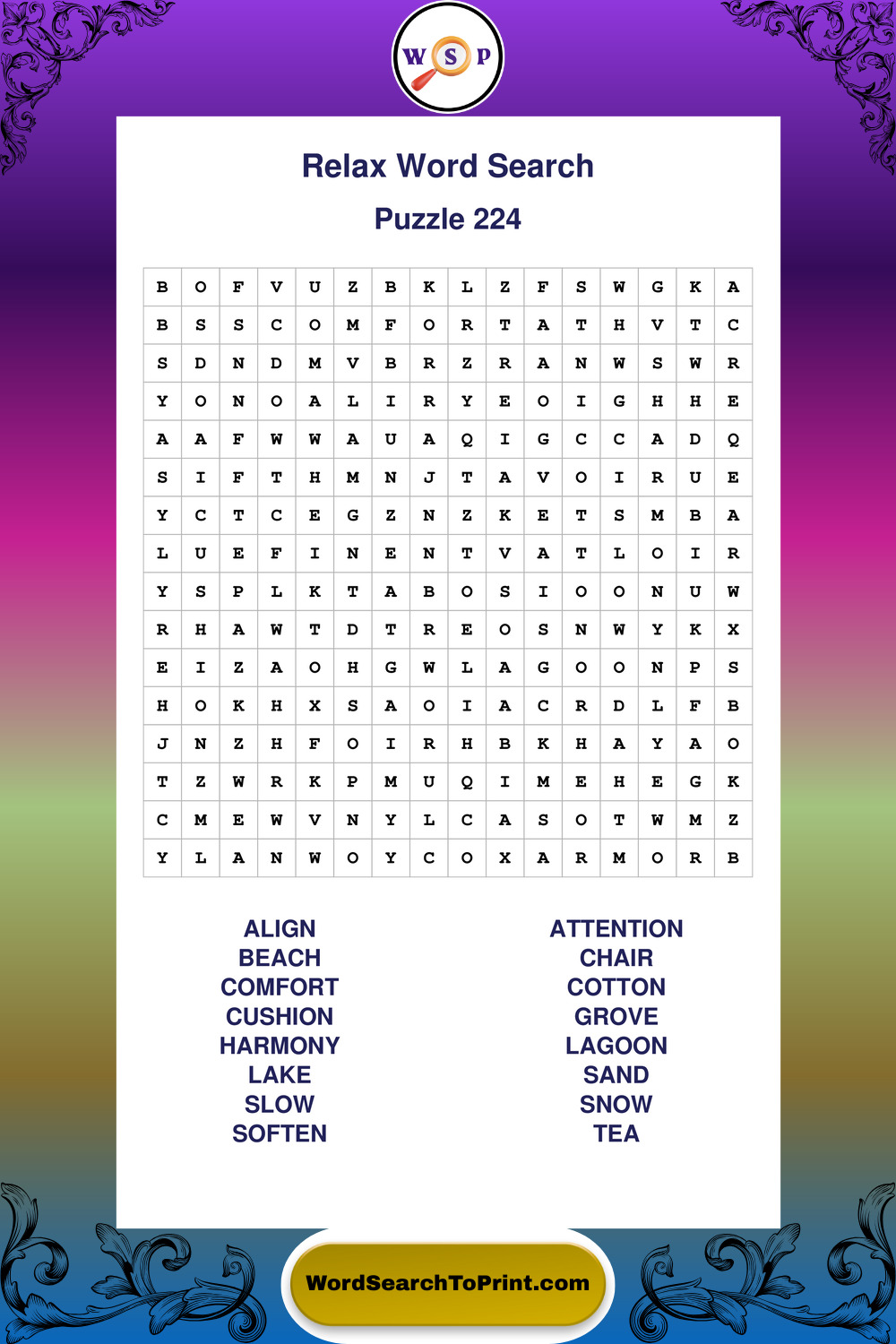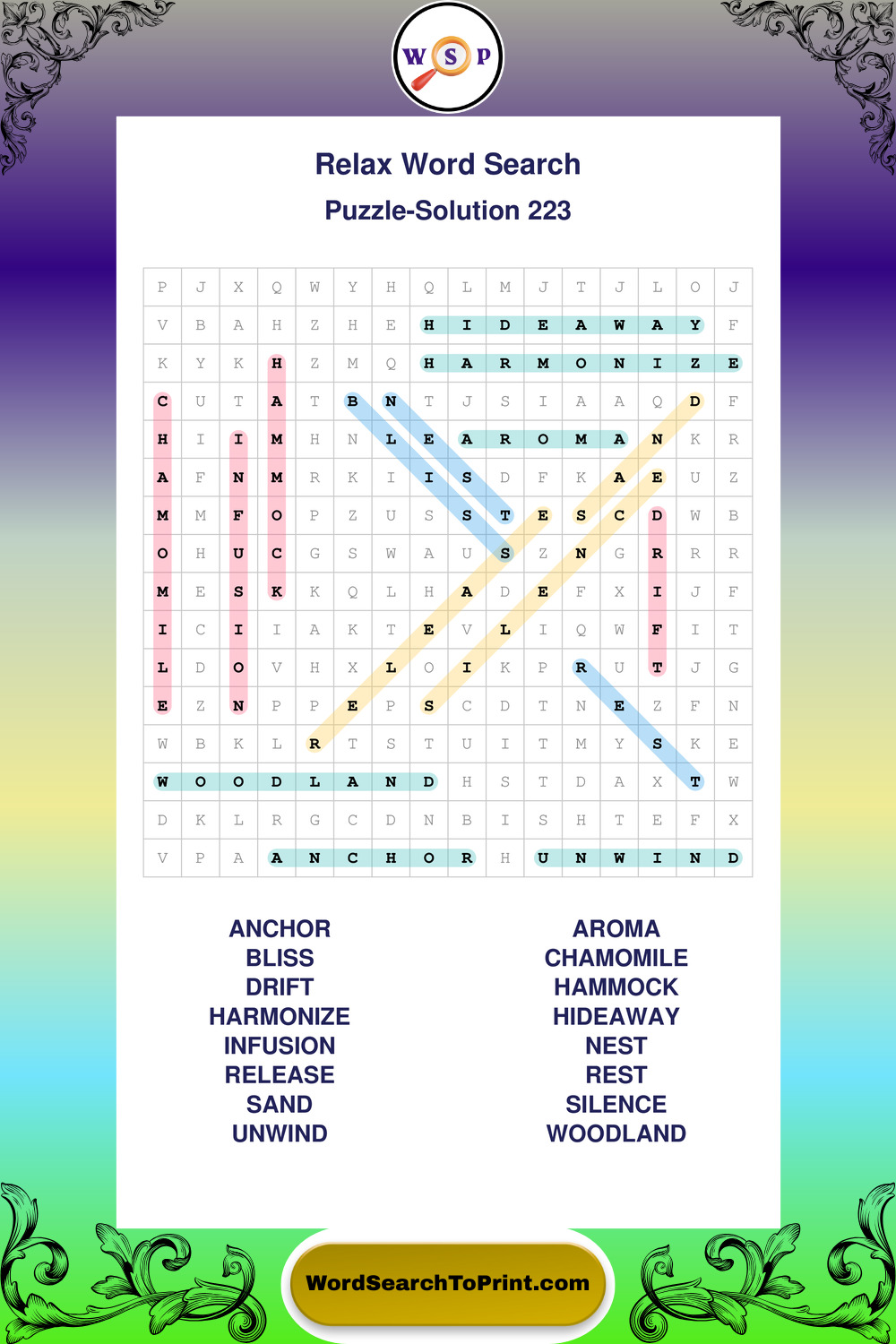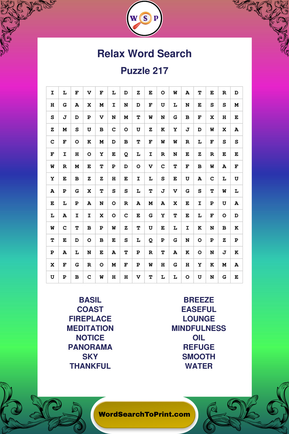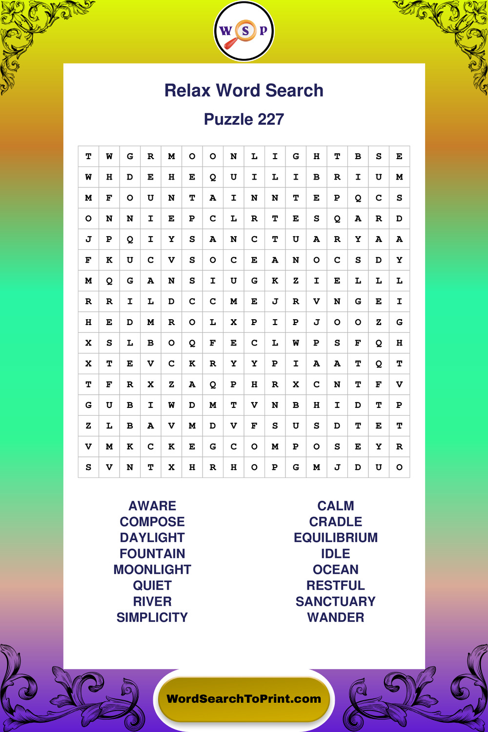 Printable Relax Wordsearch Puzzles