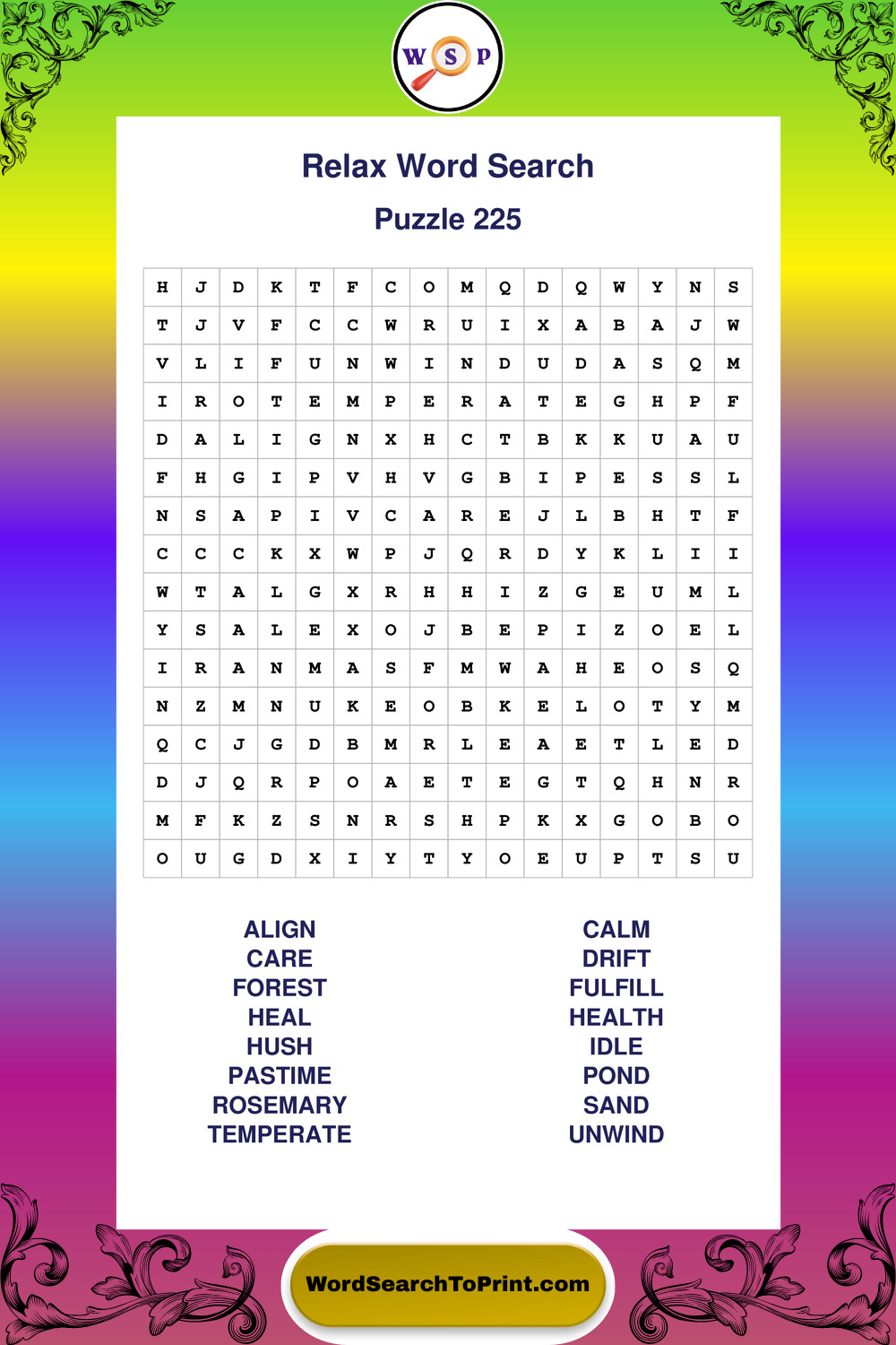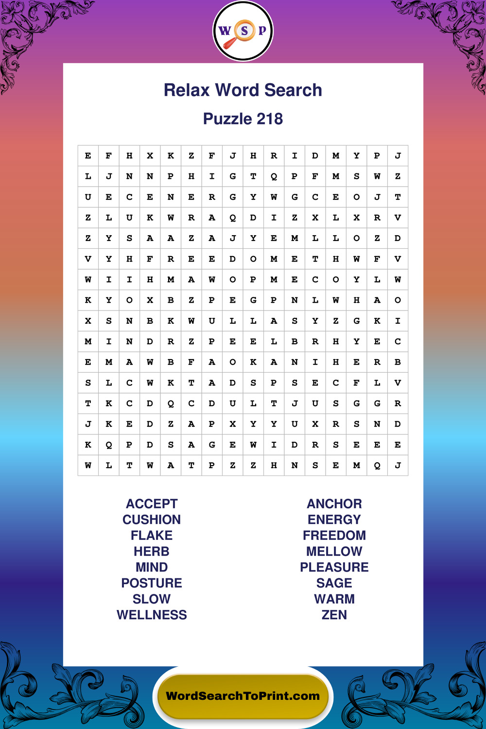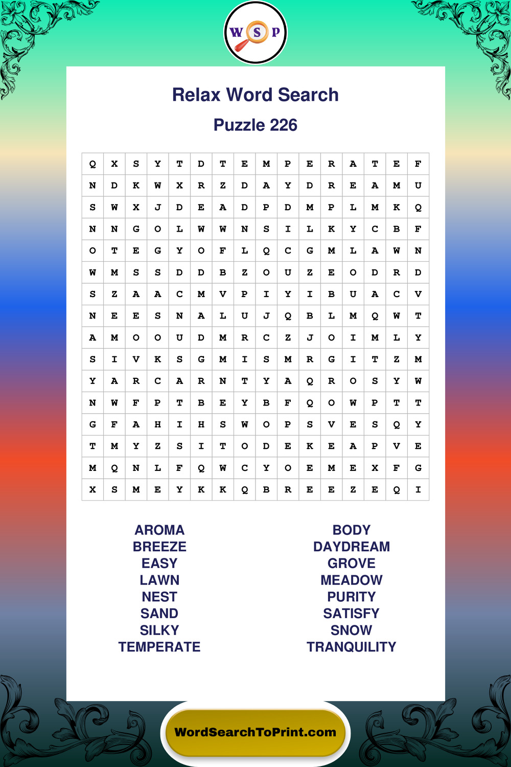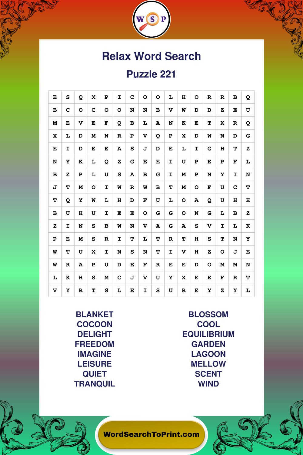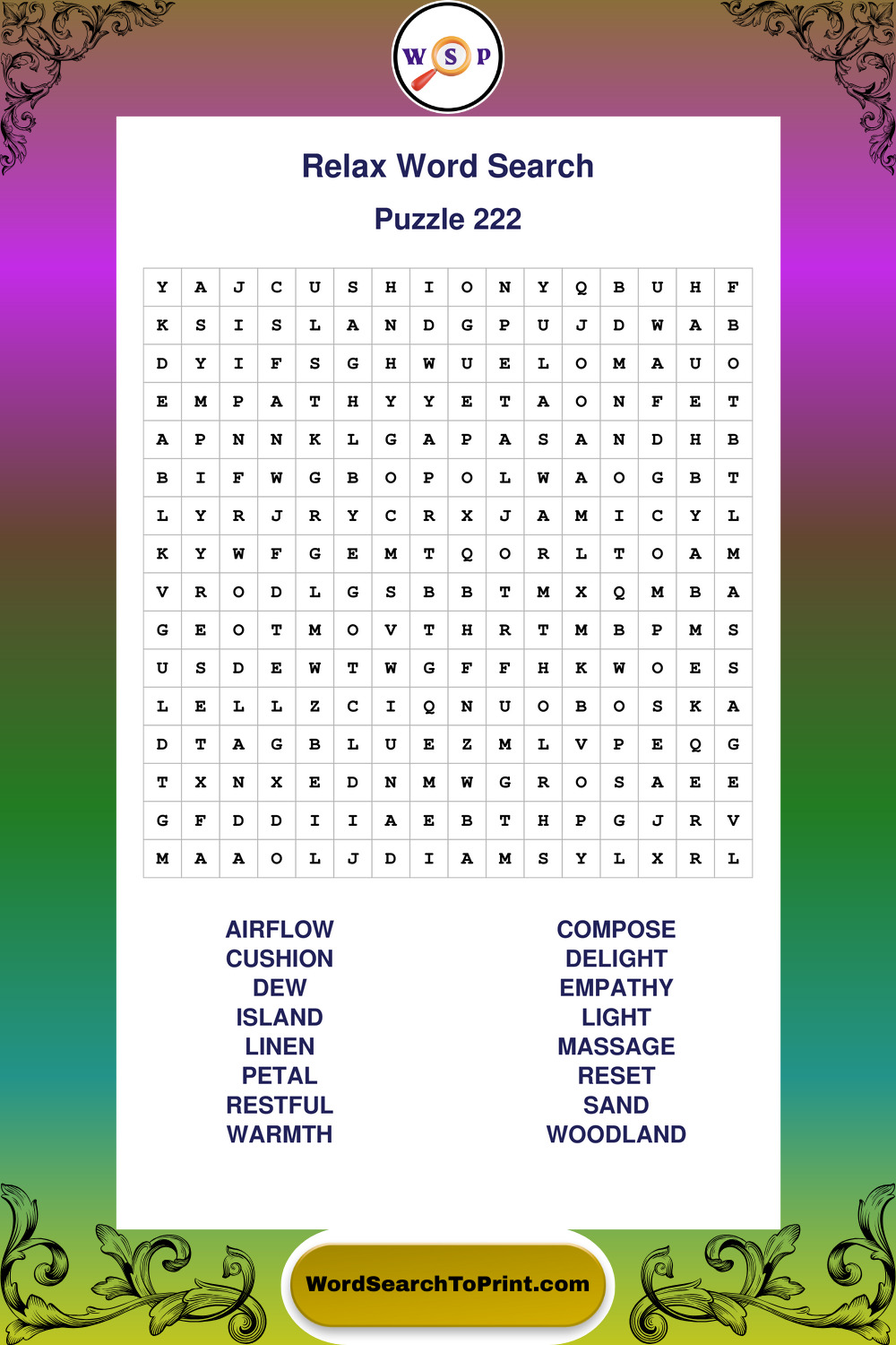 Printable Relax Wordsearch Puzzles