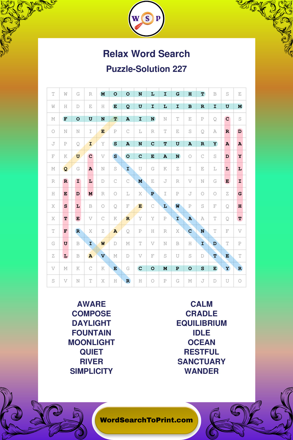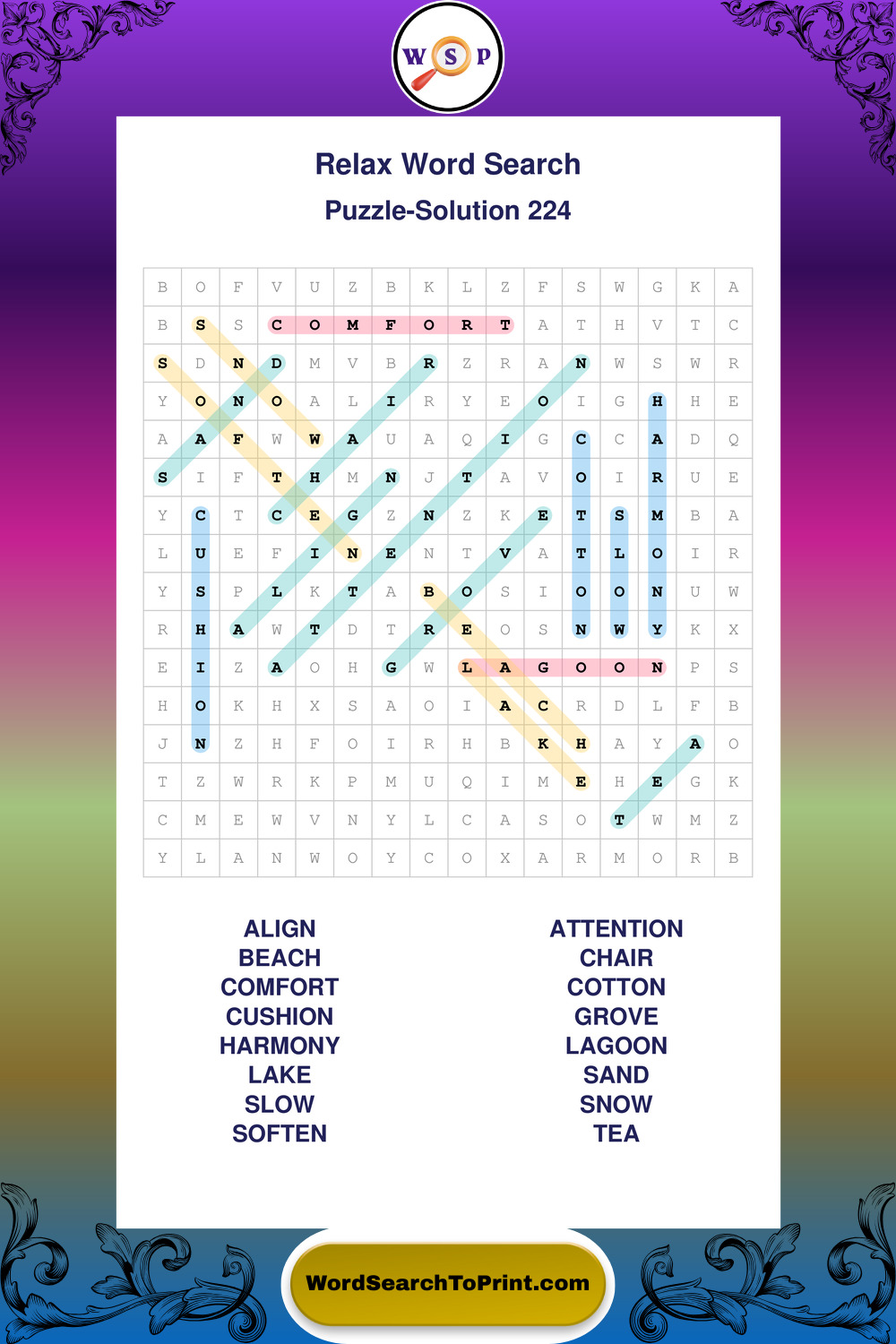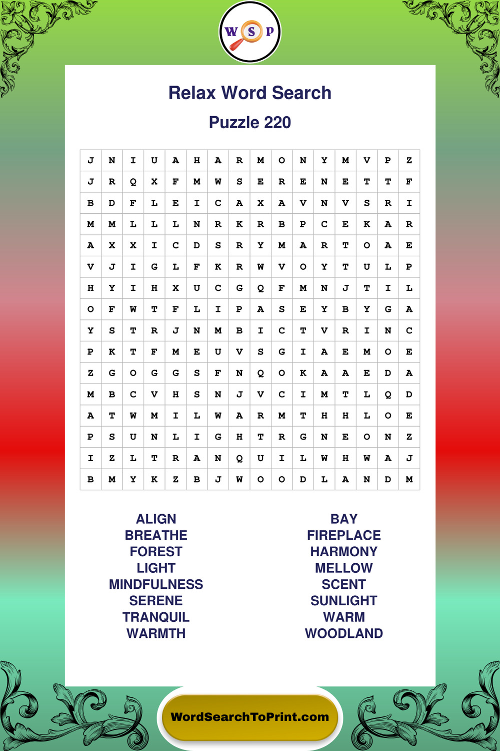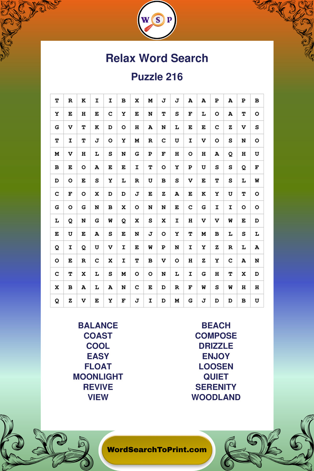 Printable Relax Wordsearch Puzzles