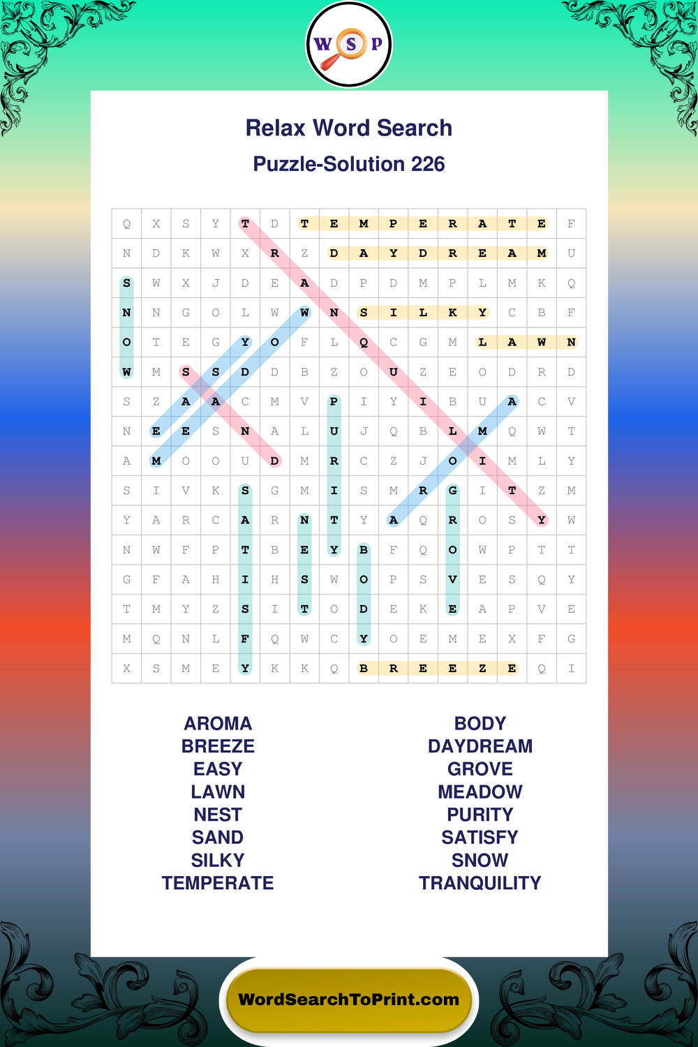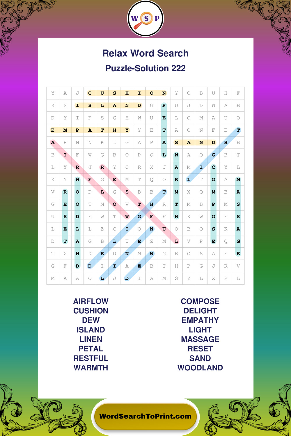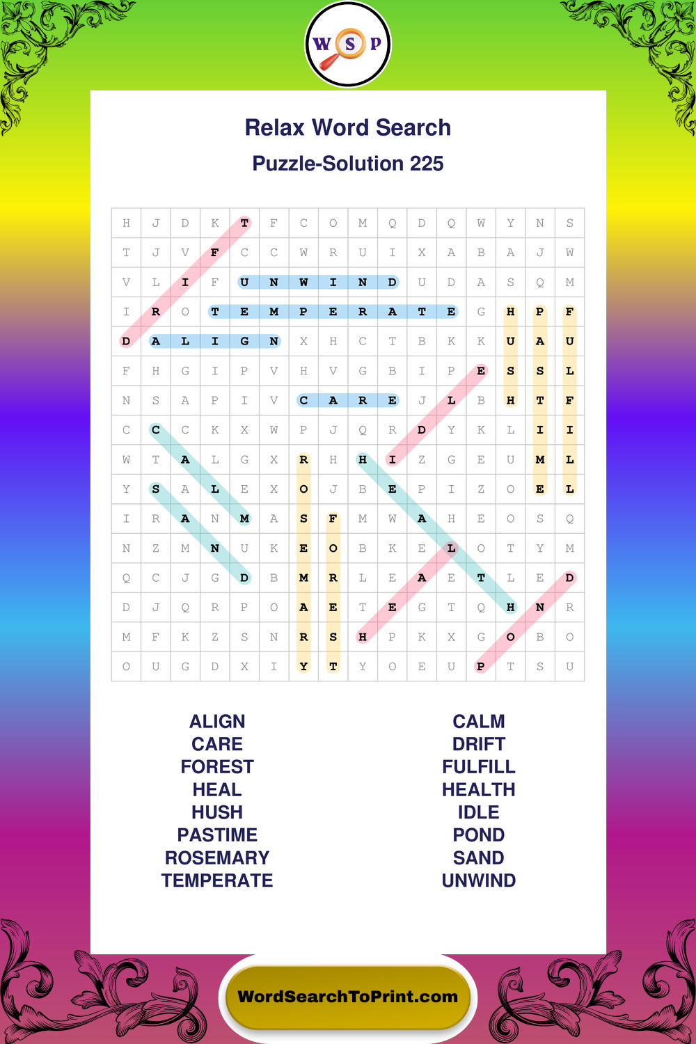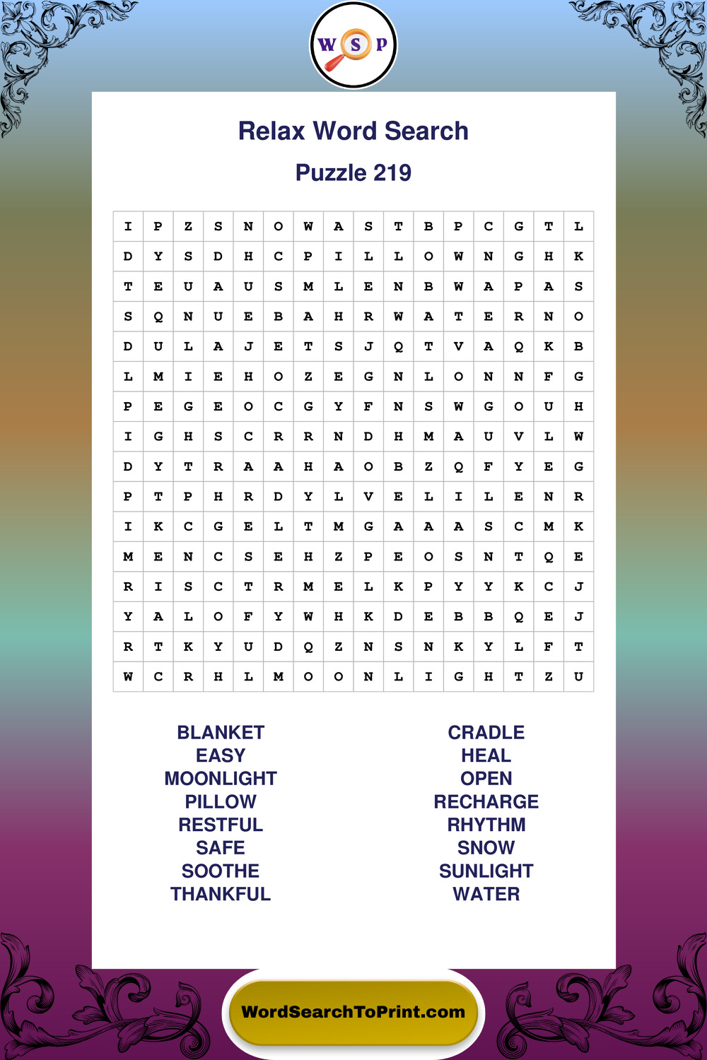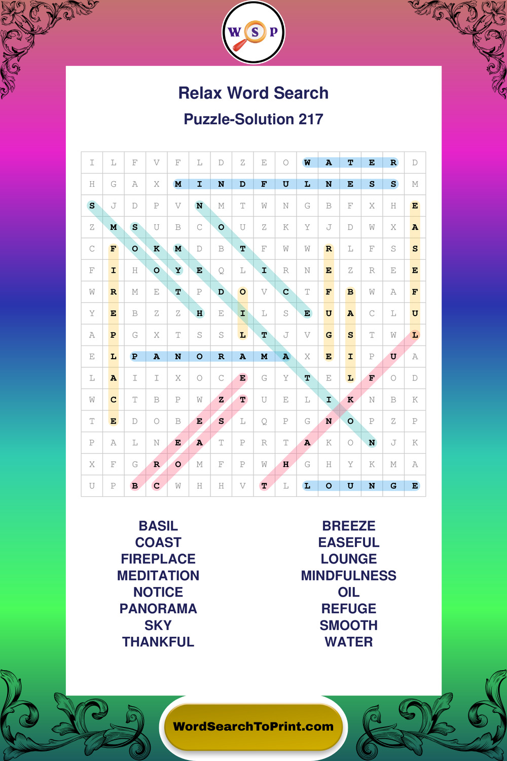 Printable Relax Wordsearch Puzzles