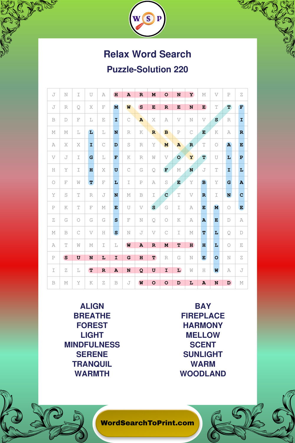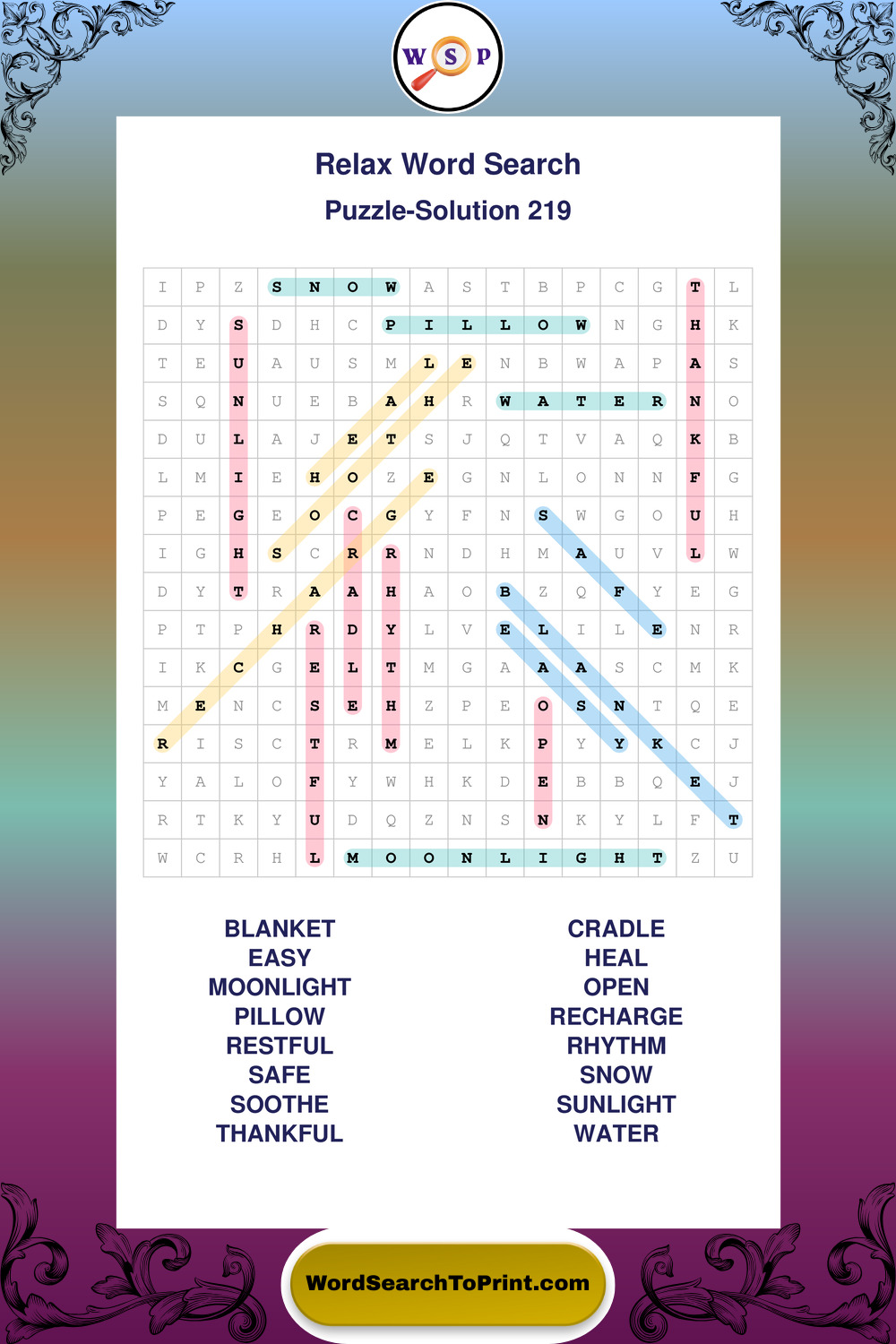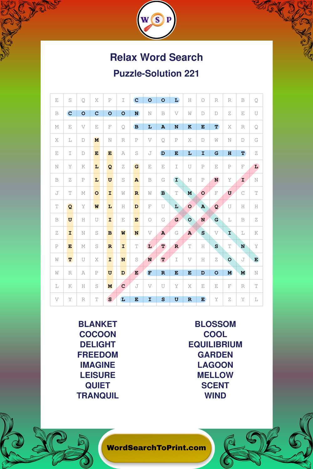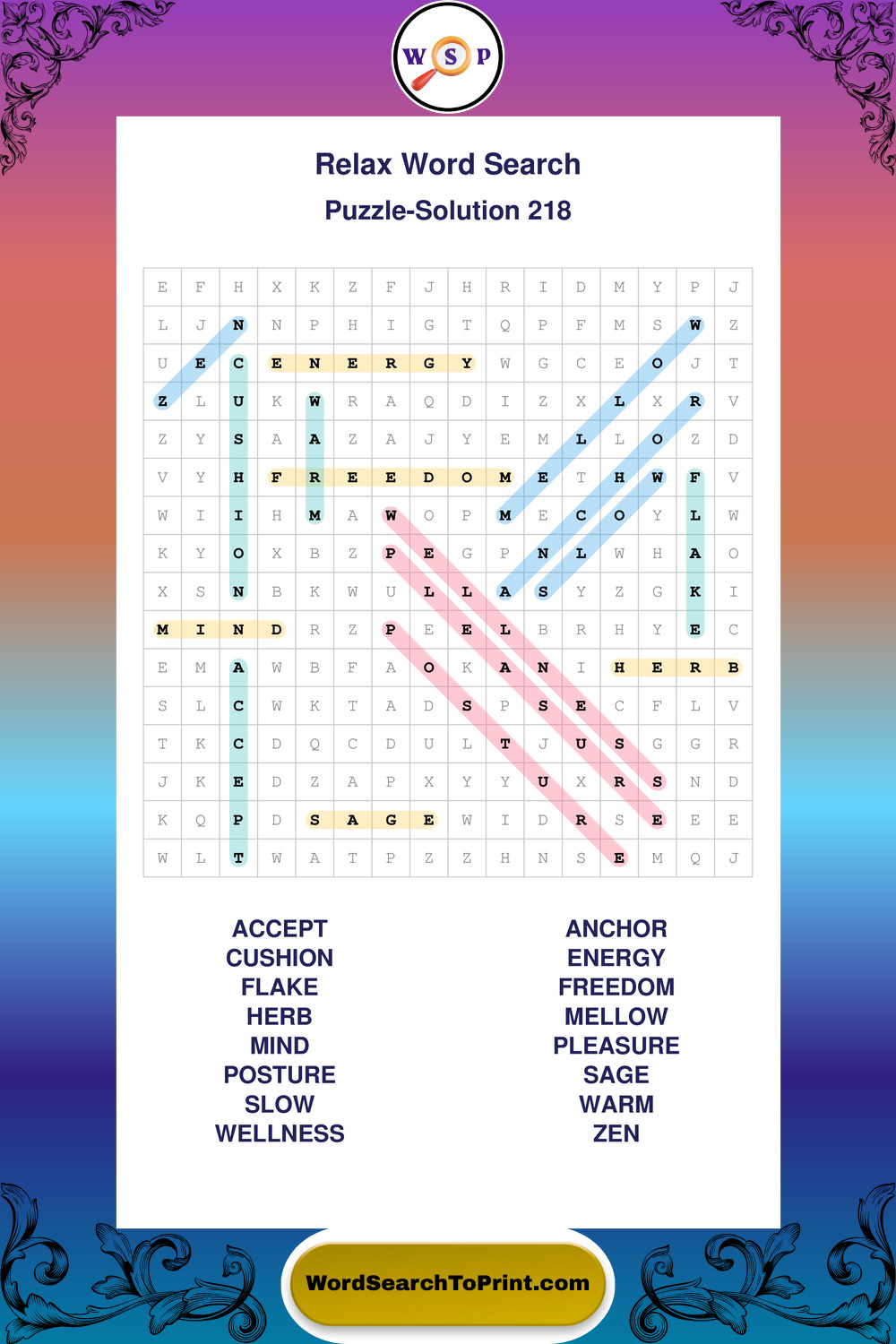 Printable Relax Wordsearch Puzzles