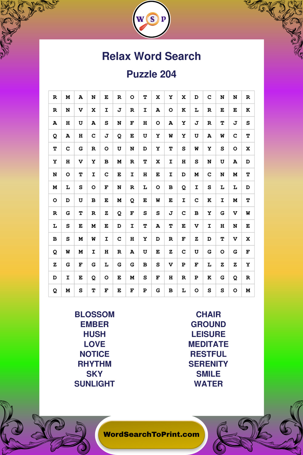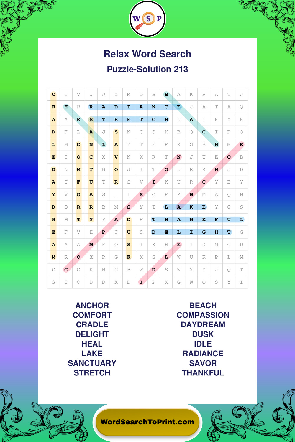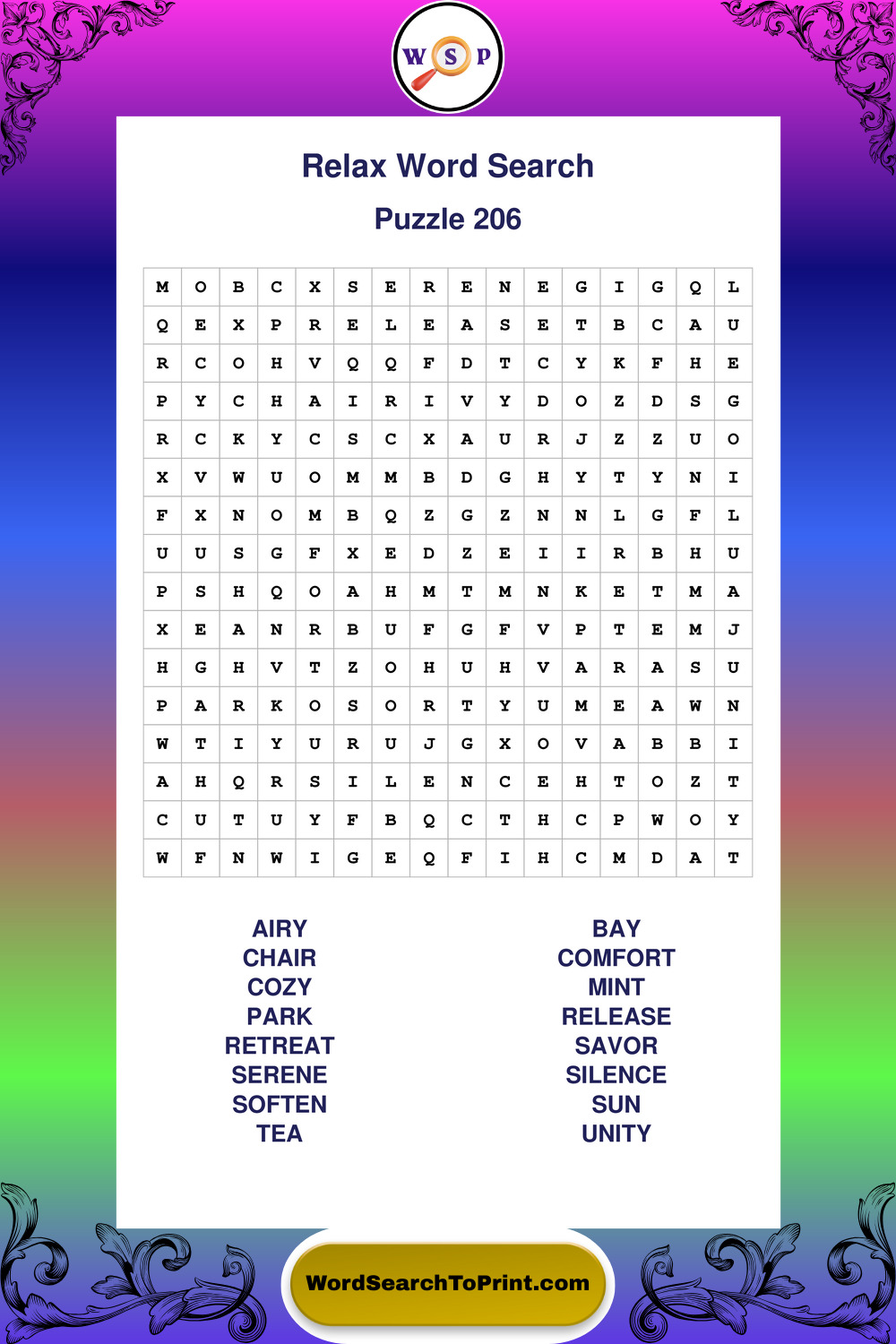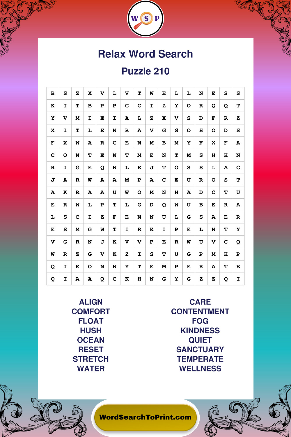 Printable Relax Wordsearch Puzzles
