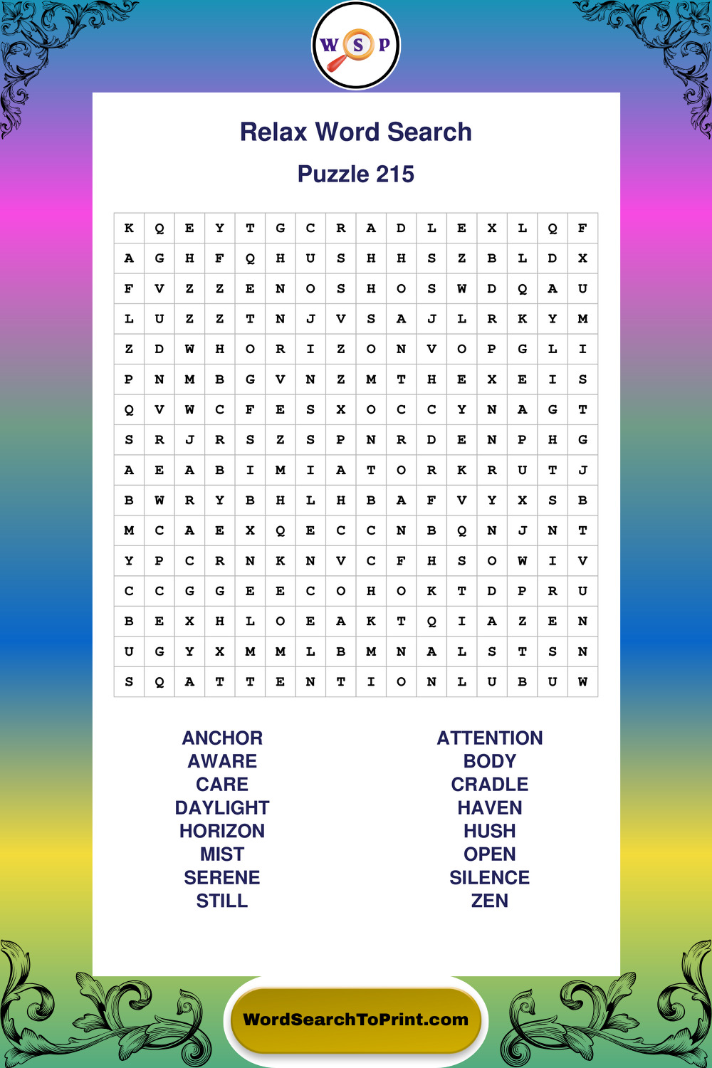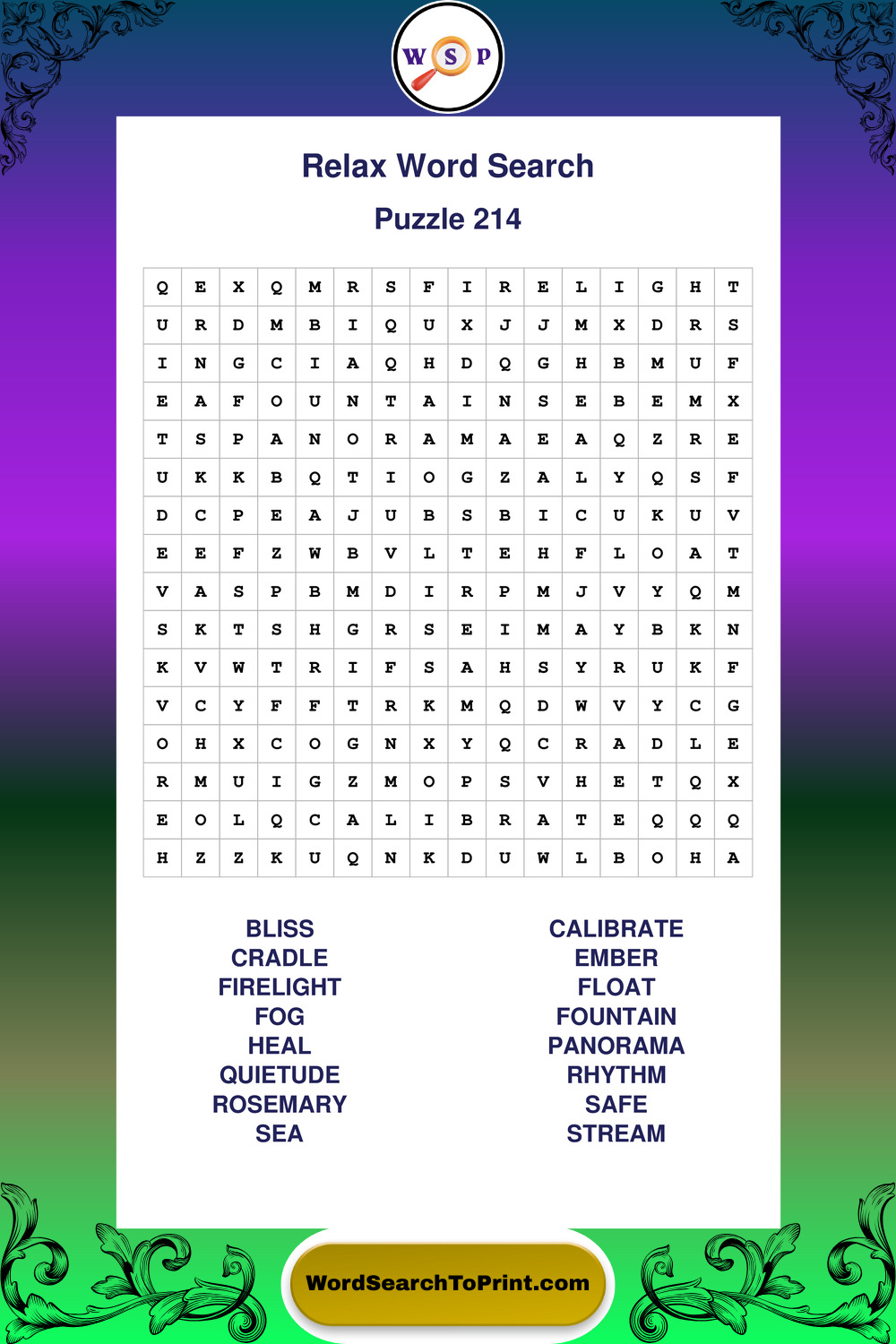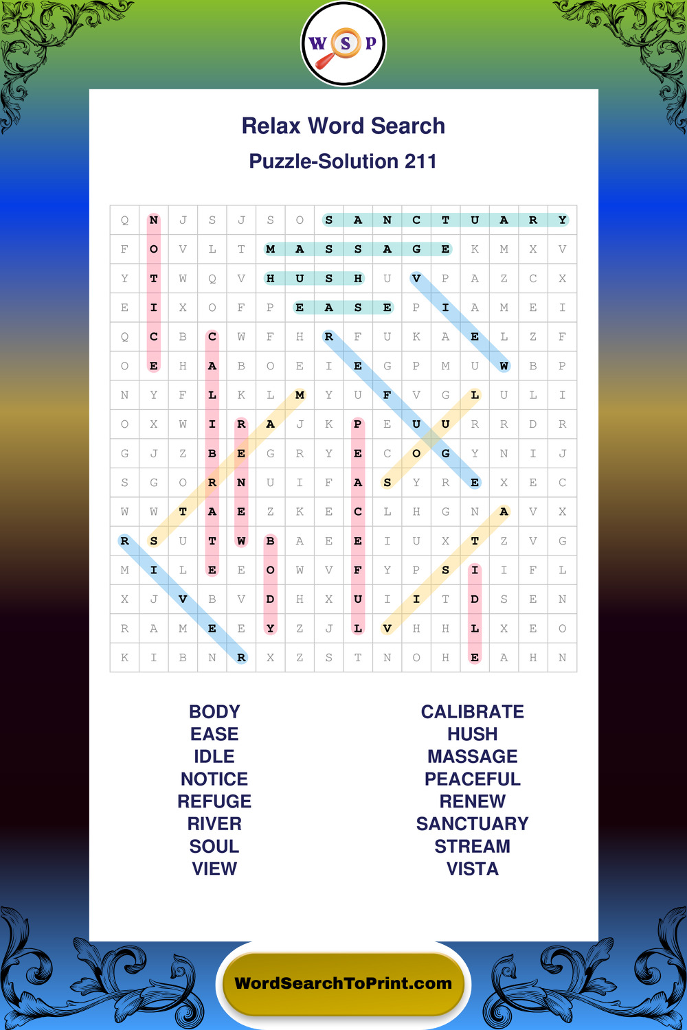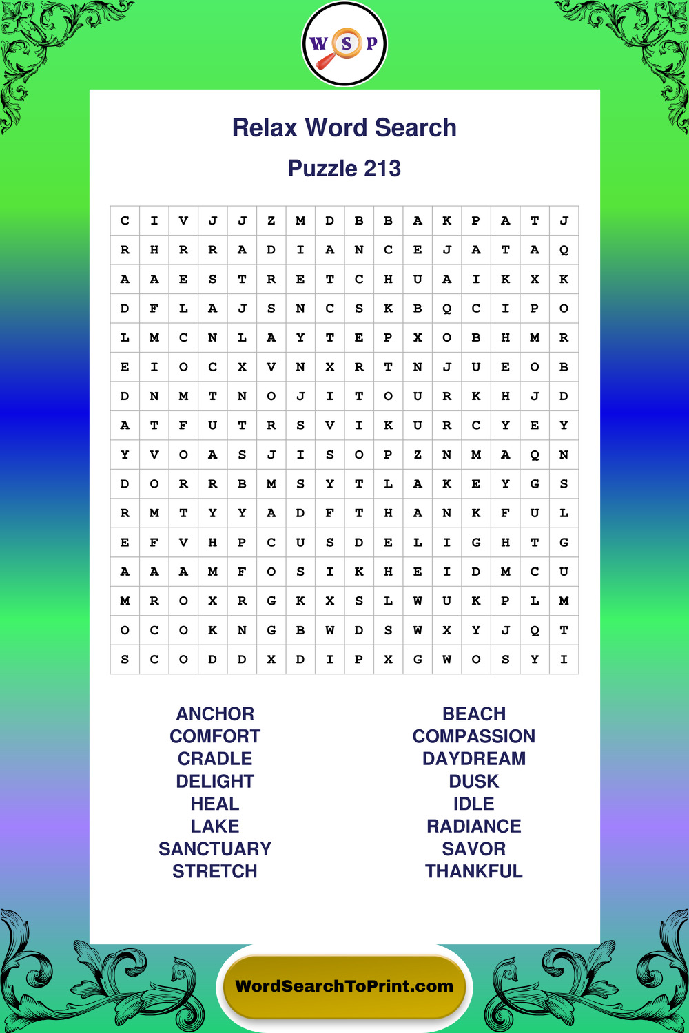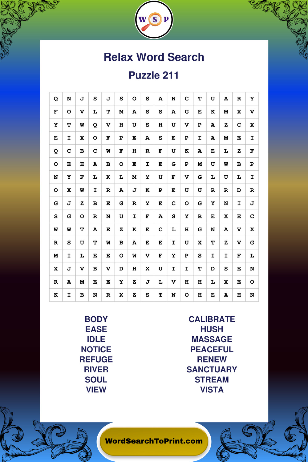 Printable Relax Wordsearch Puzzles