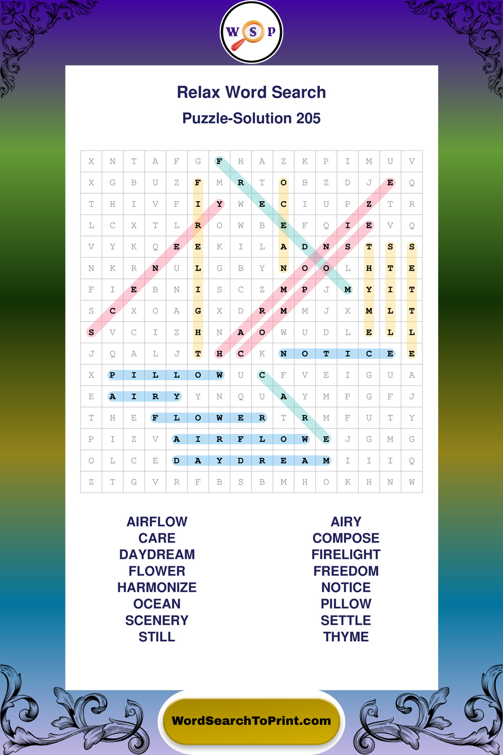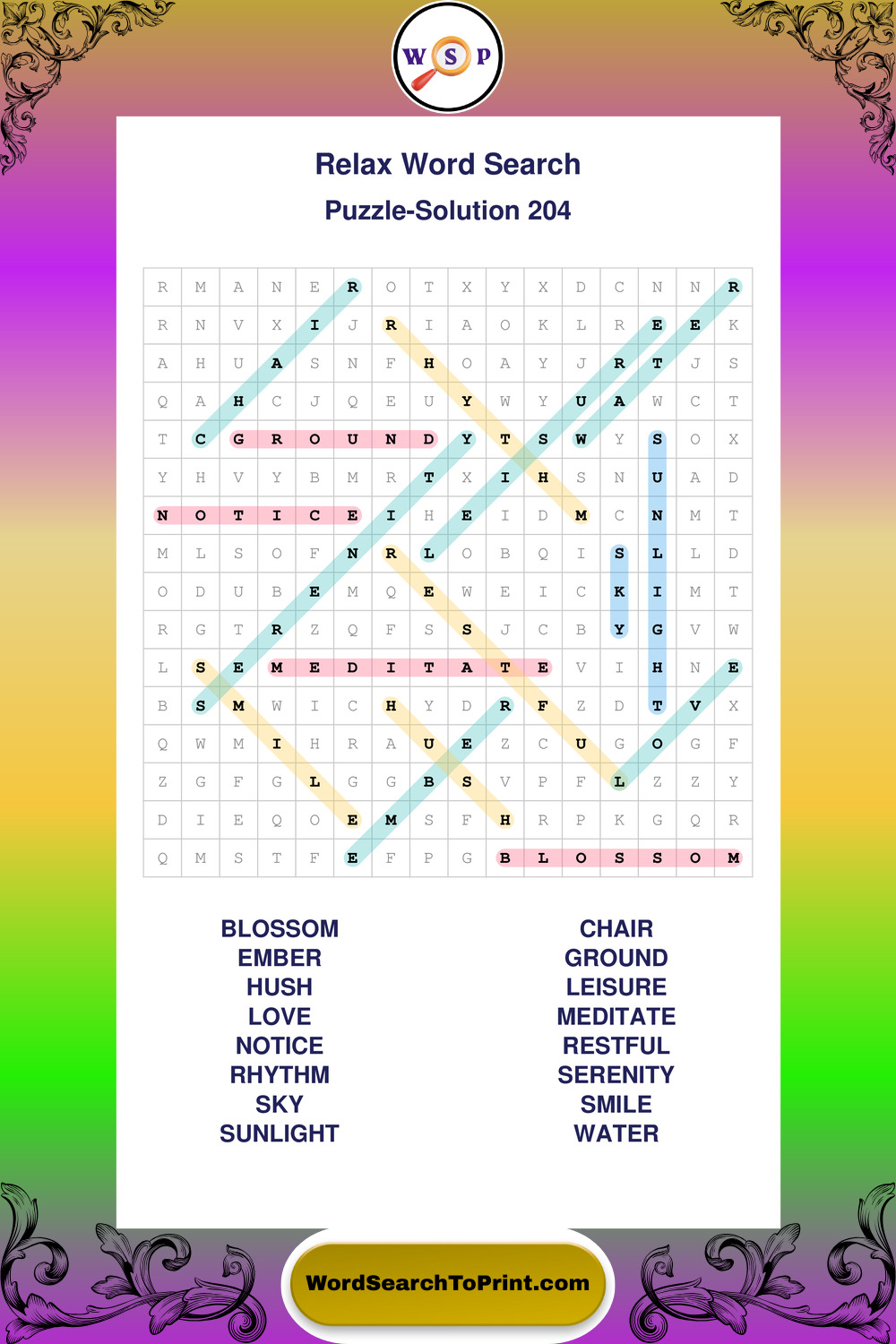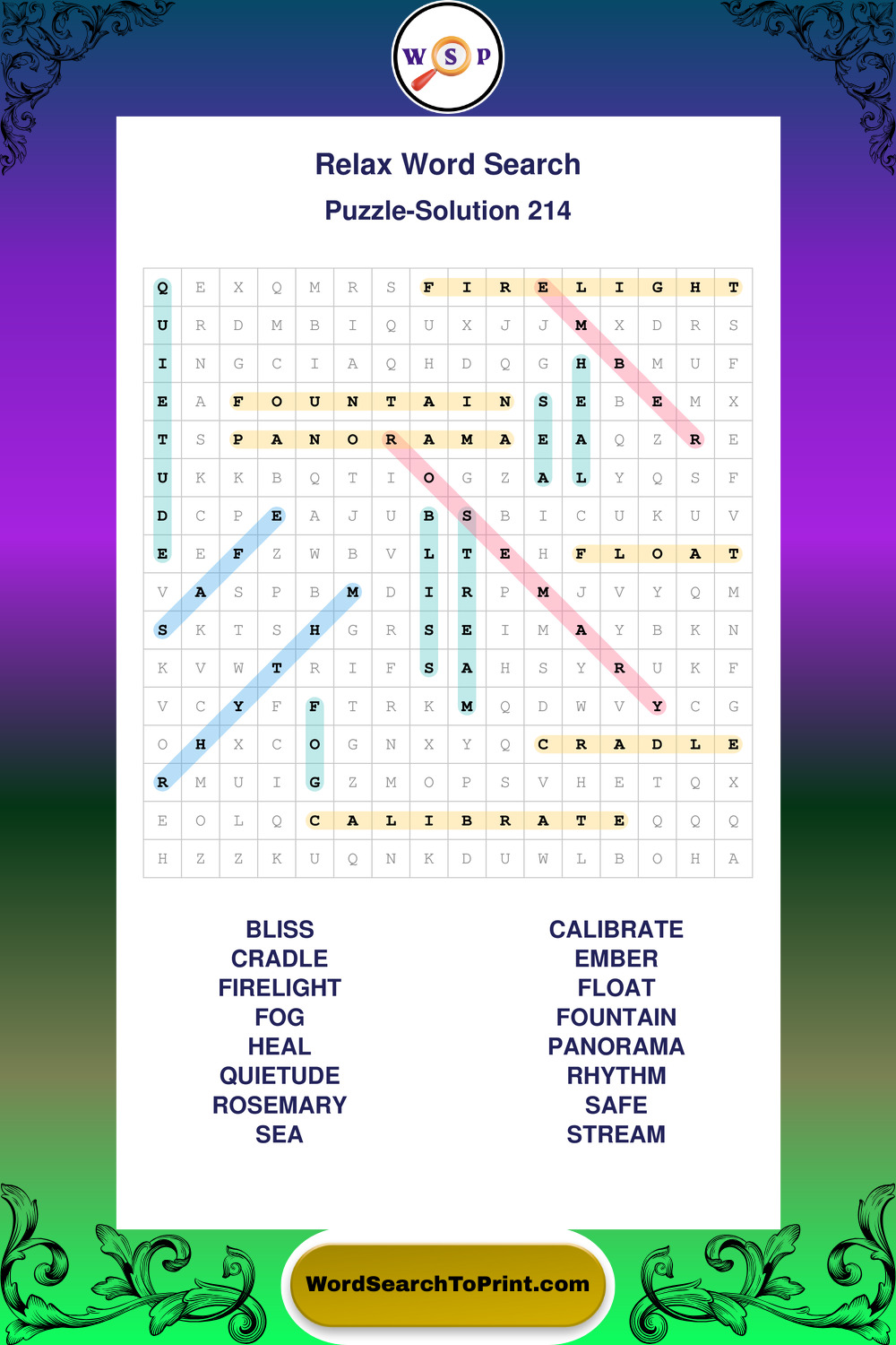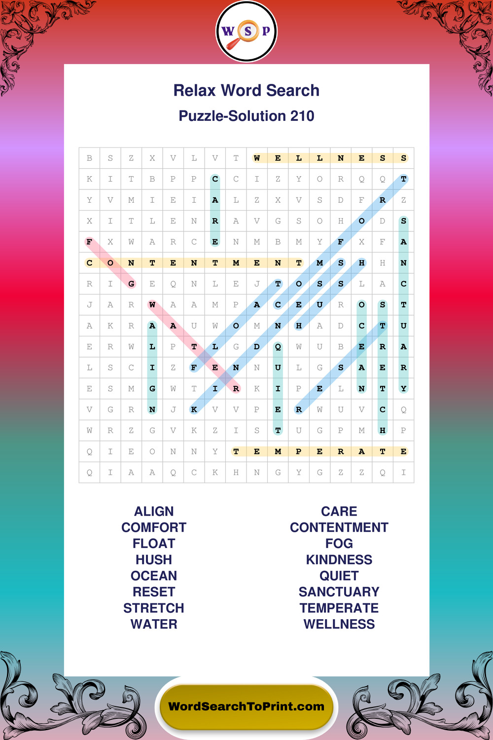 Printable Relax Wordsearch Puzzles