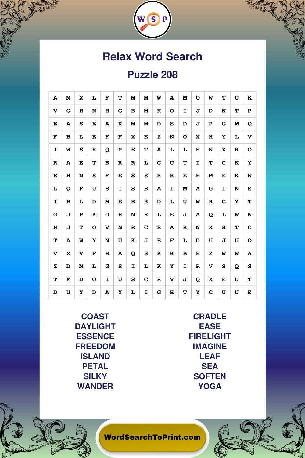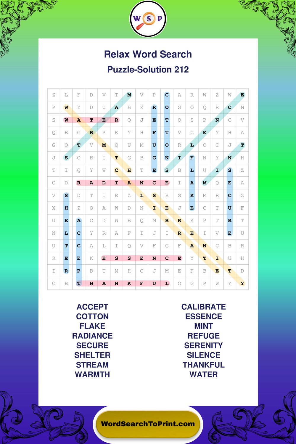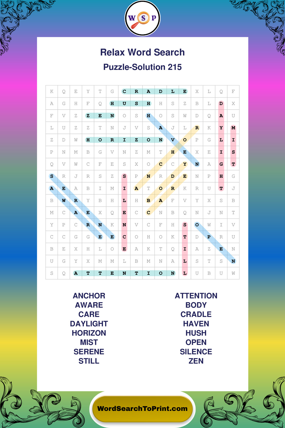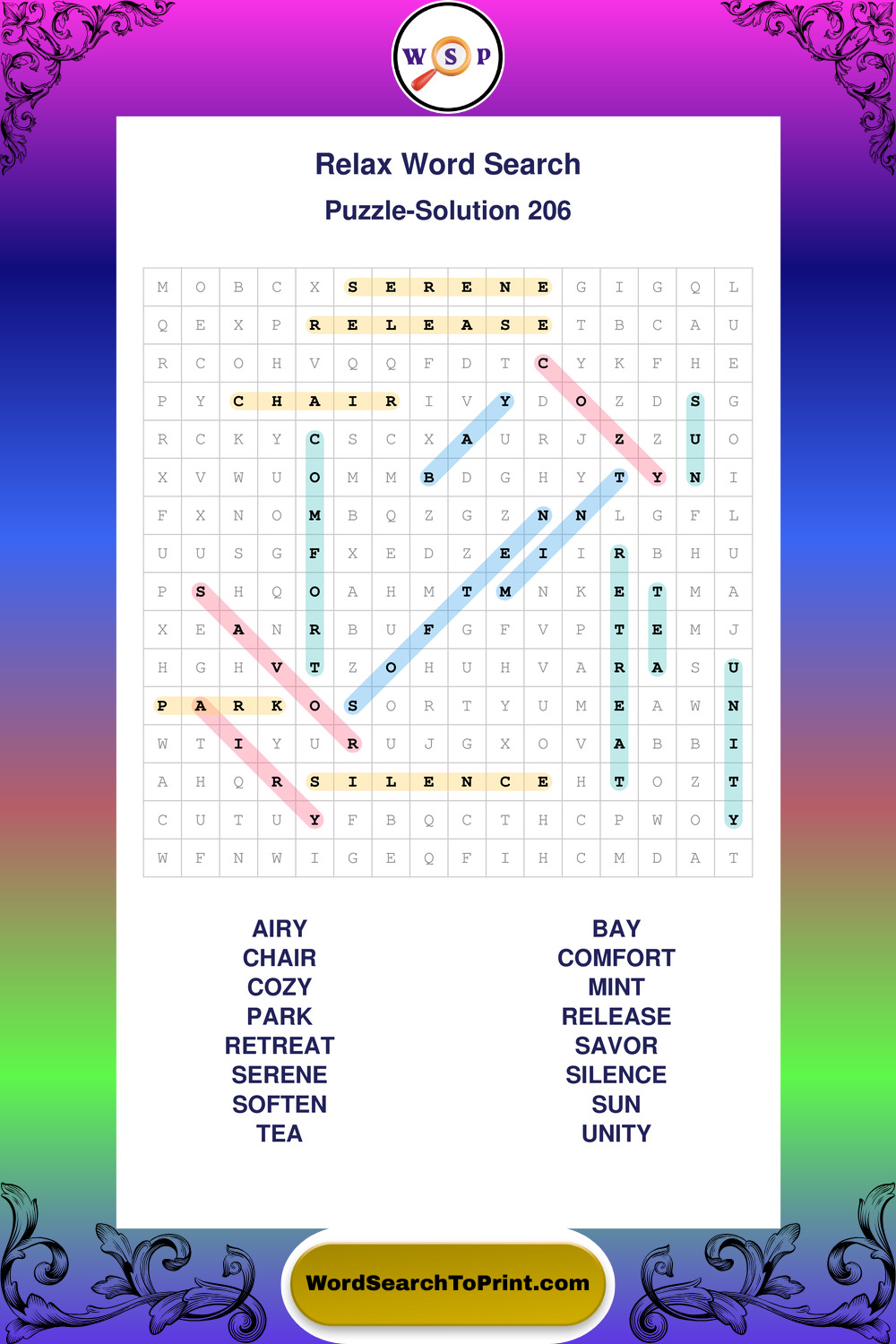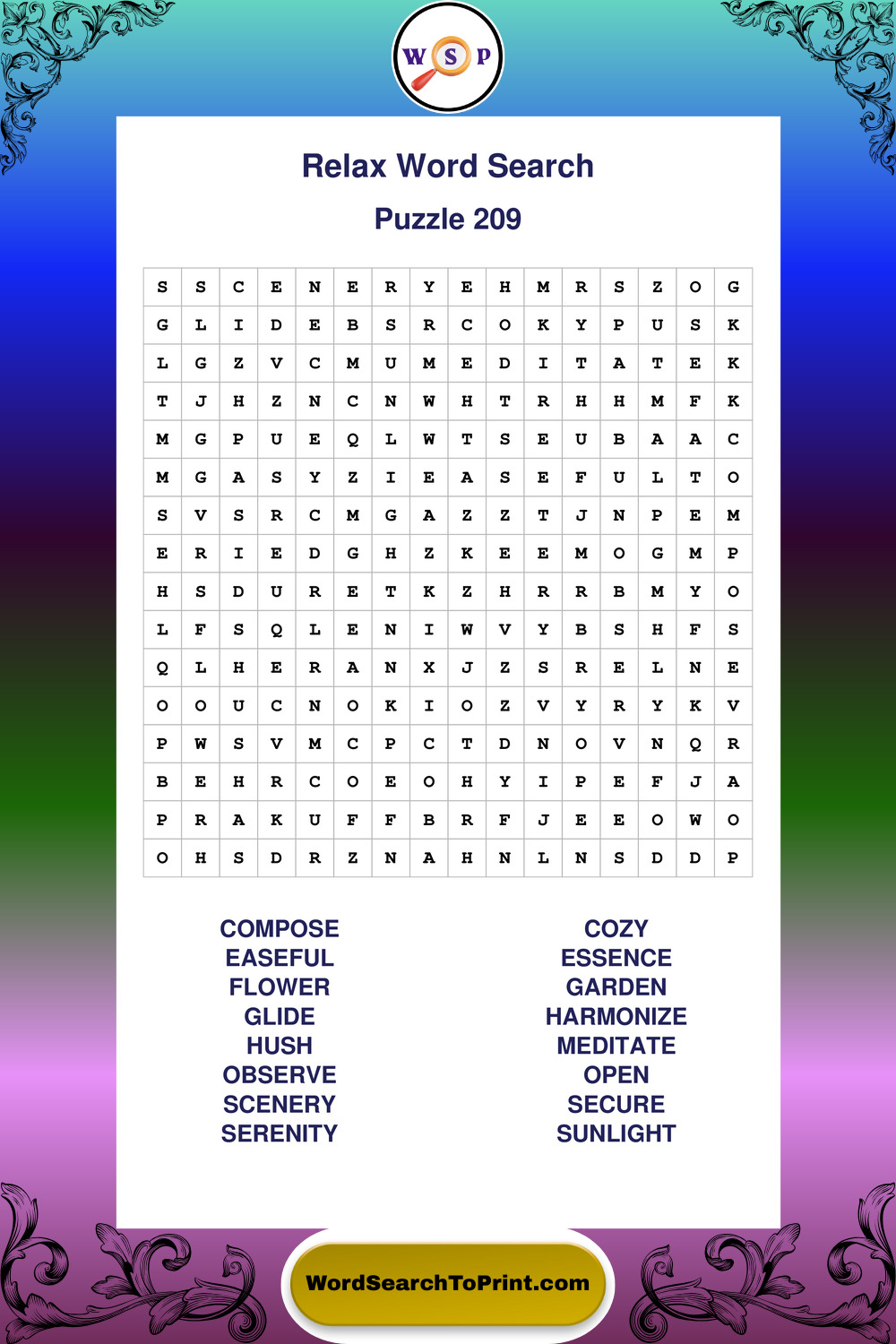 Printable Relax Wordsearch Puzzles
