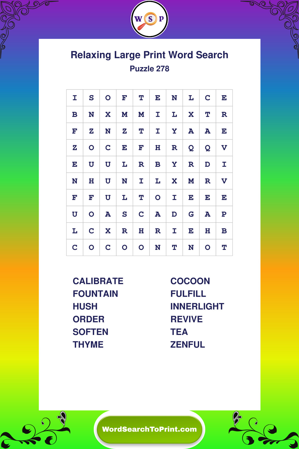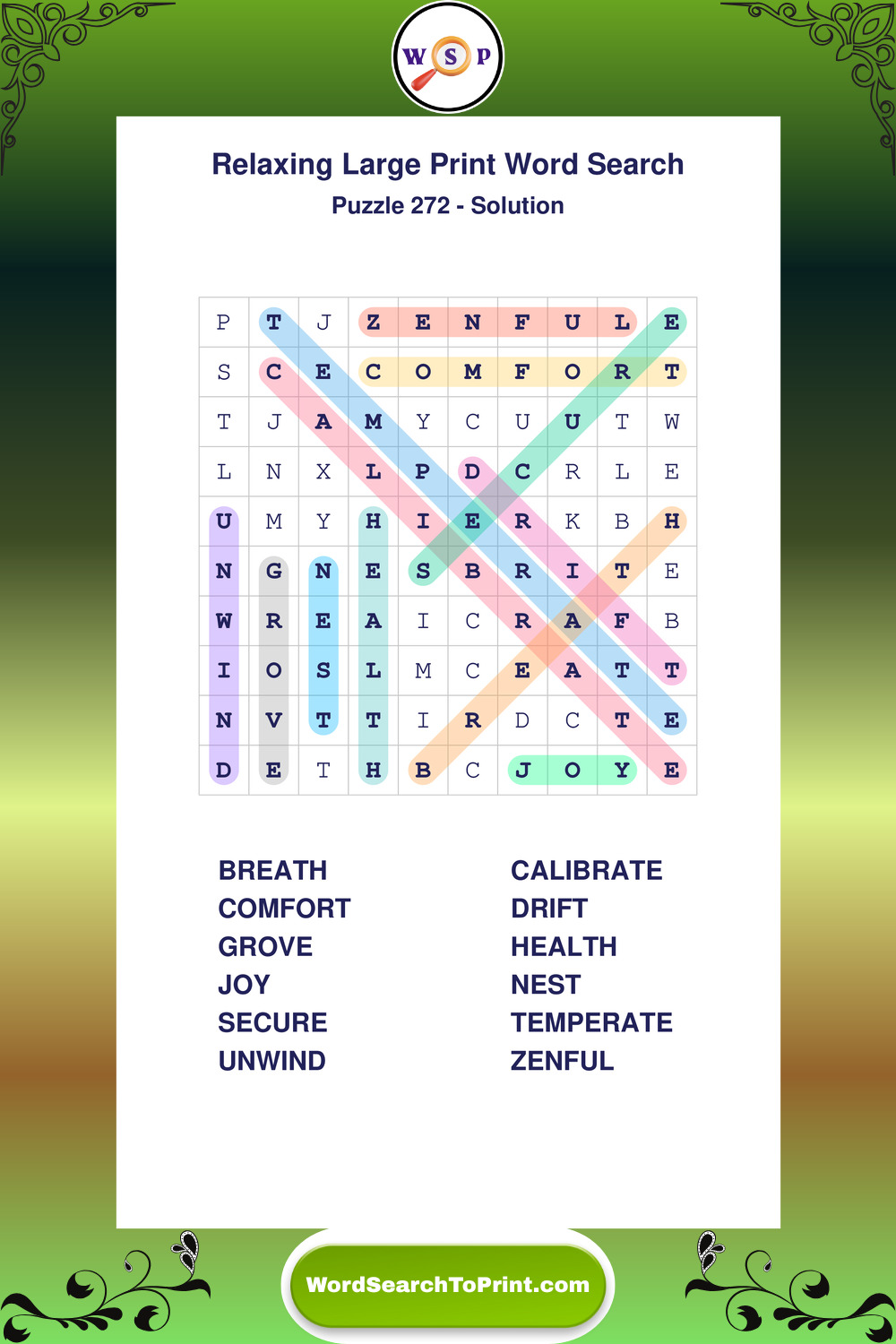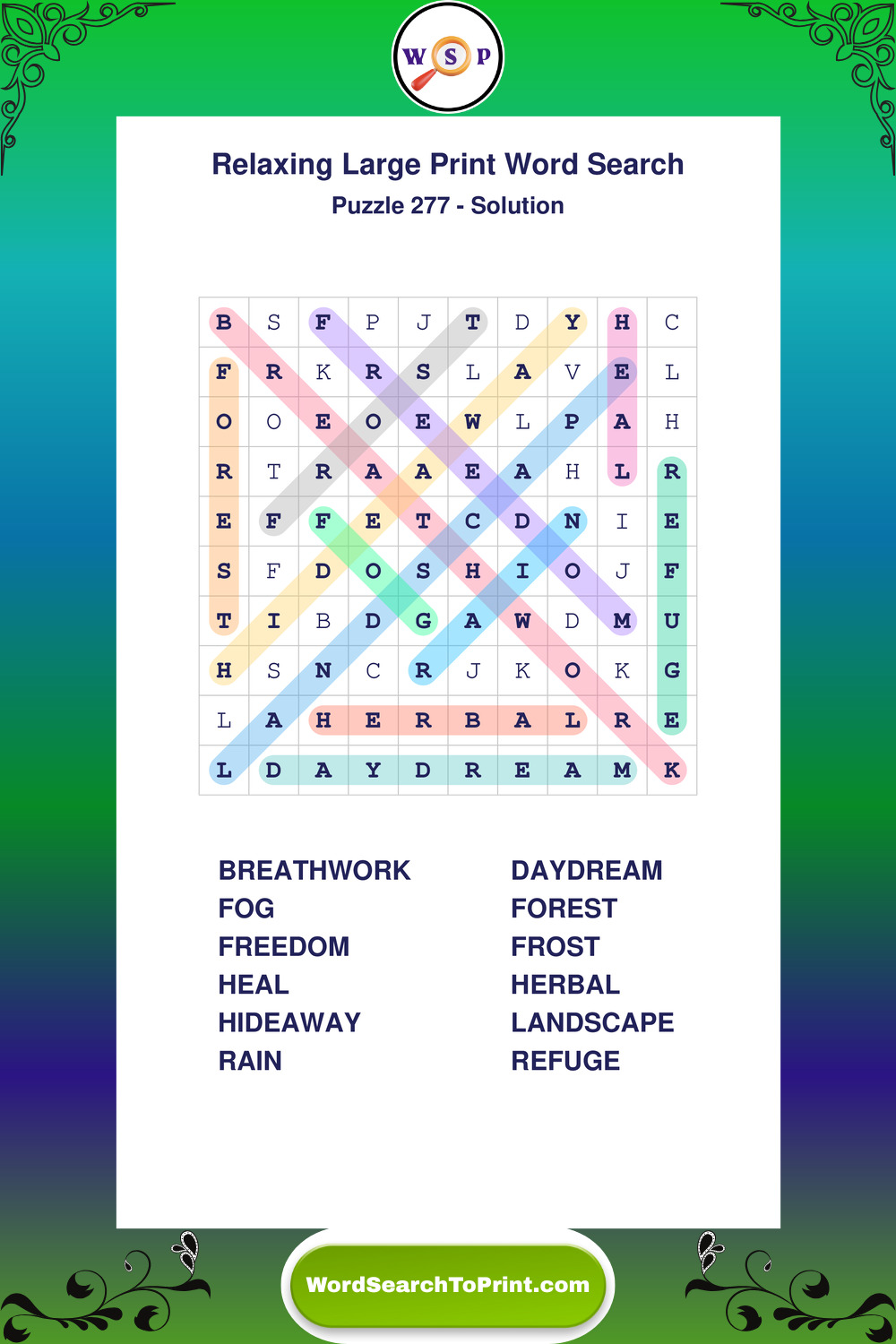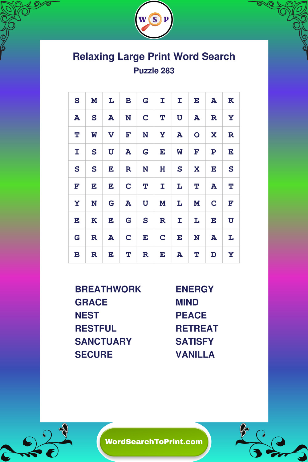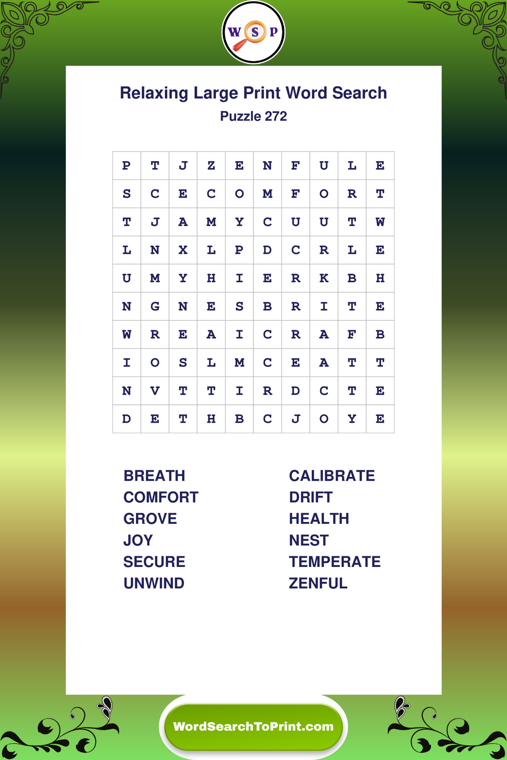 Free Large Print Relaxing Wordsearches