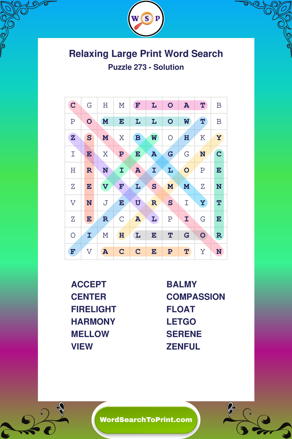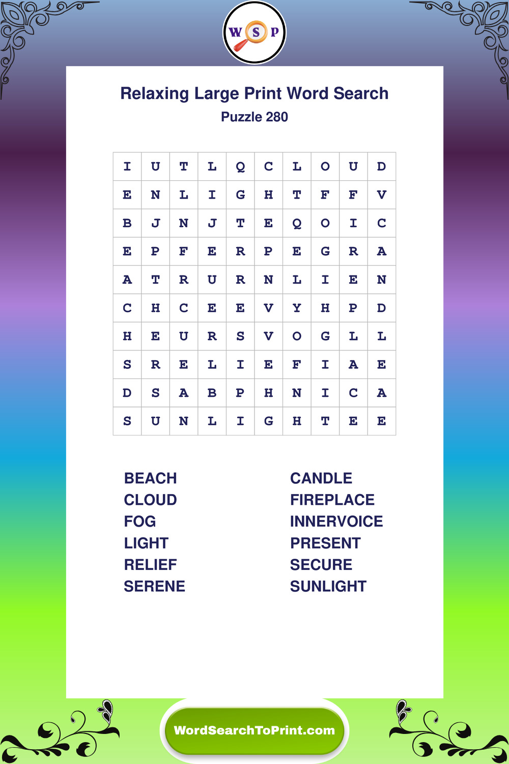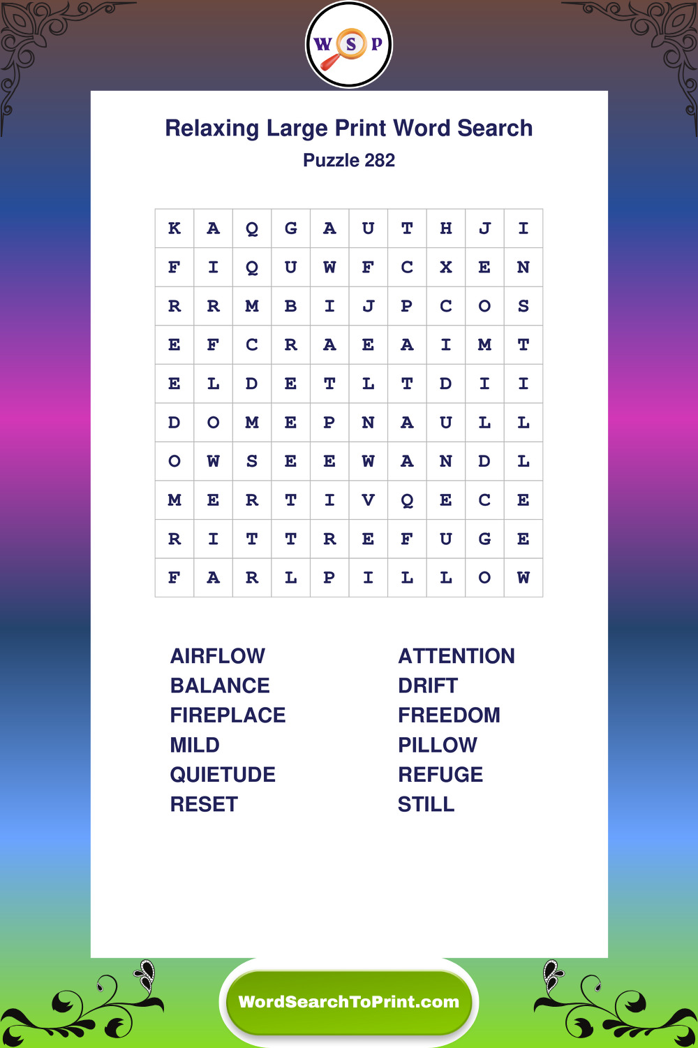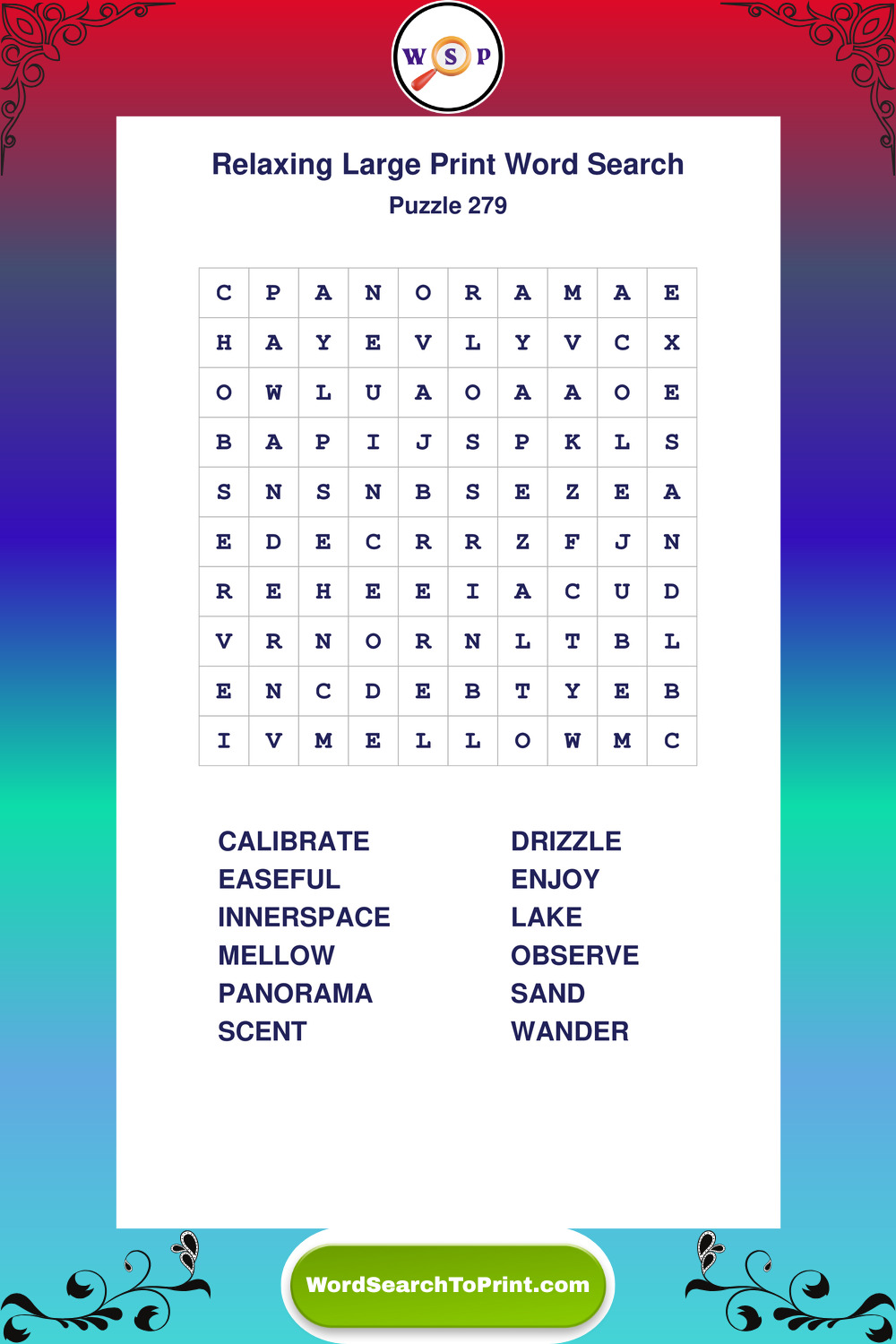 Free Large Print Relaxing Wordsearches