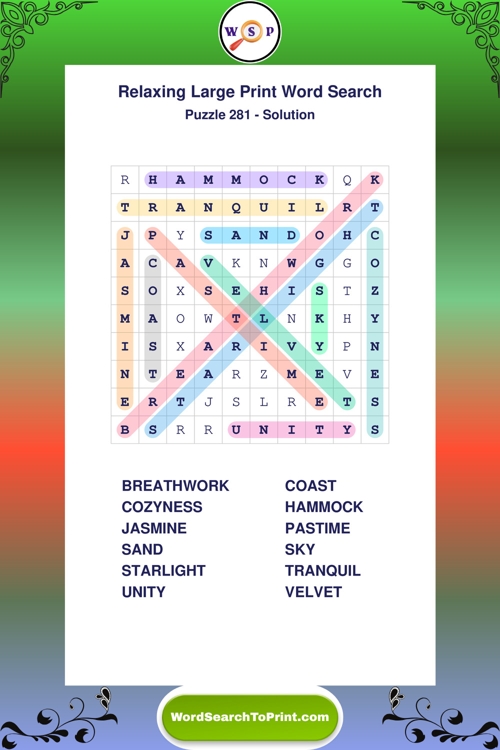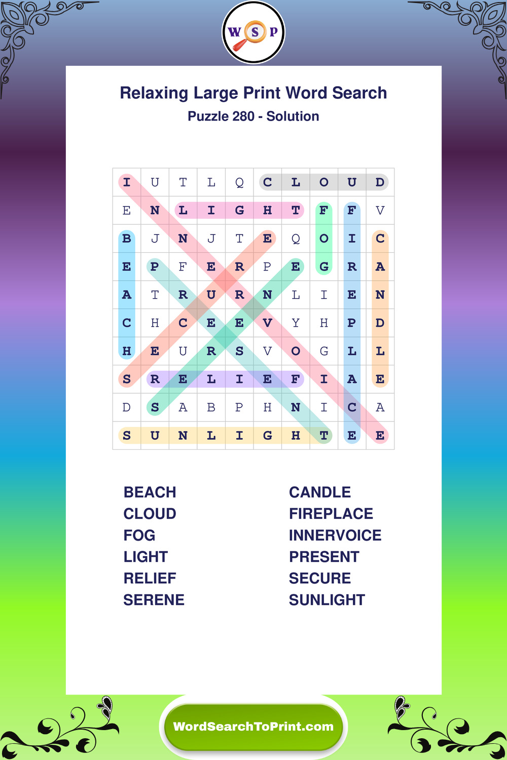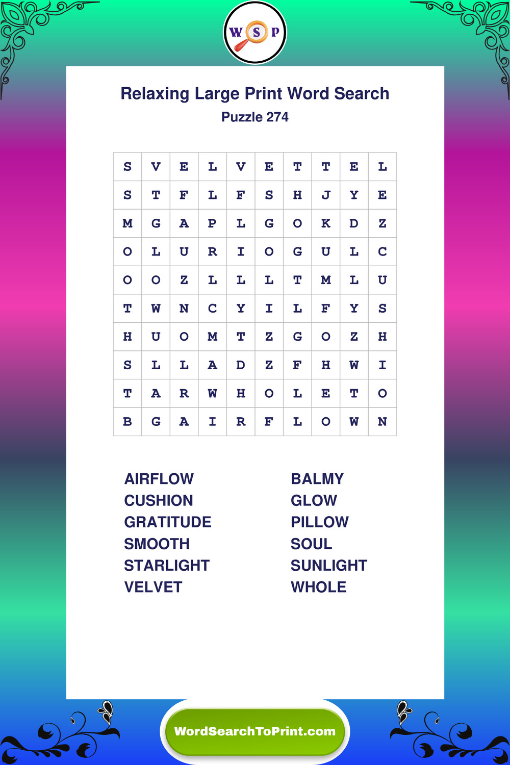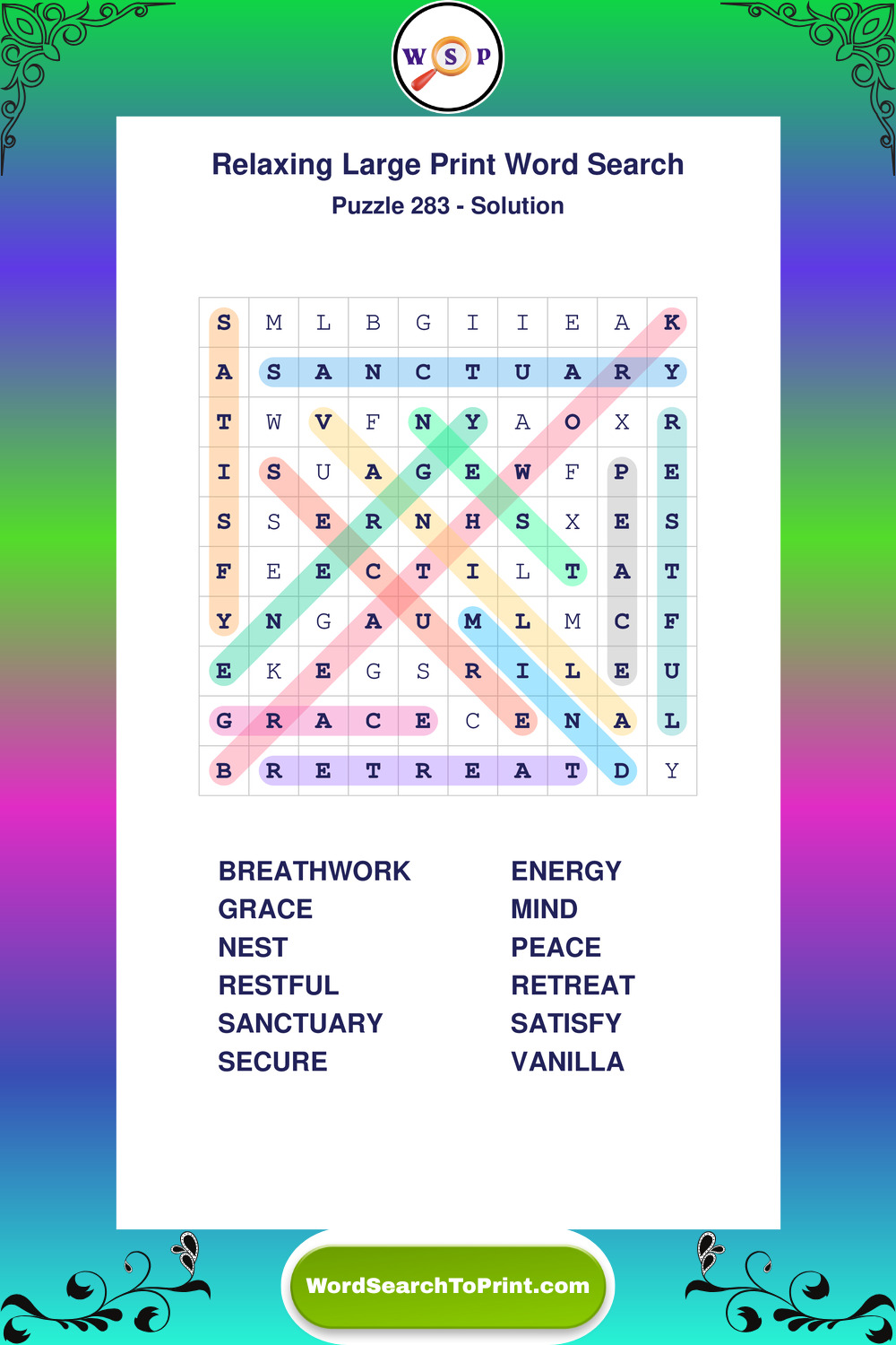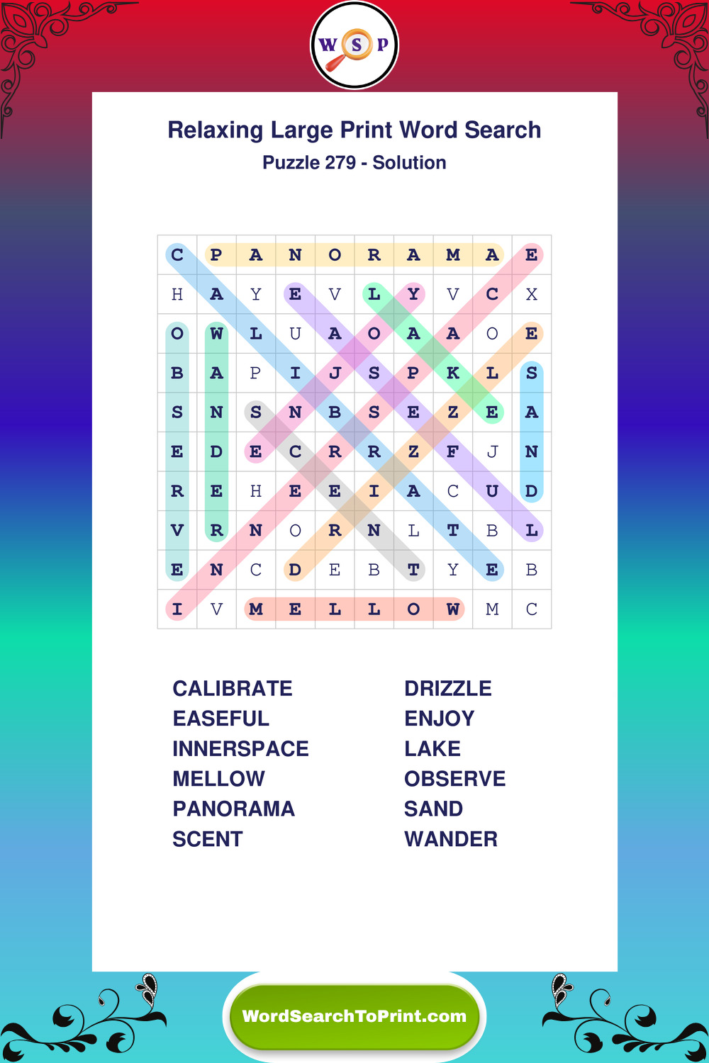 Free Large Print Relaxing Wordsearches