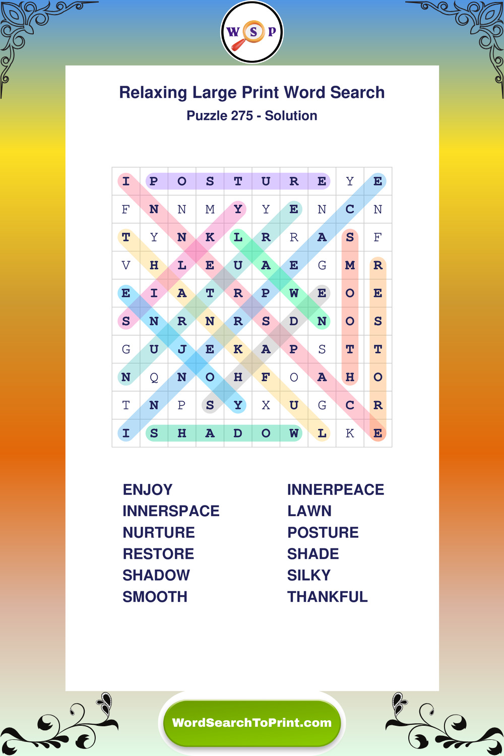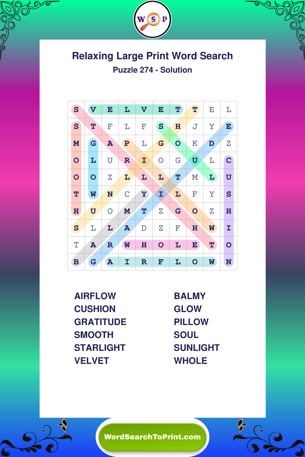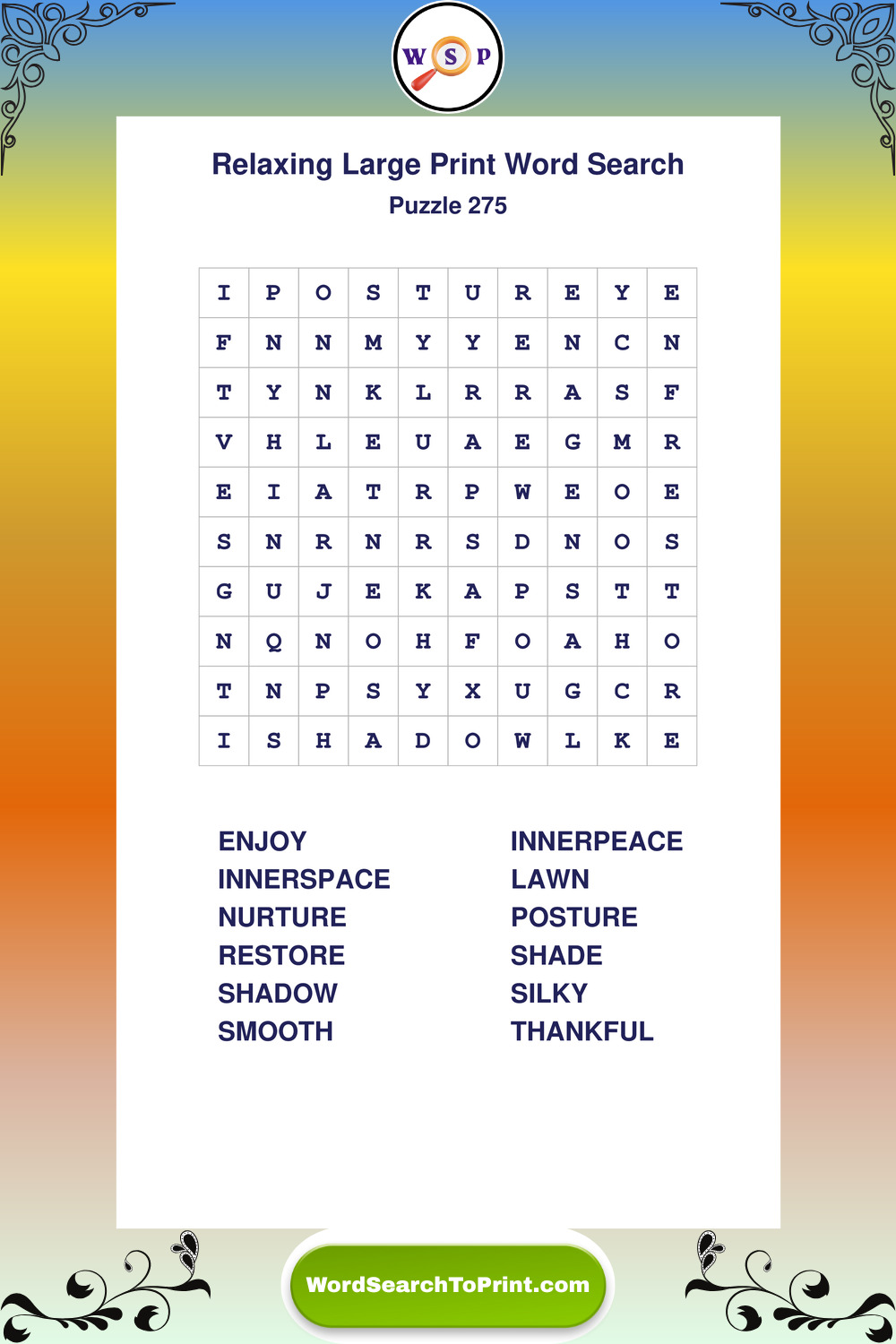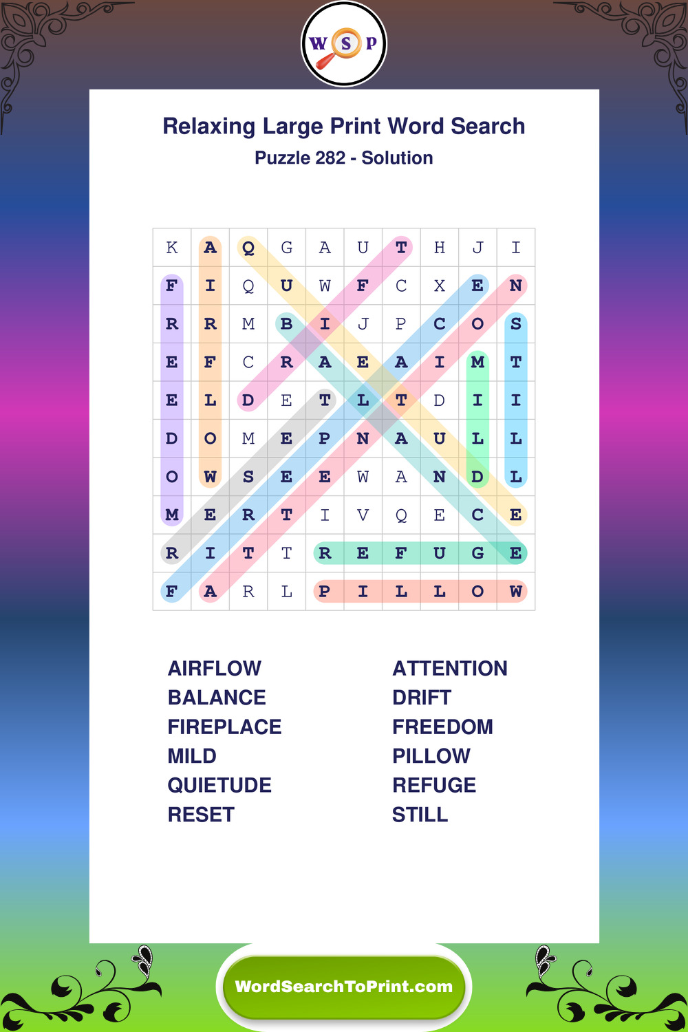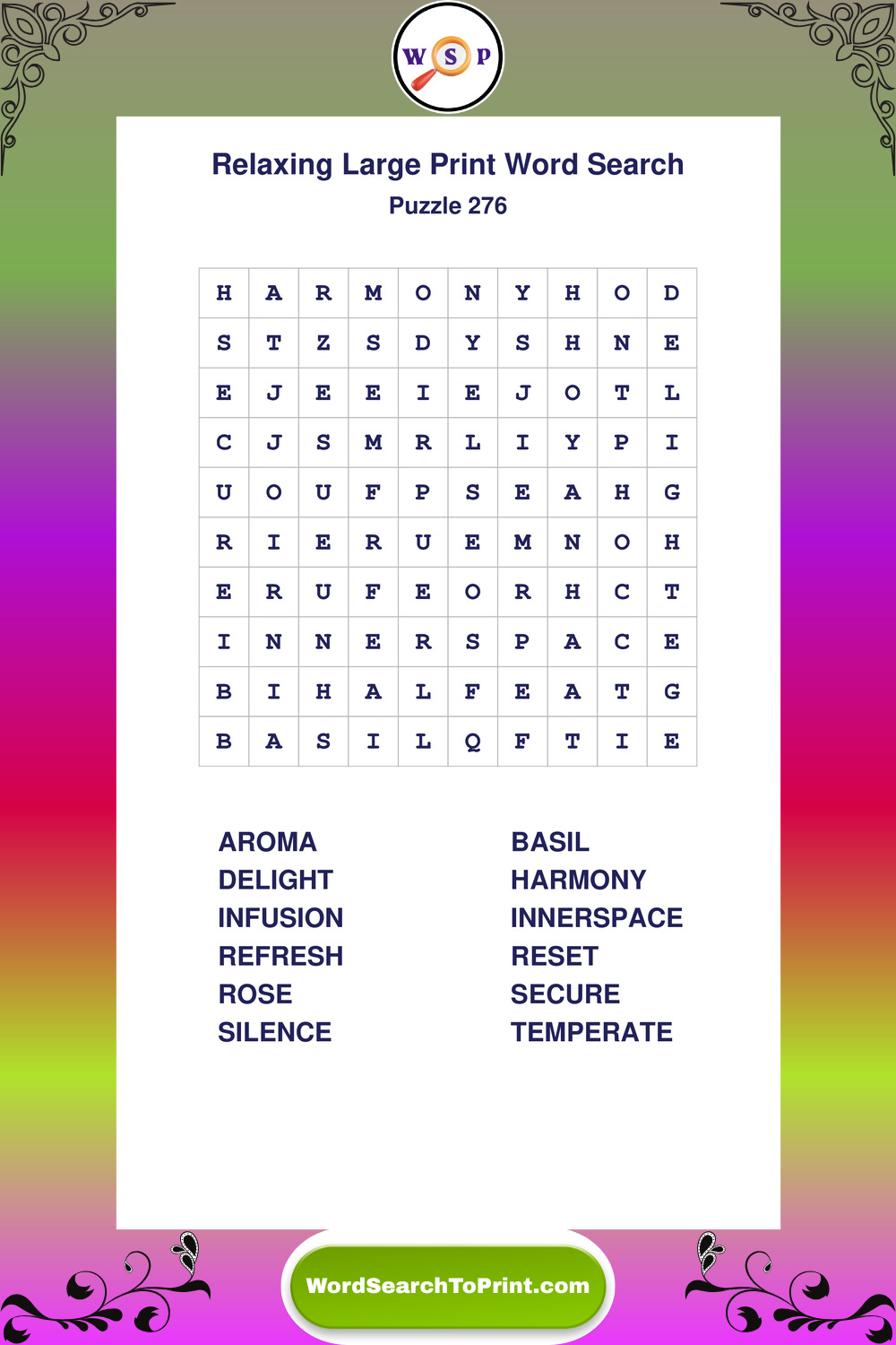 Free Large Print Relaxing Wordsearches