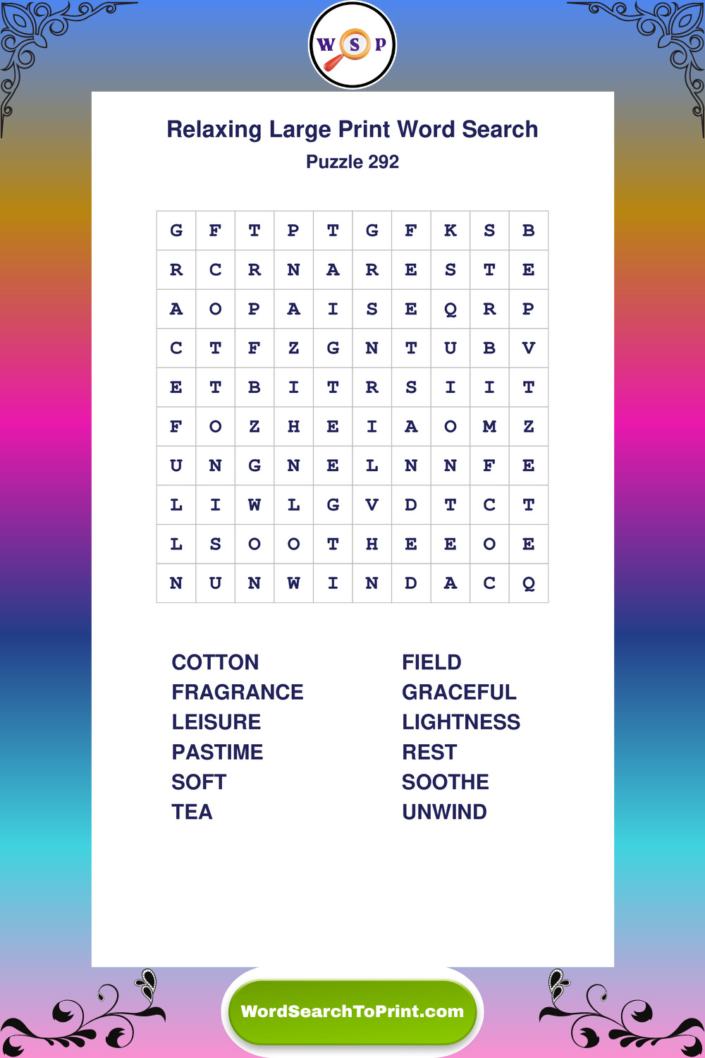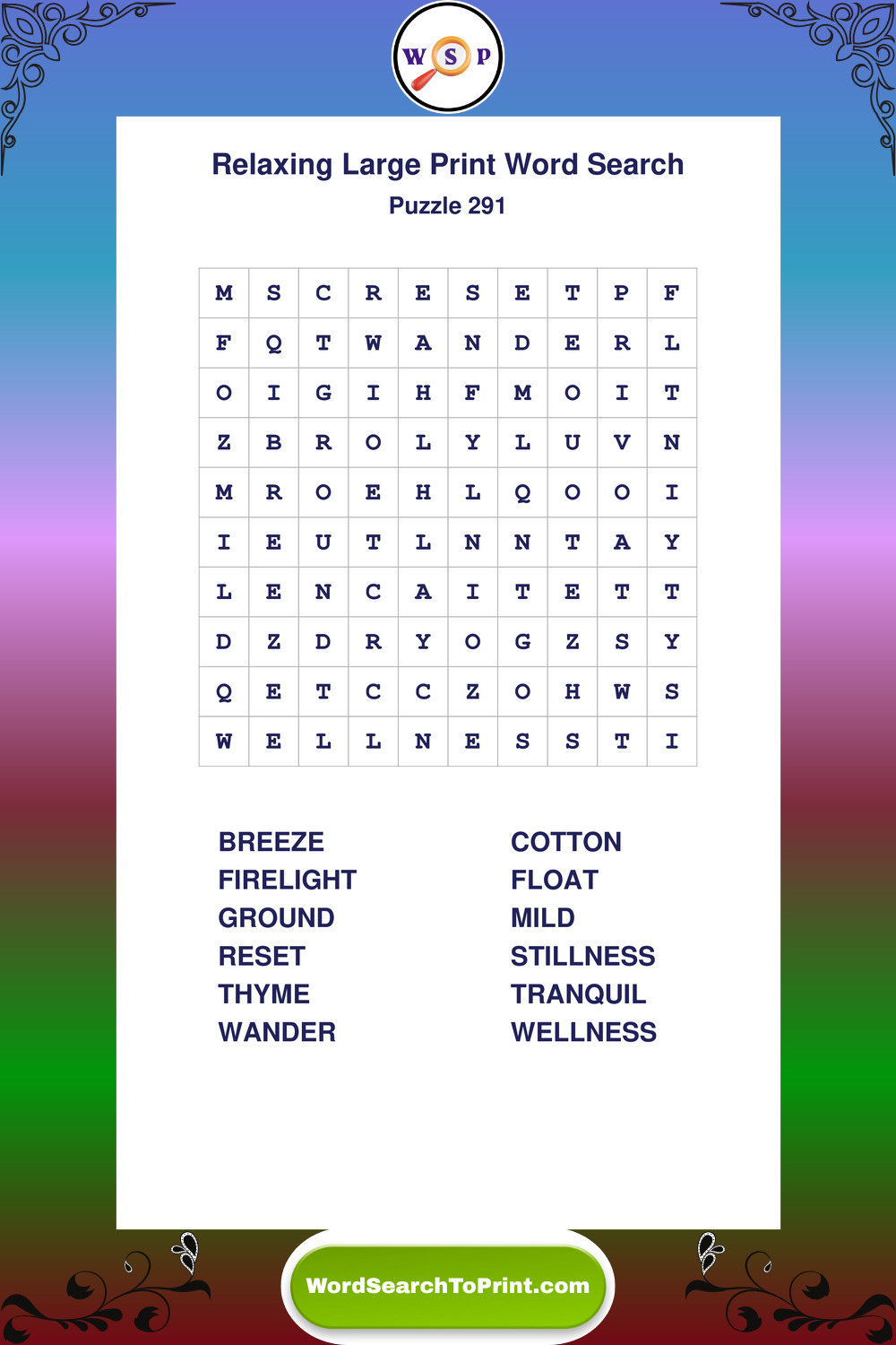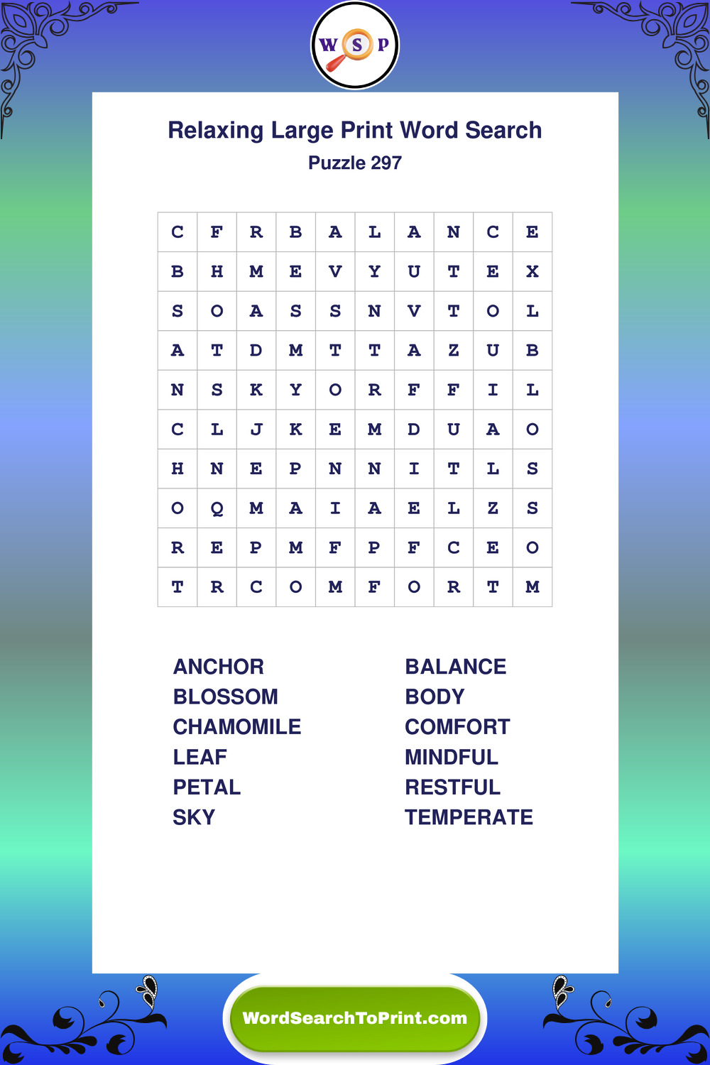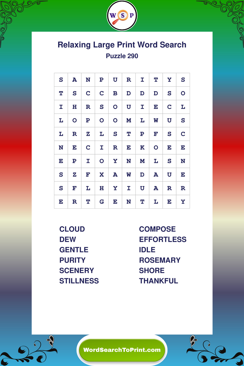 Free Large Print Relaxing Wordsearches