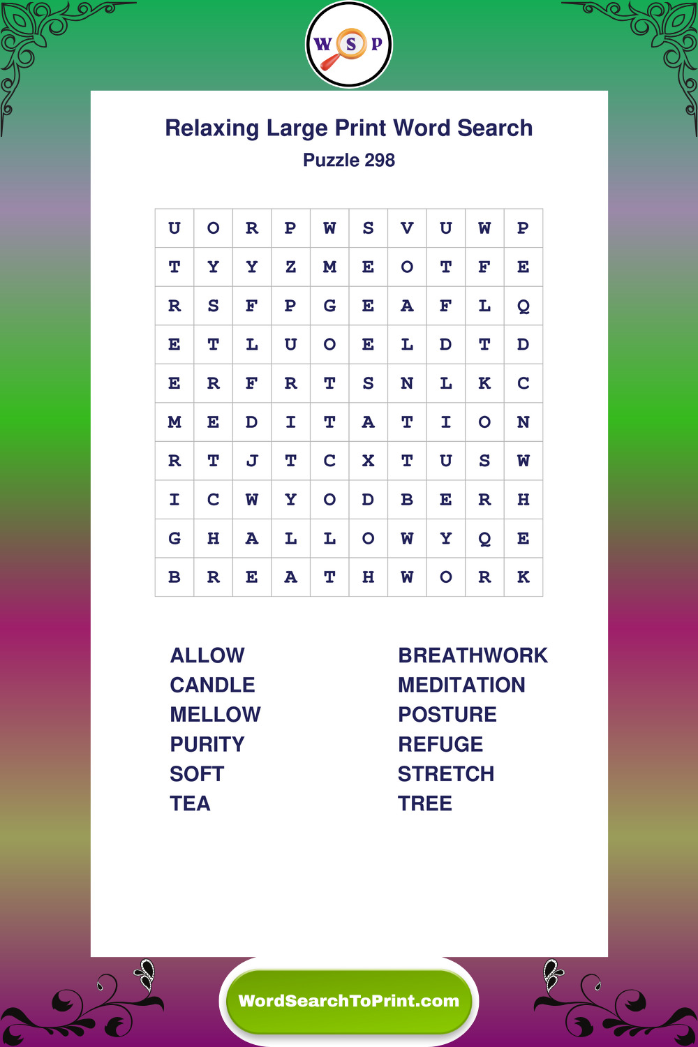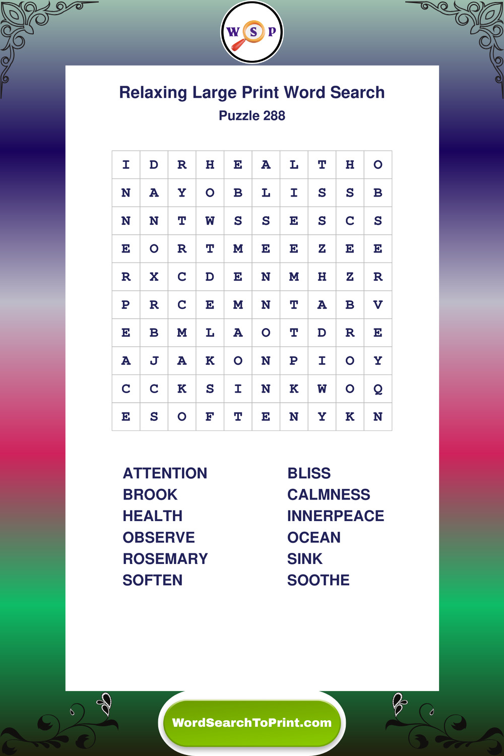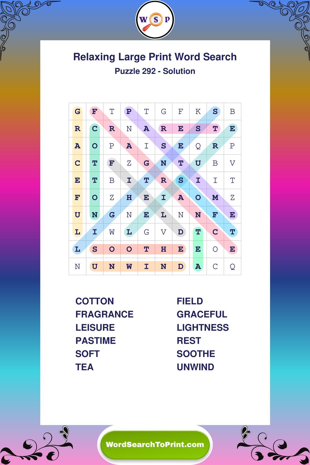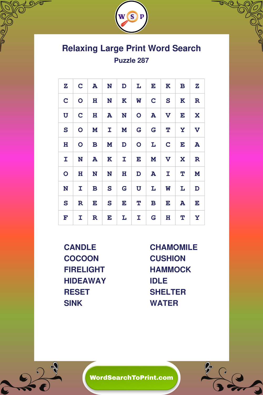 Free Large Print Relaxing Wordsearches