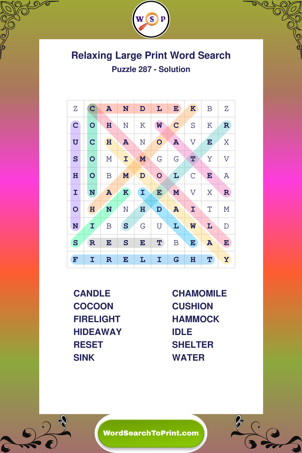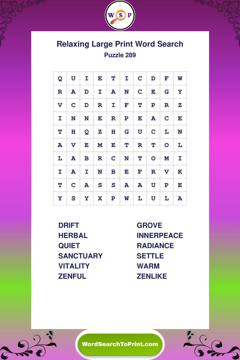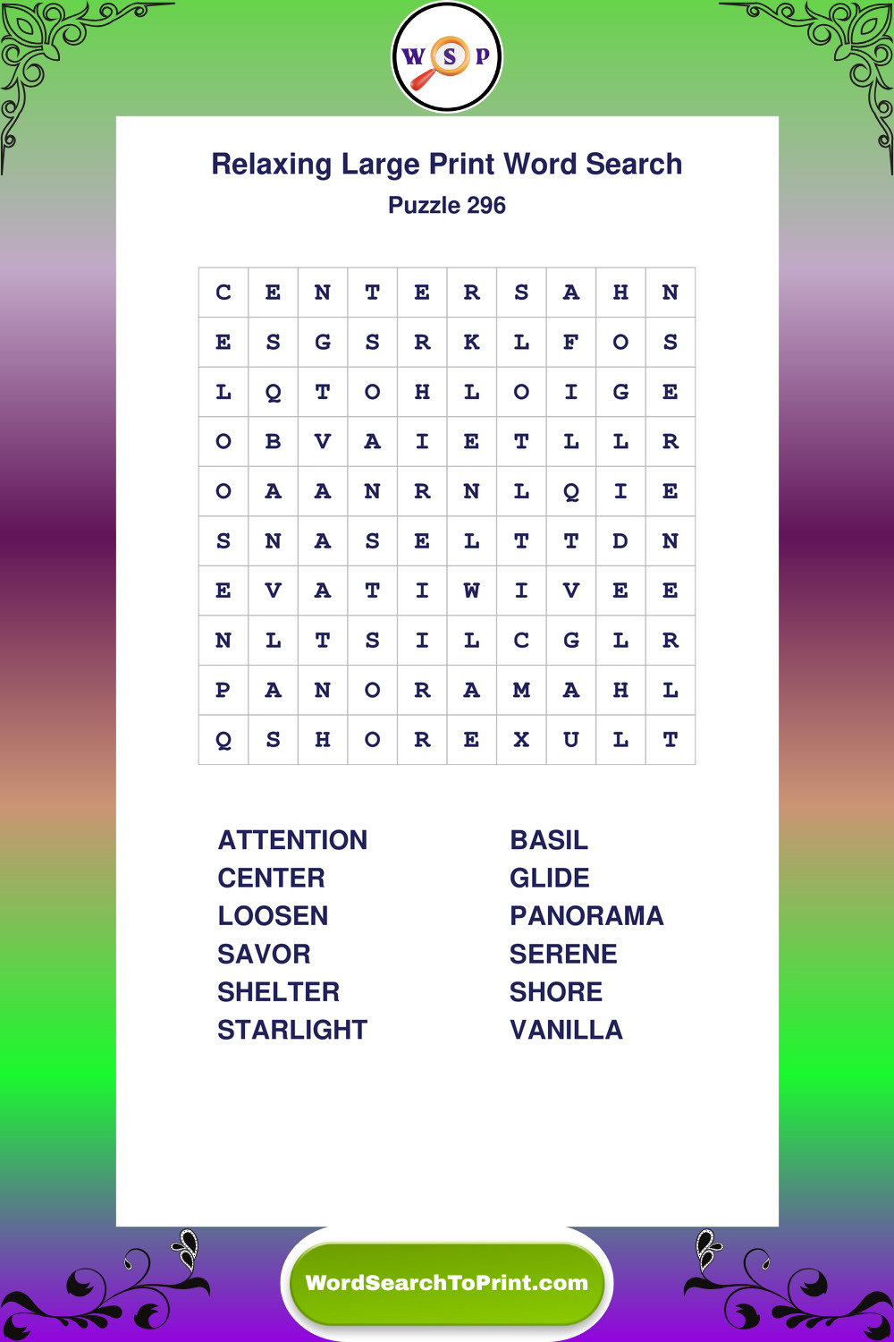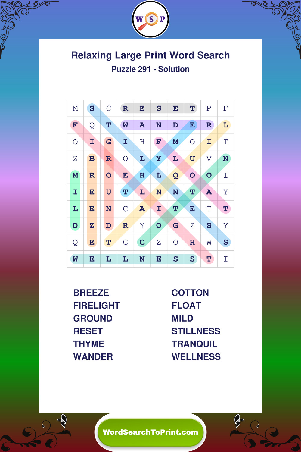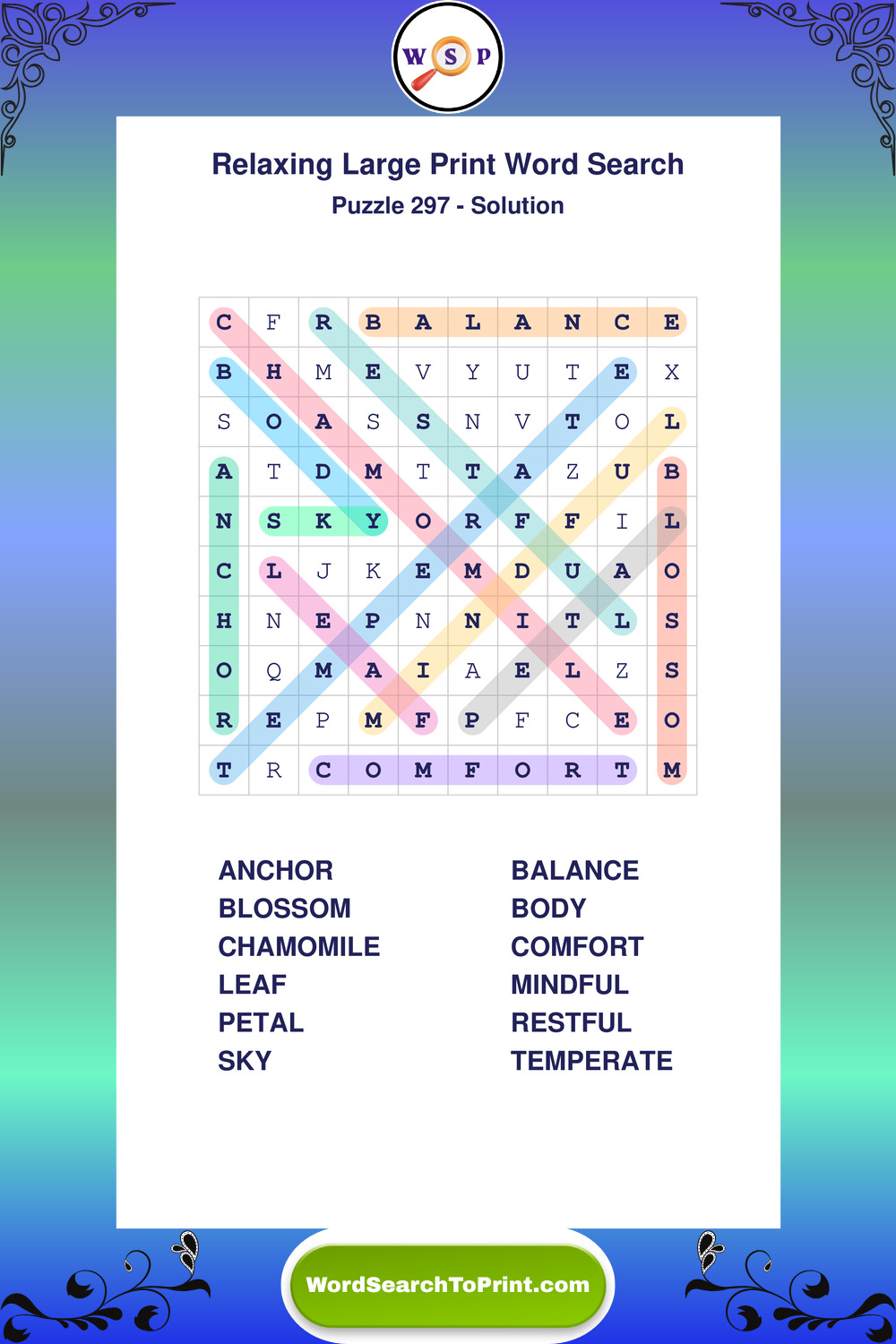 Free Large Print Relaxing Wordsearches