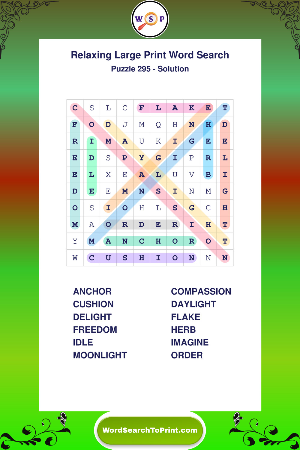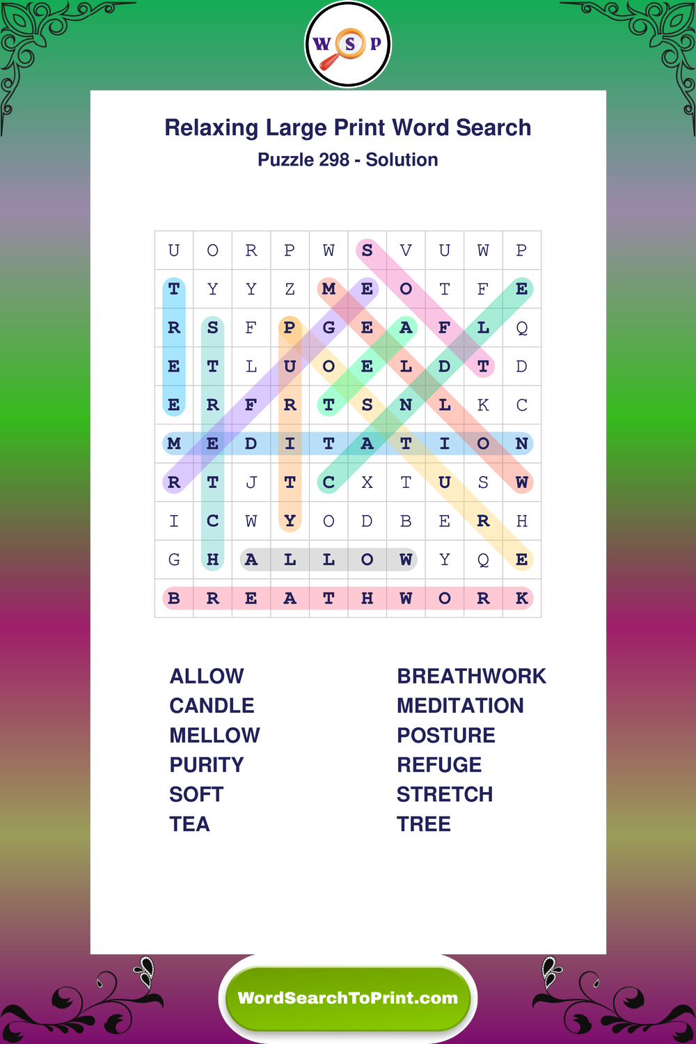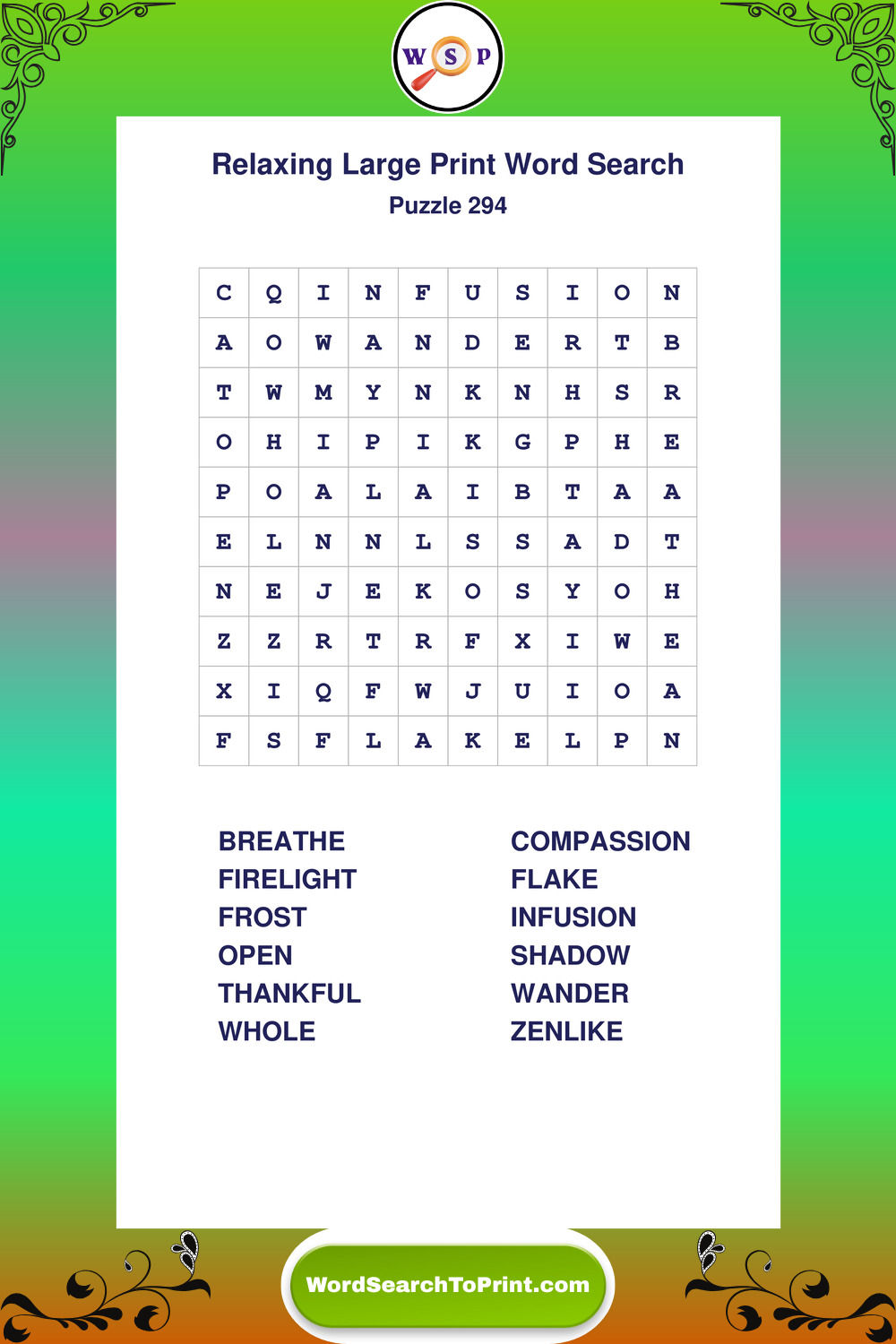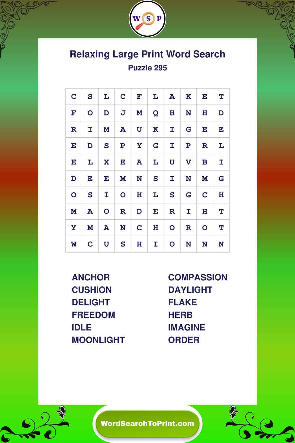 Free Large Print Relaxing Wordsearches