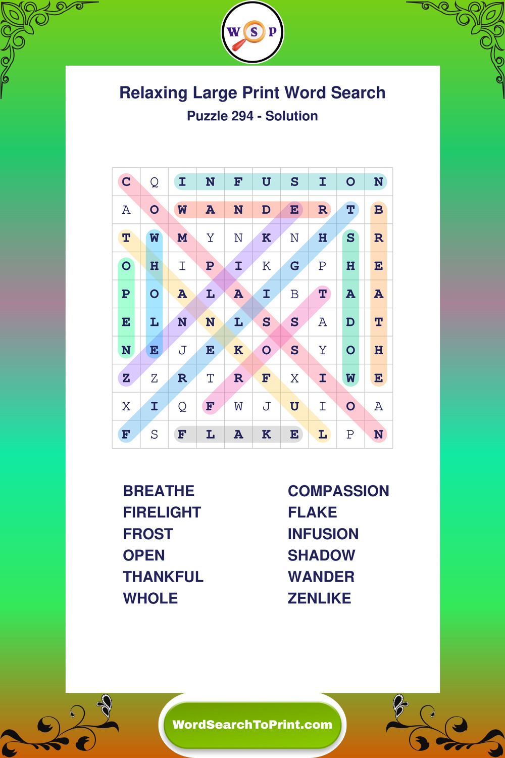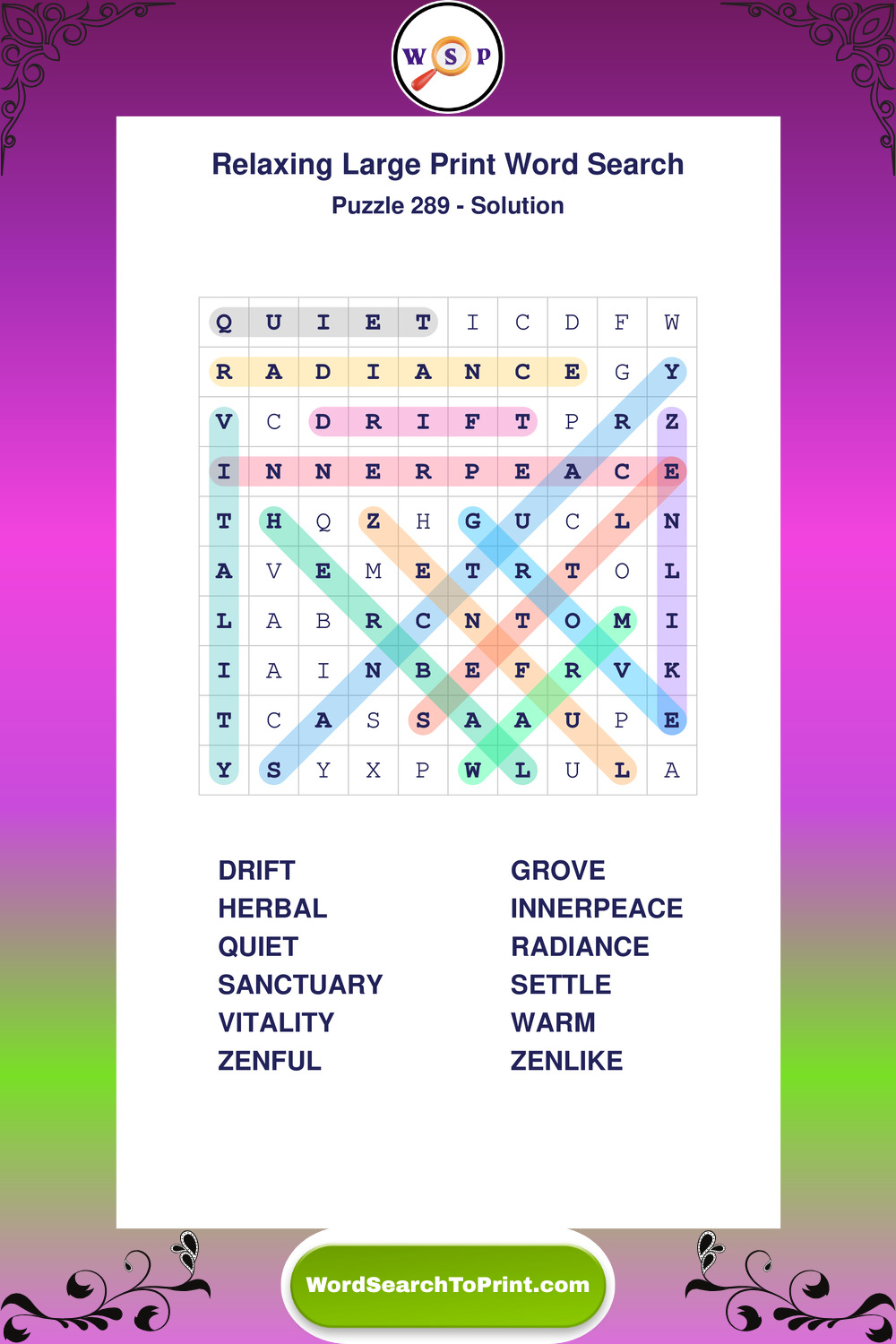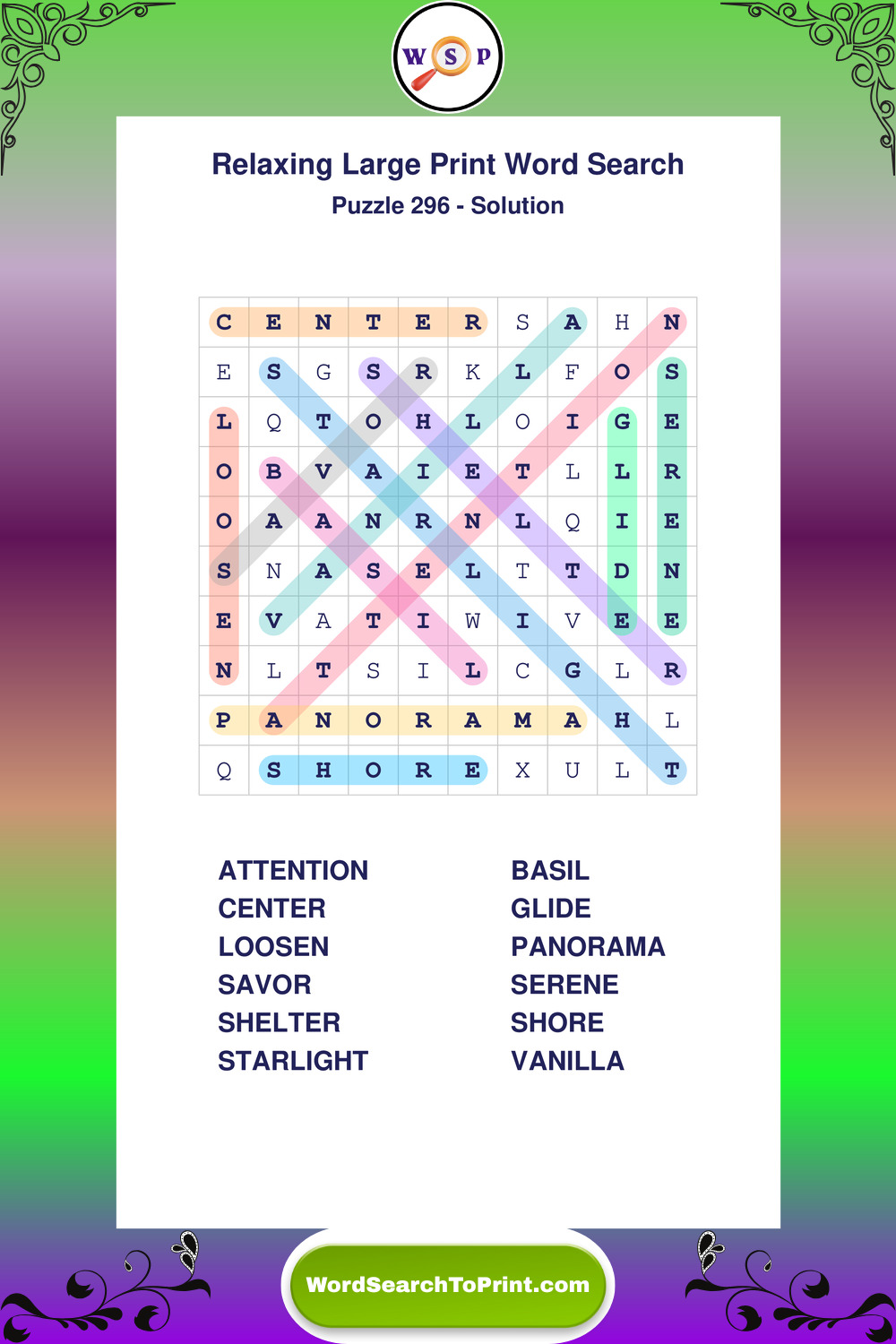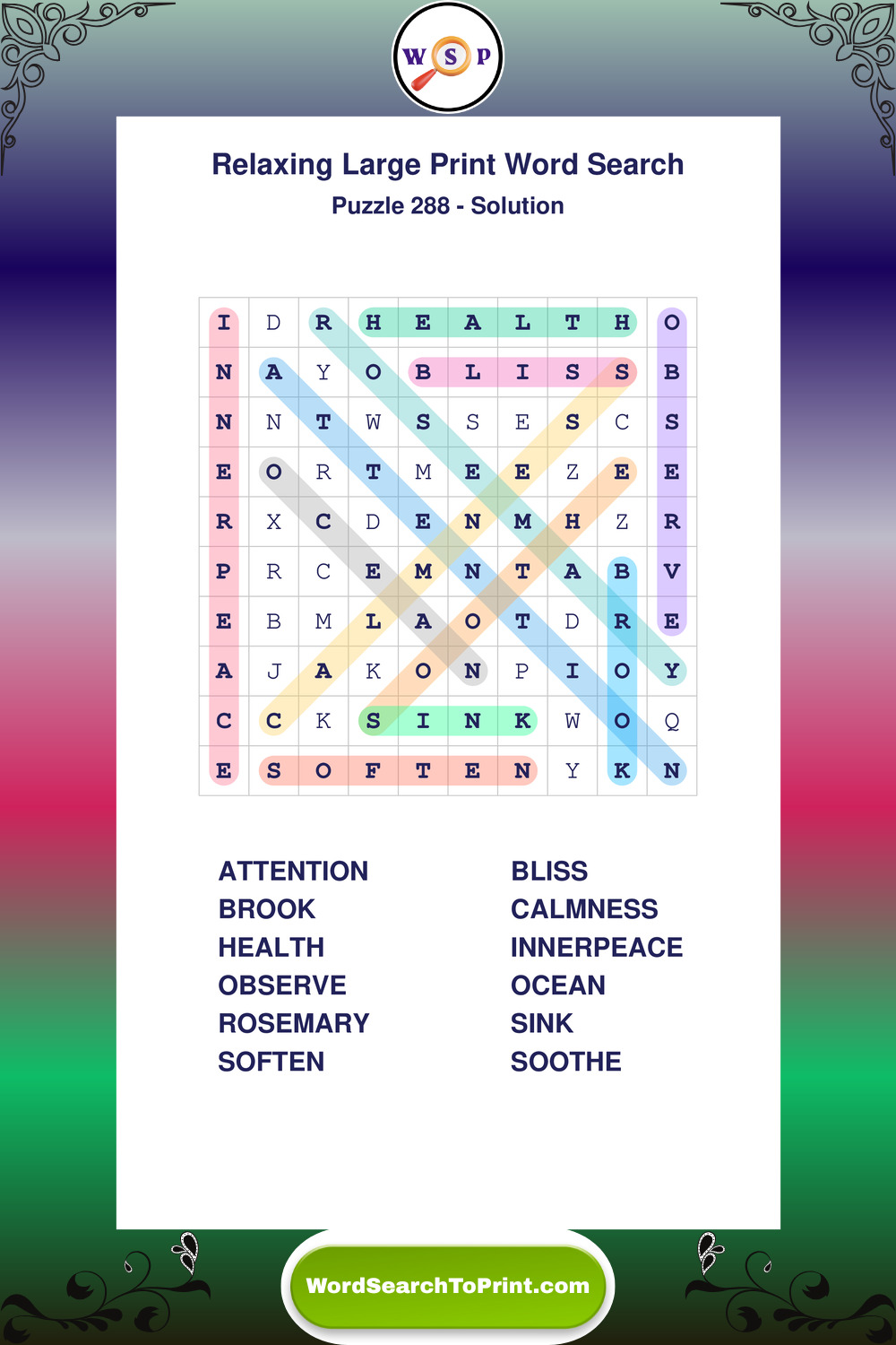 Free Large Print Relaxing Wordsearches