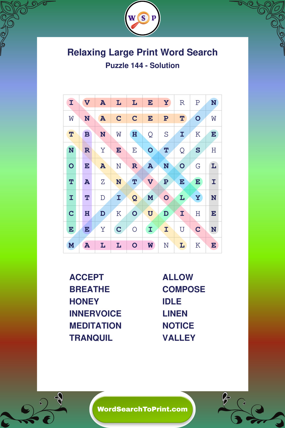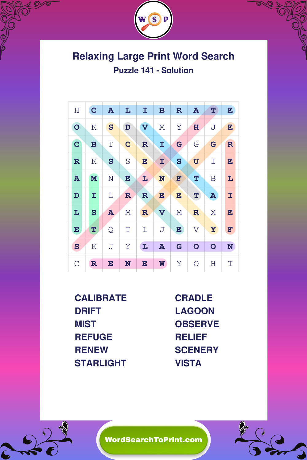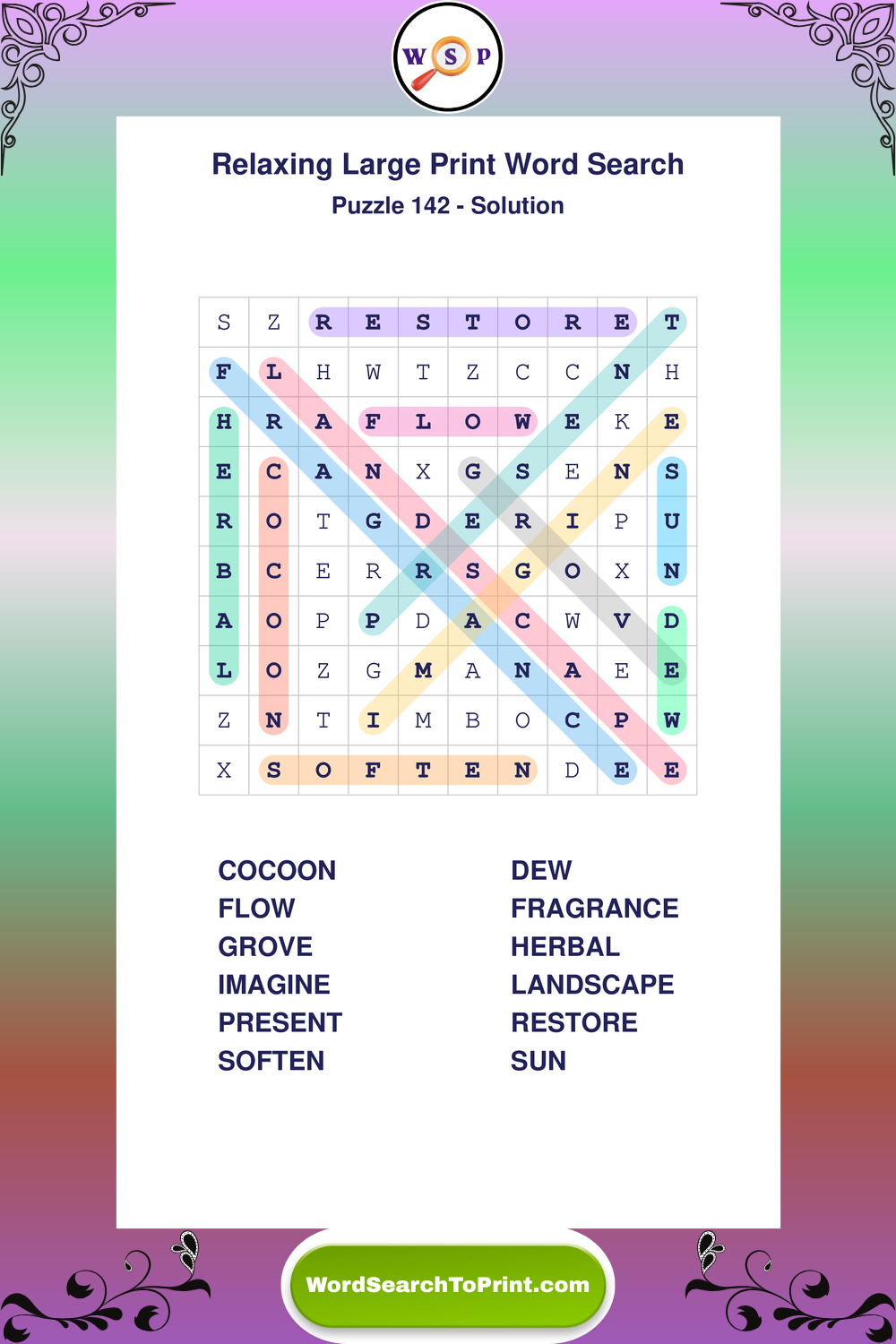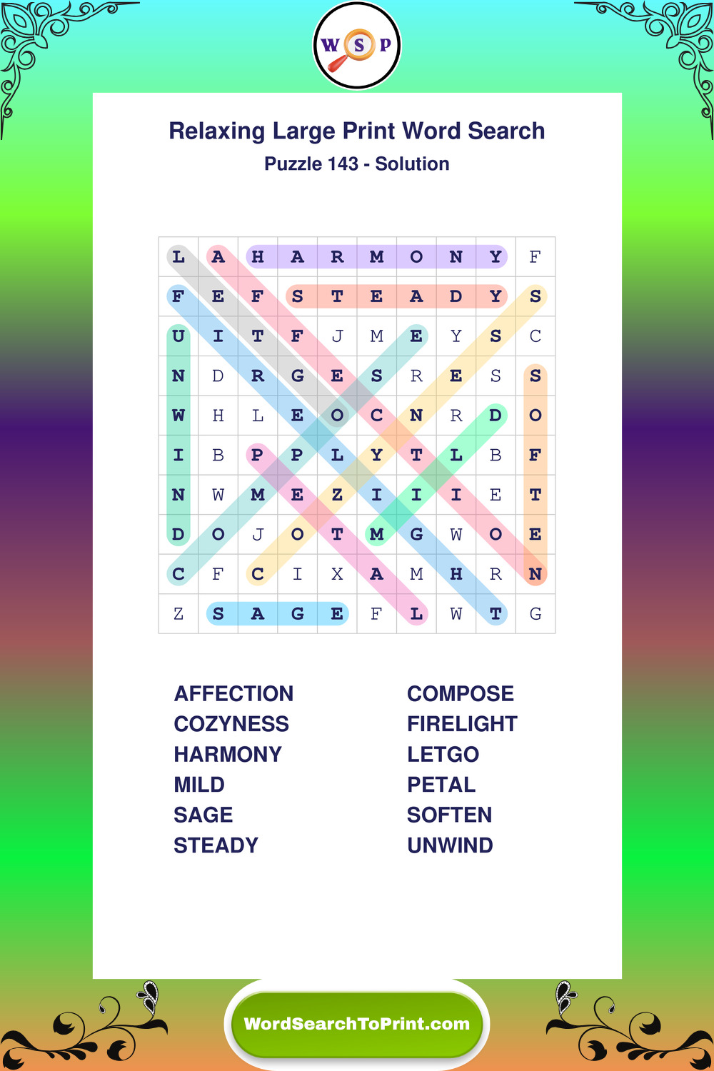 Relax your mind with extra-clear Large Print Relaxing Wordsearches. Perfect for seniors, beginners, and anyone wanting a stress-free puzzle break.