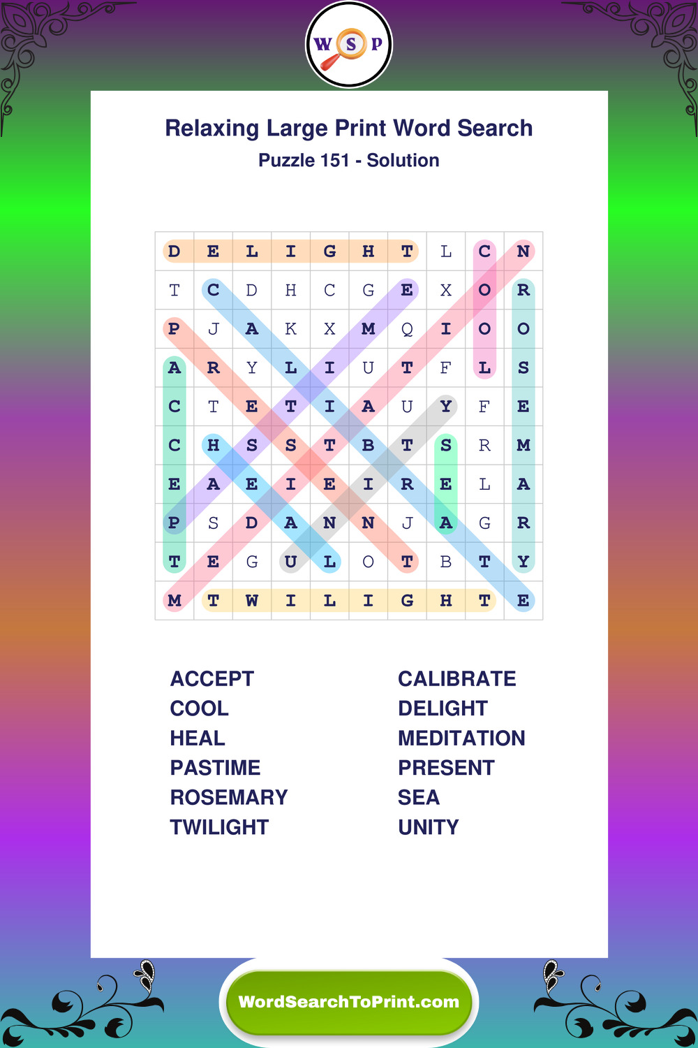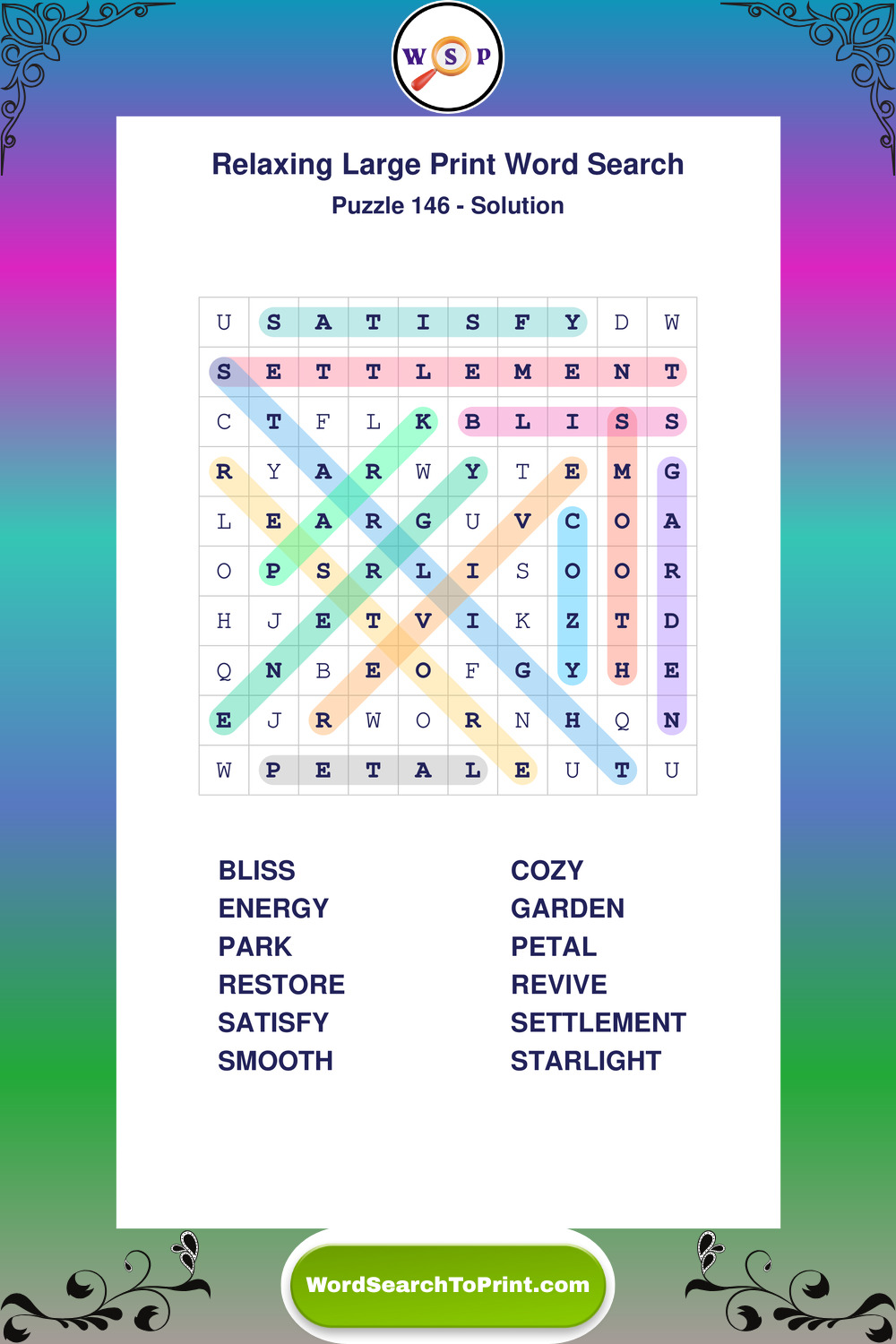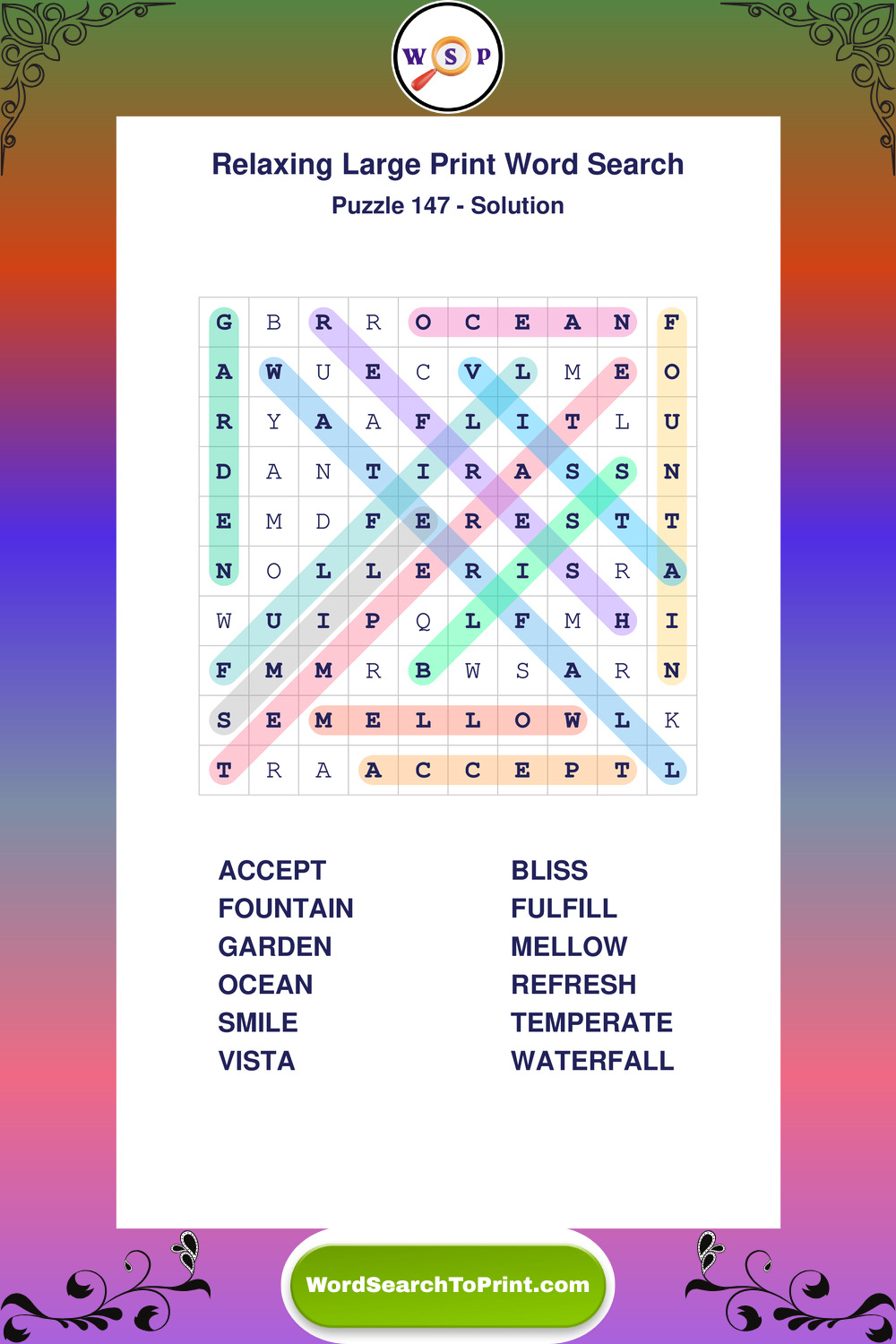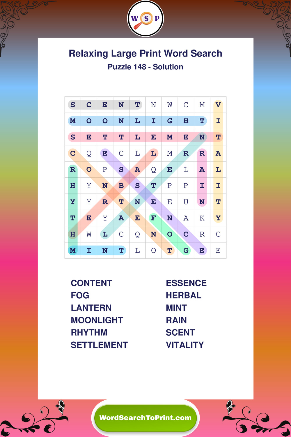 Relax your mind with extra-clear Large Print Relaxing Wordsearches. Perfect for seniors, beginners, and anyone wanting a stress-free puzzle break.