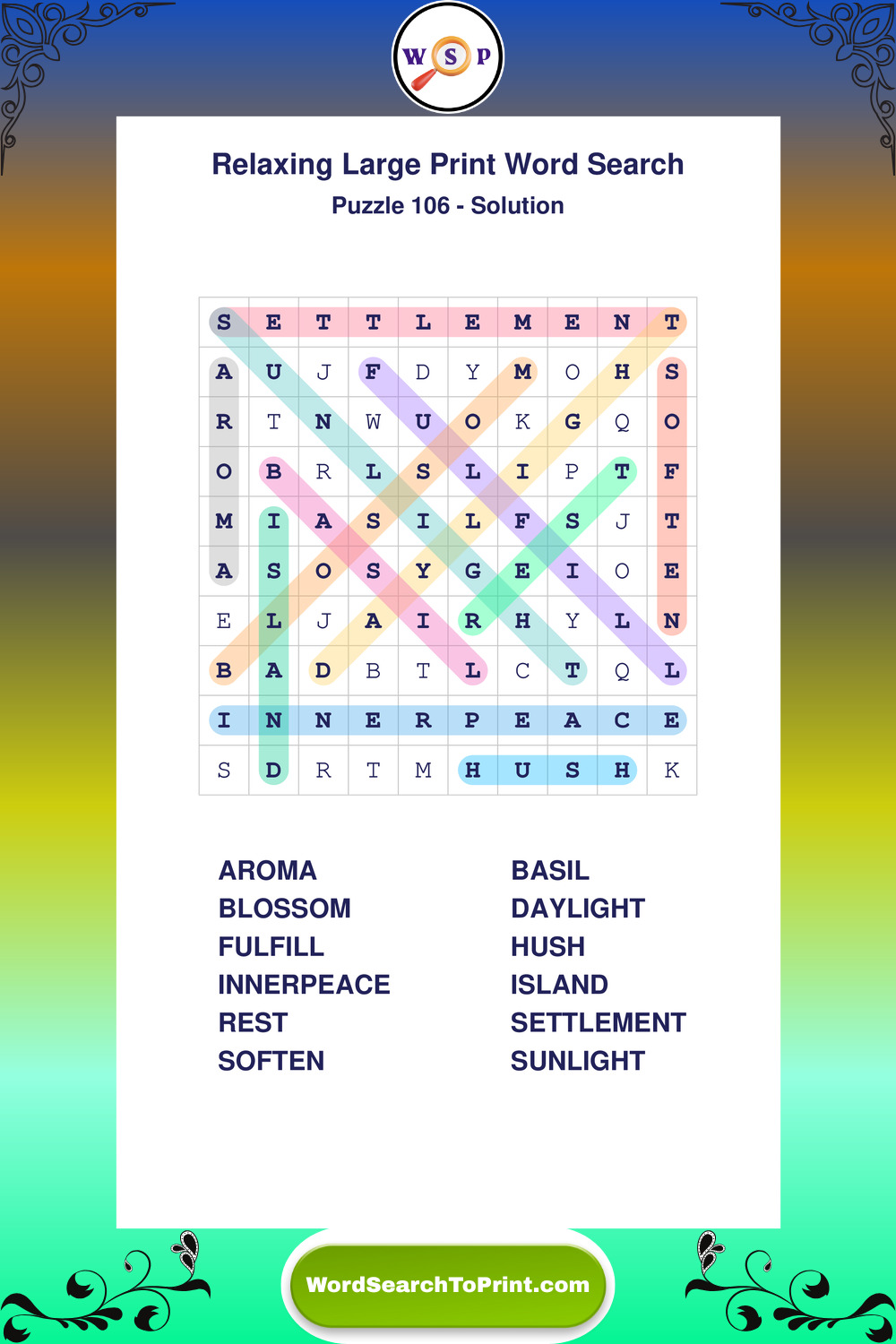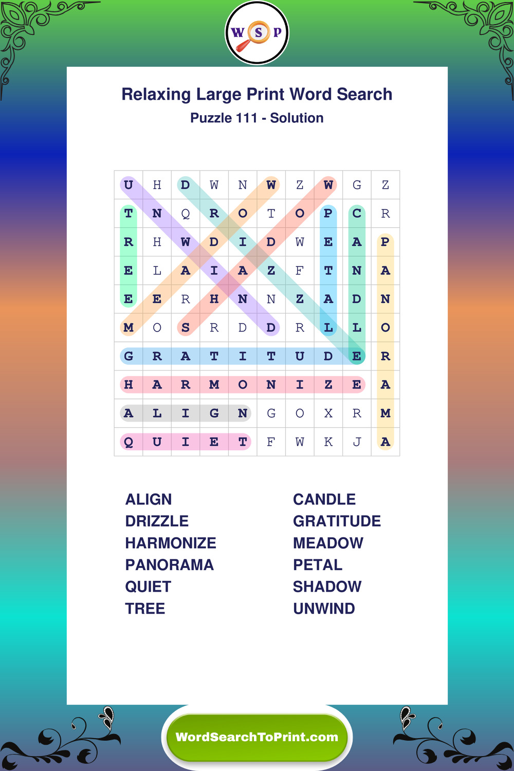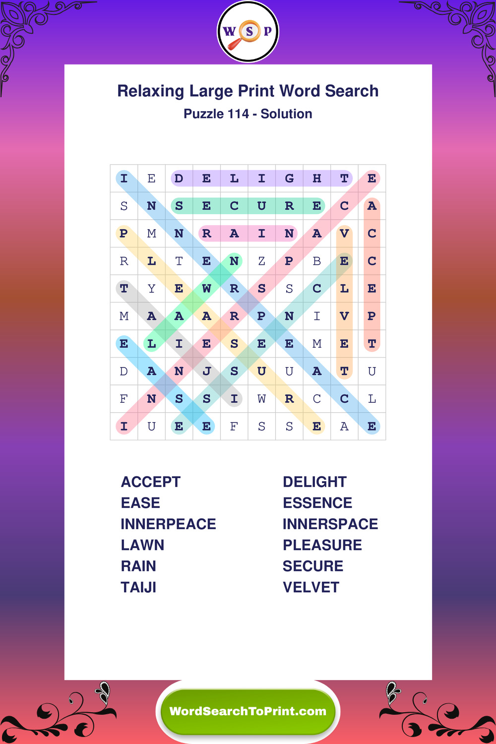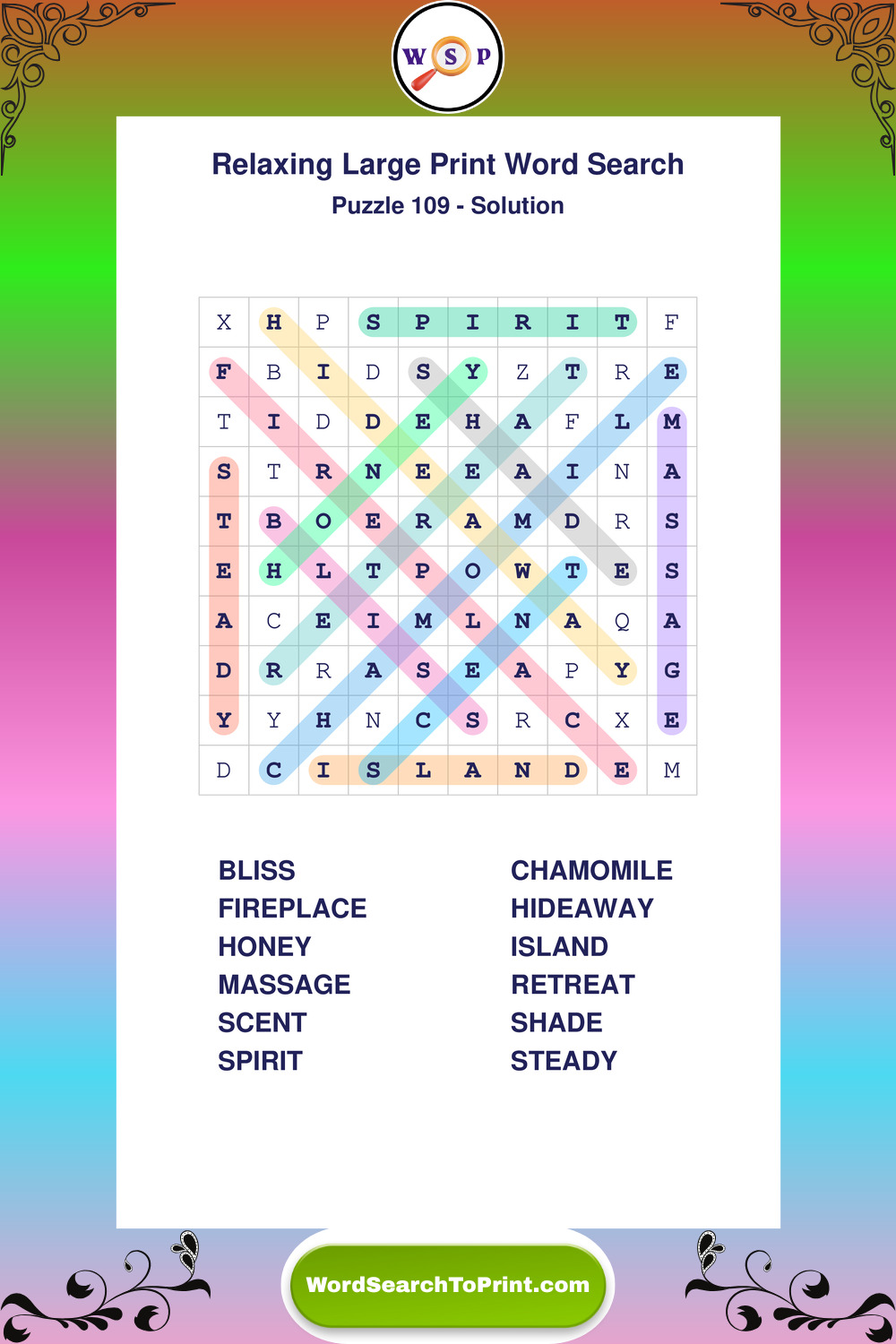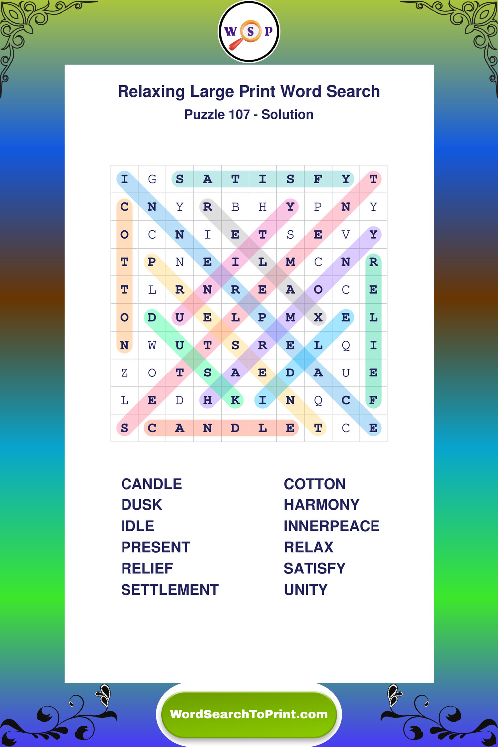 Relax your mind with extra-clear Large Print Relaxing Wordsearches. Perfect for seniors, beginners, and anyone wanting a stress-free puzzle break.