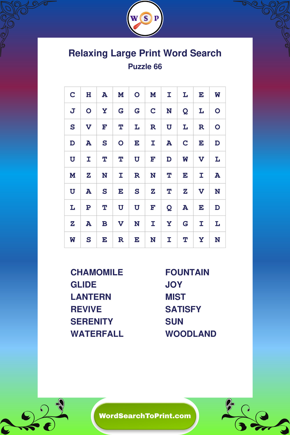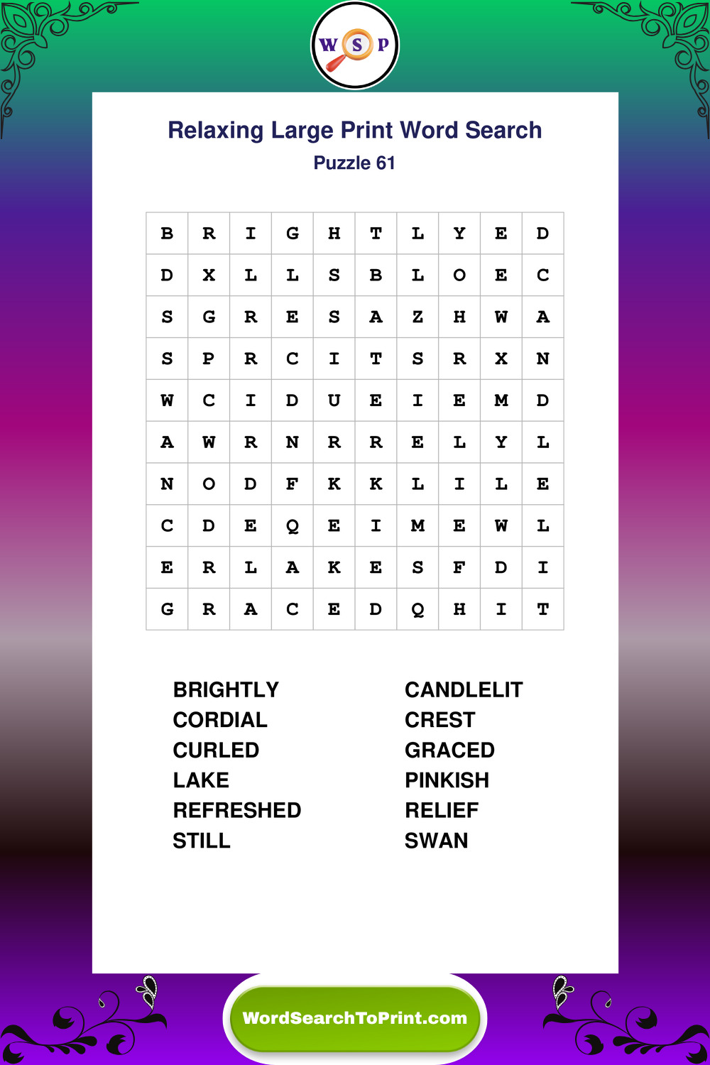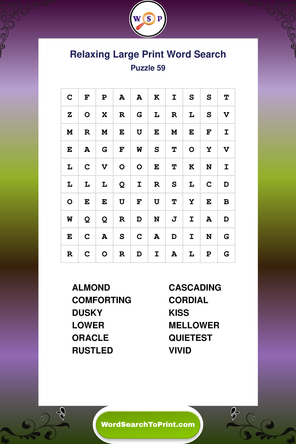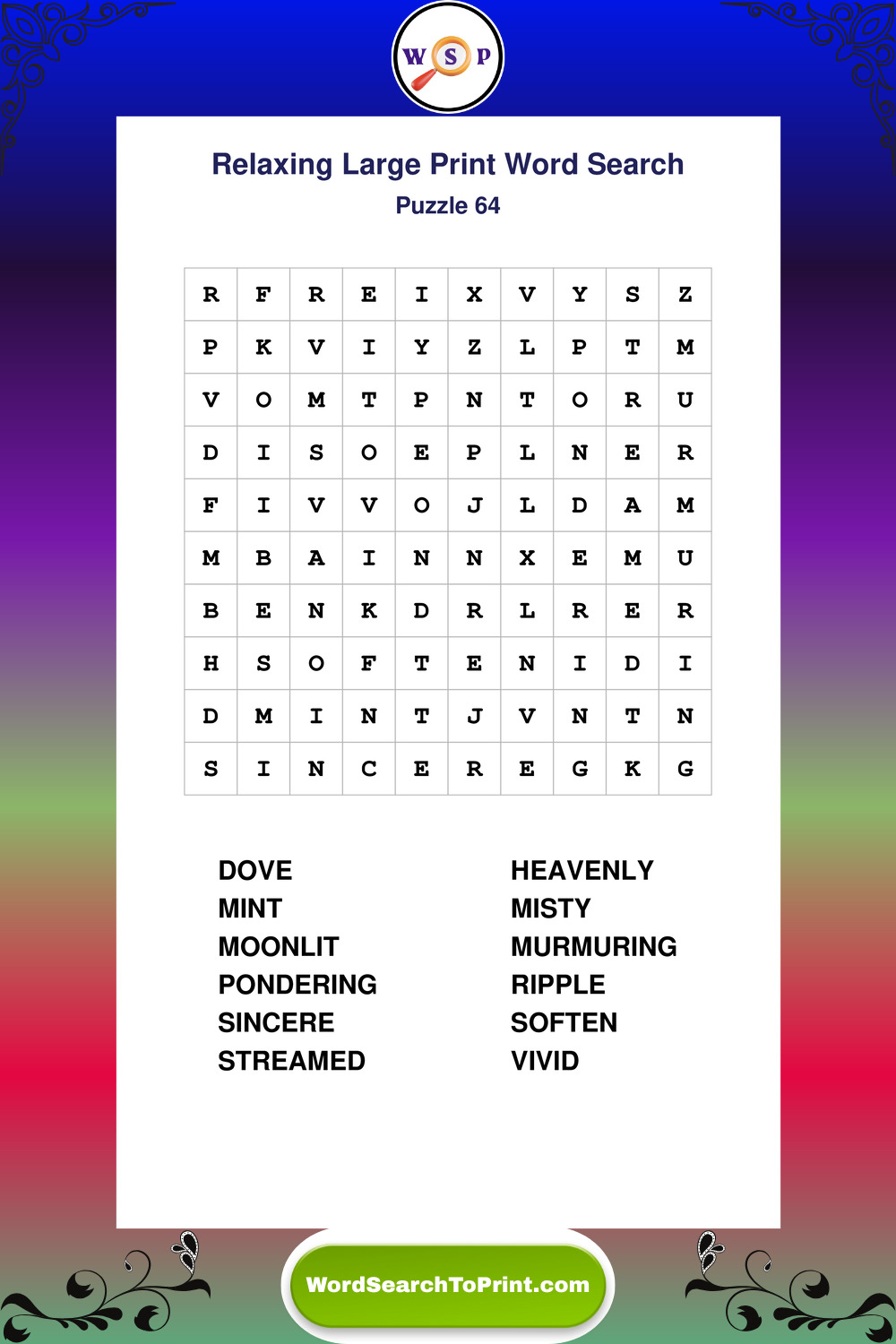 Relax your mind with extra-clear Large Print Relaxing Wordsearches. Perfect for seniors, beginners, and anyone wanting a stress-free puzzle break.