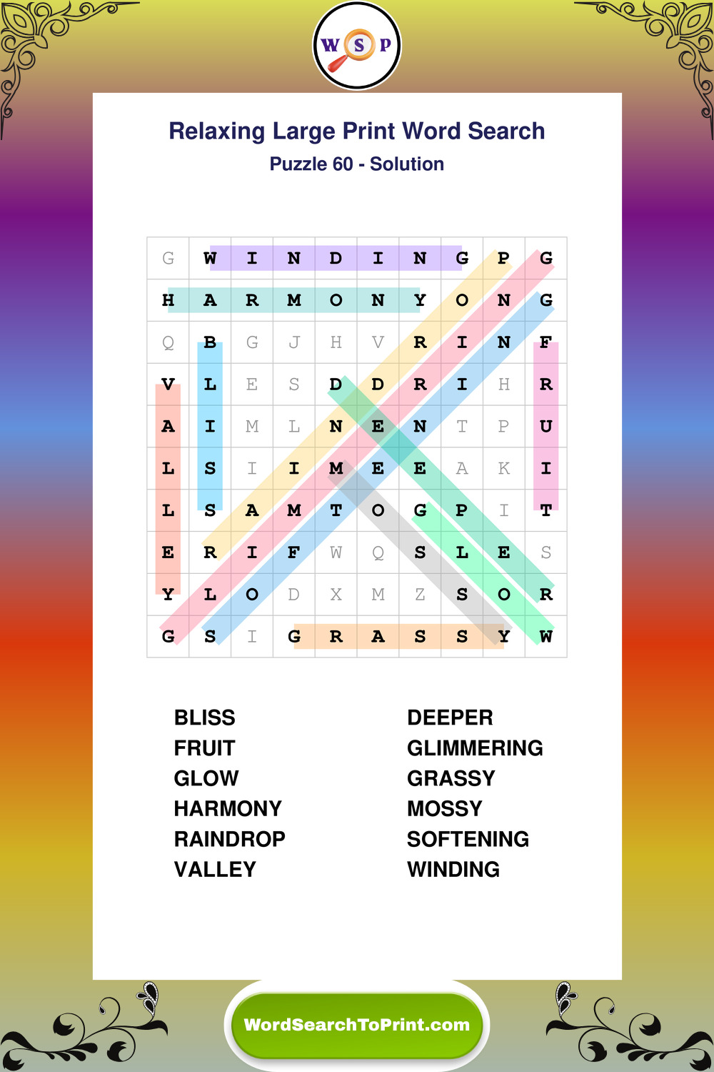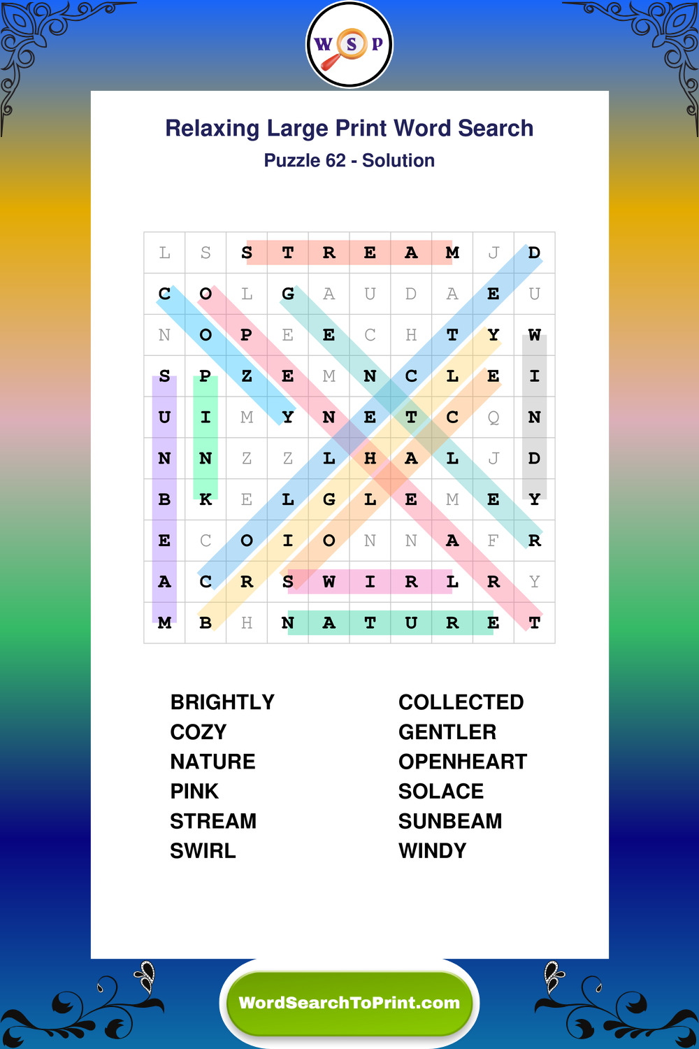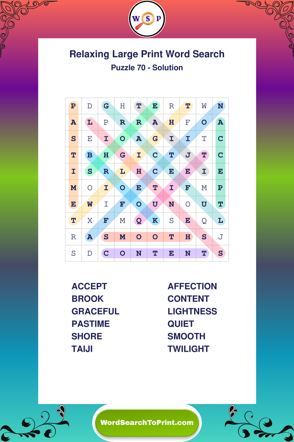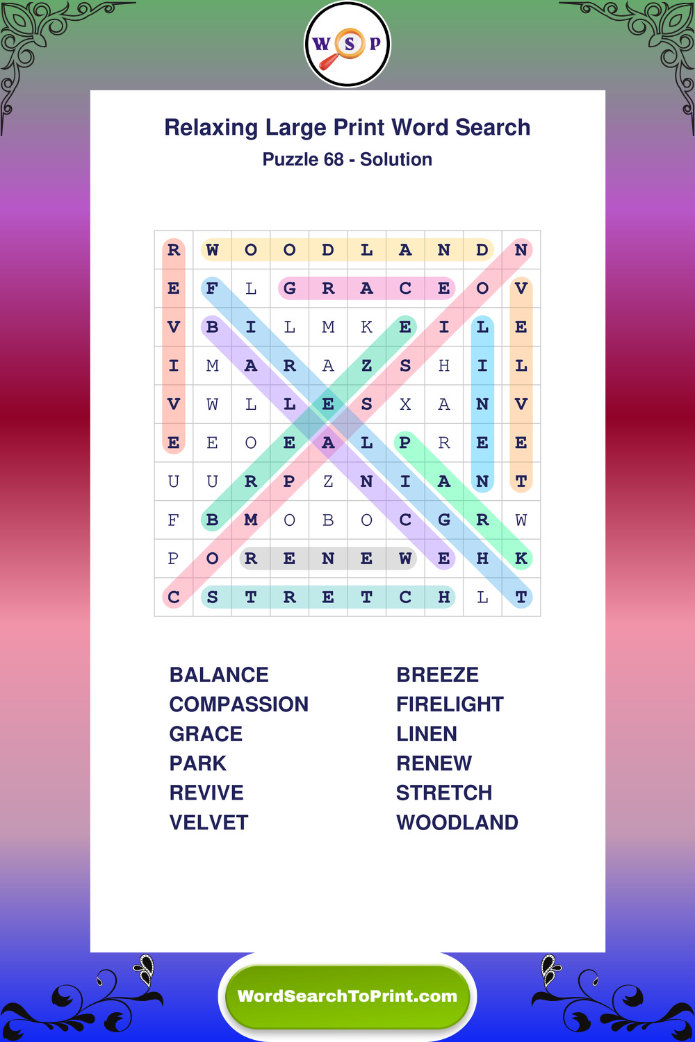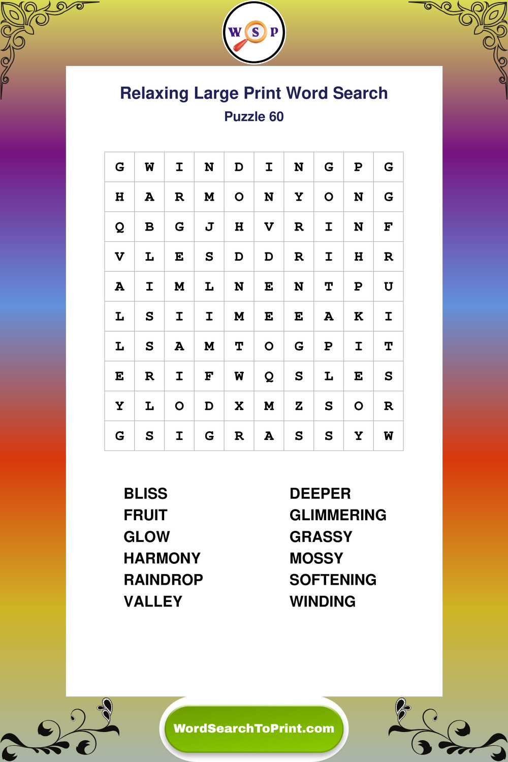 Relax your mind with extra-clear Large Print Relaxing Wordsearches. Perfect for seniors, beginners, and anyone wanting a stress-free puzzle break.