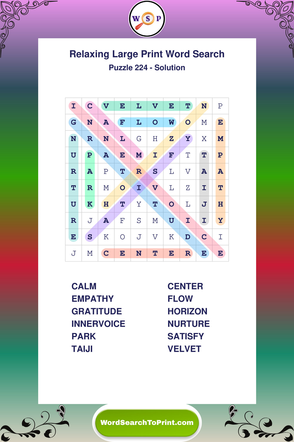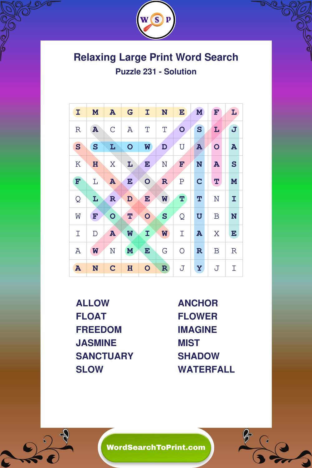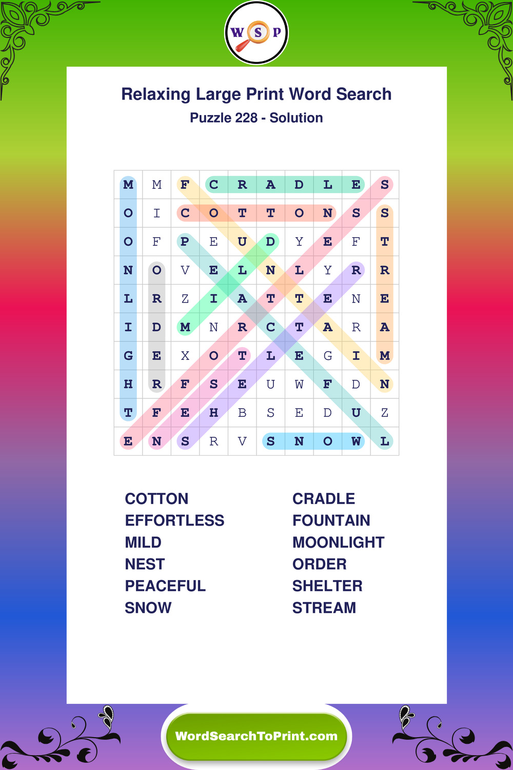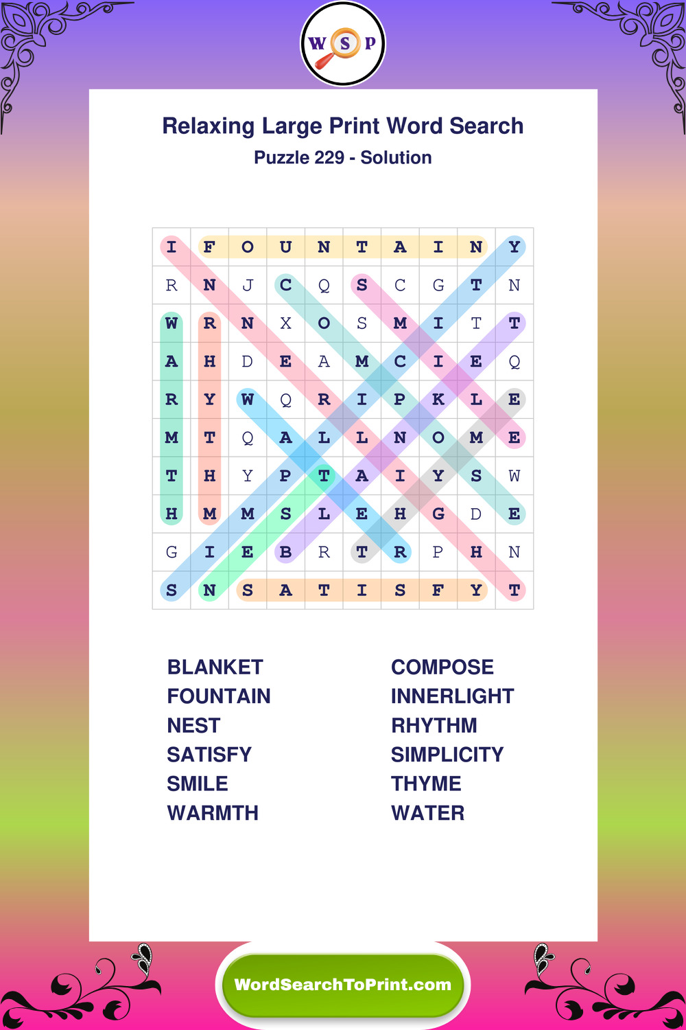 Relax your mind with extra-clear Large Print Relaxing Wordsearches. Perfect for seniors, beginners, and anyone wanting a stress-free puzzle break.