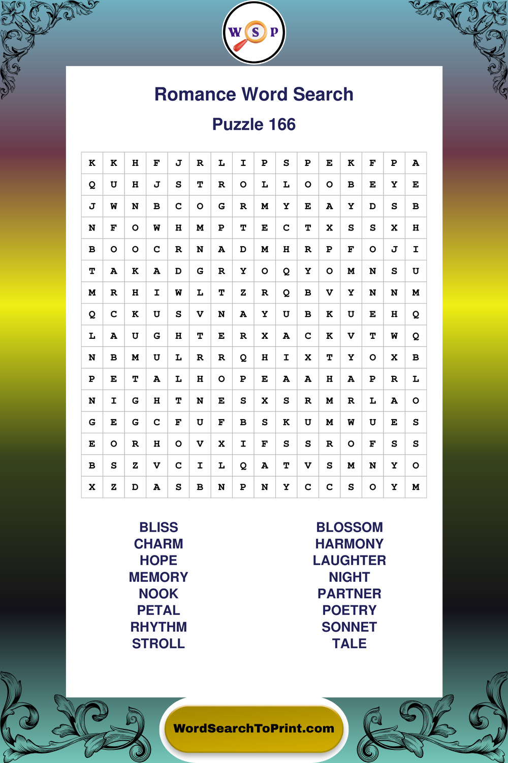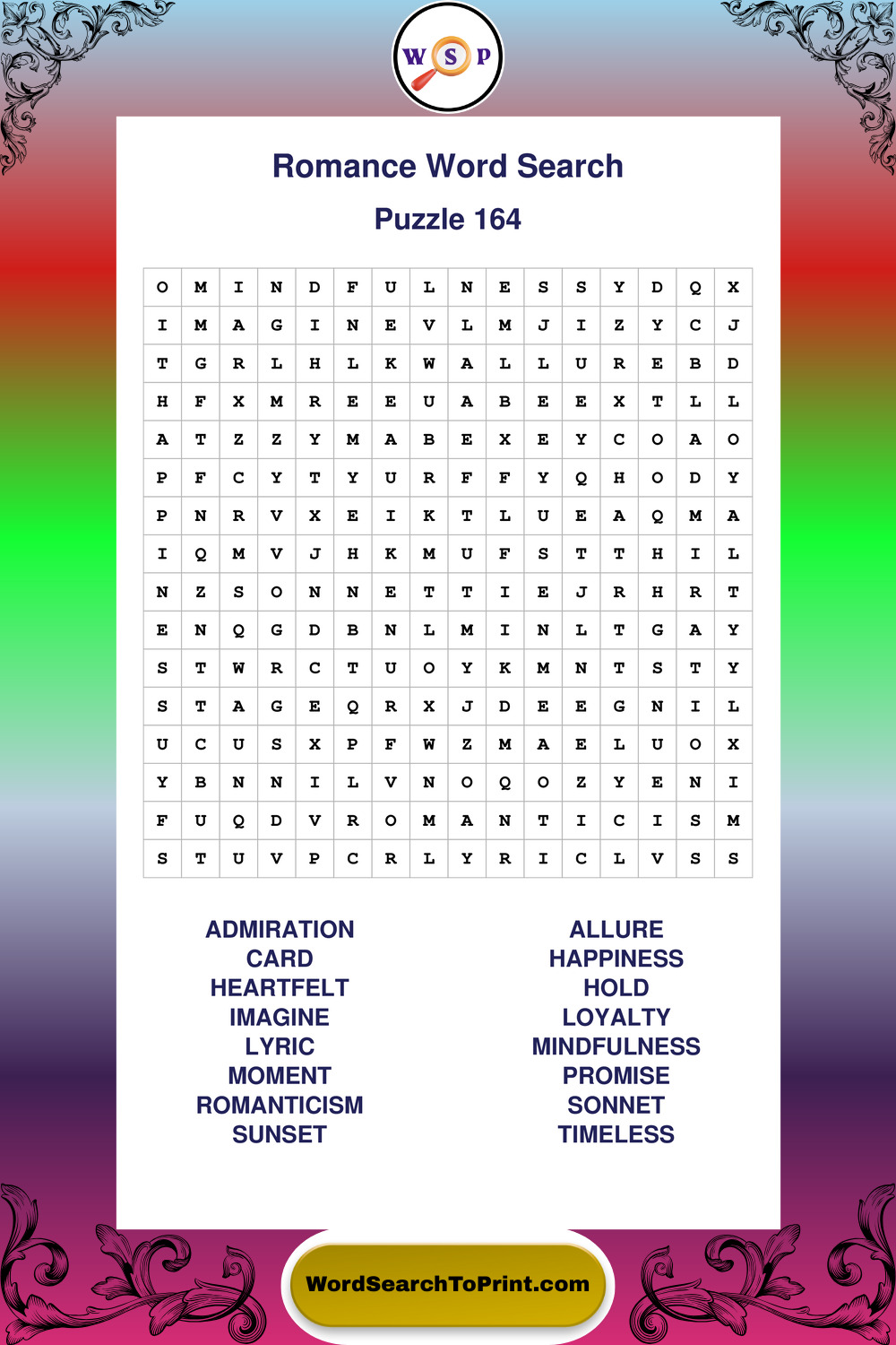 This collection of large print Romance wordsearches is designed for smooth reading, gentle focus, and enjoyable puzzle time.