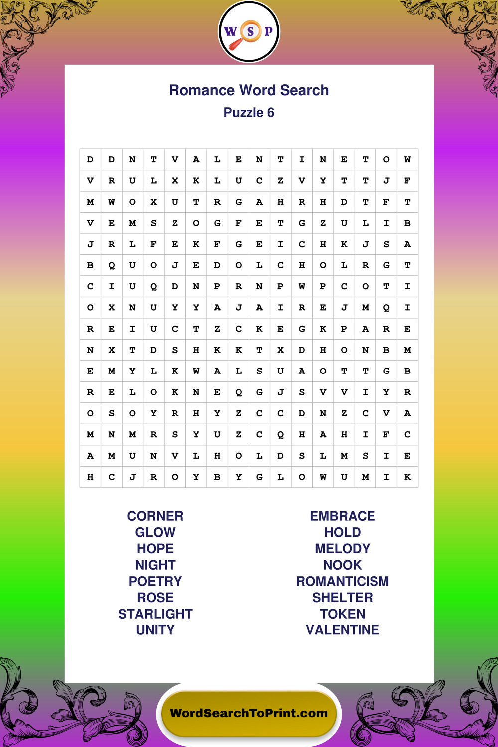 This collection of large print Romance wordsearches is designed for smooth reading, gentle focus, and enjoyable puzzle time.