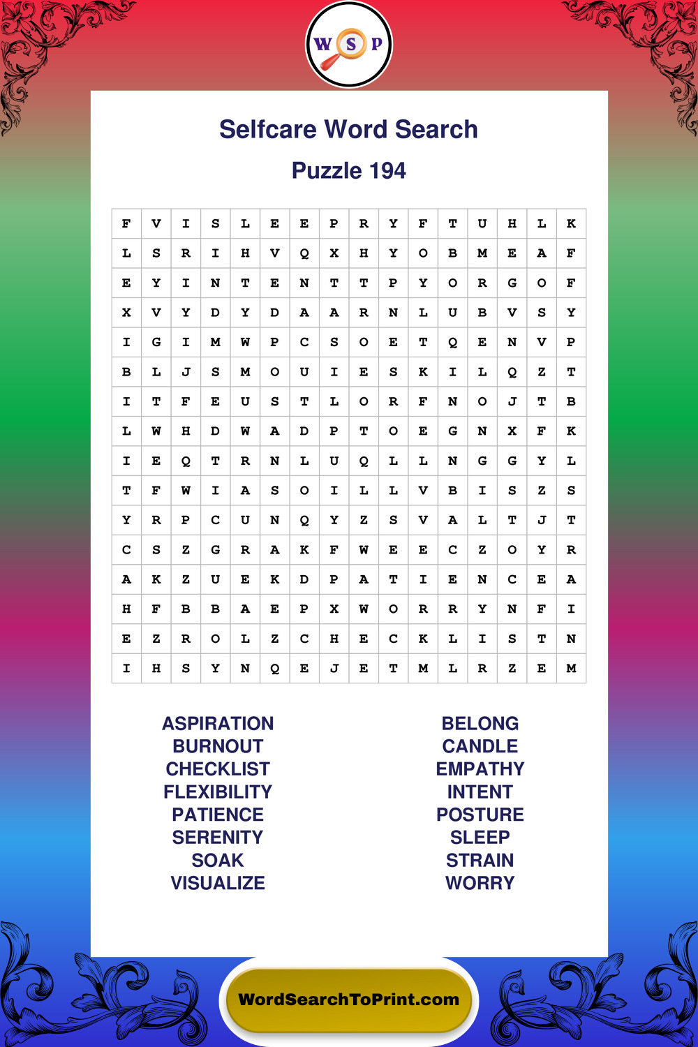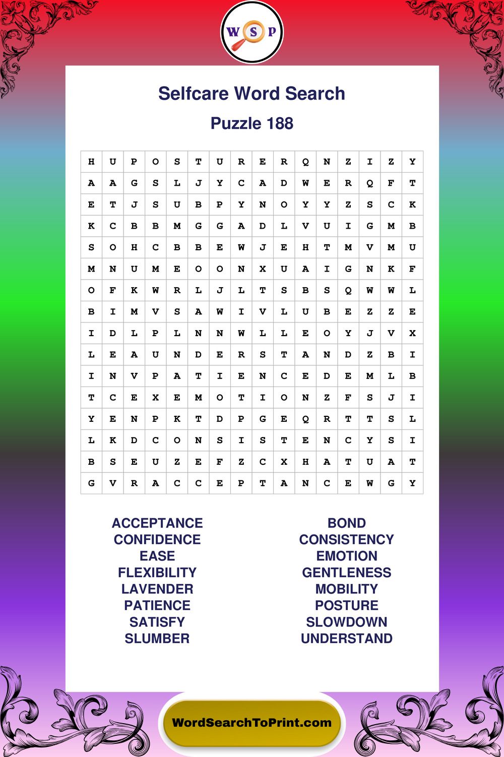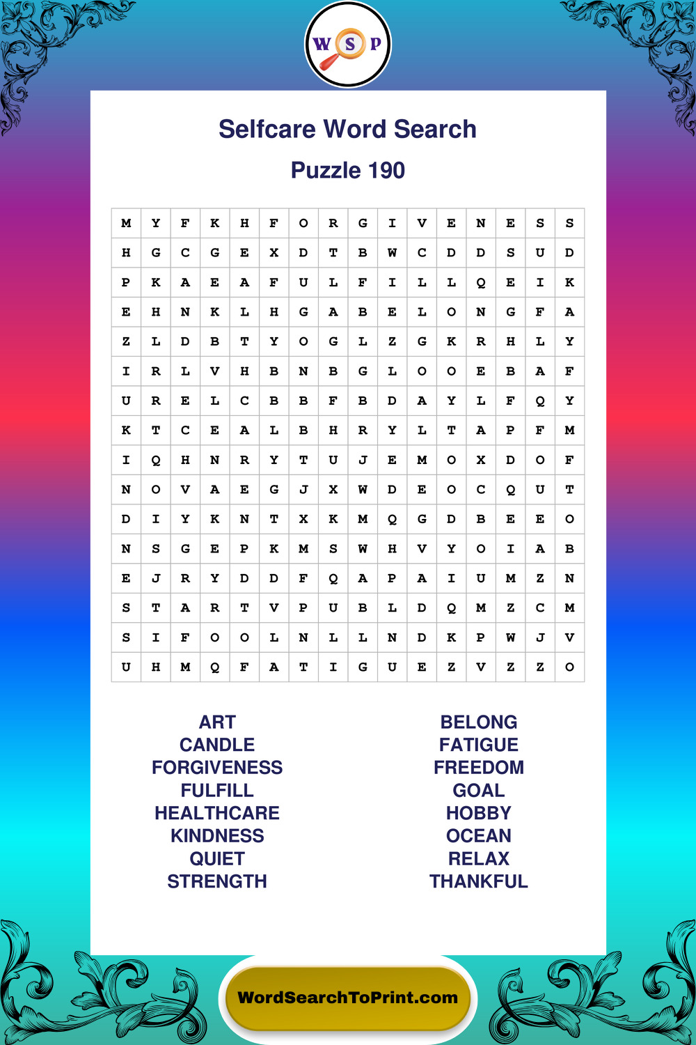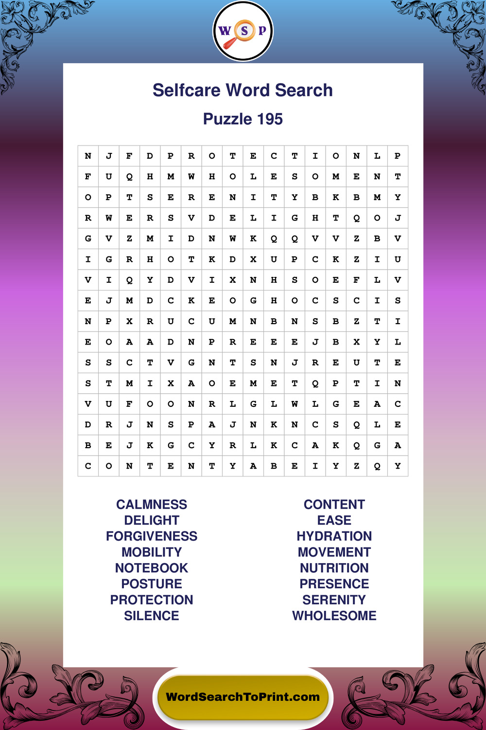 These large print Selfcare wordsearches are ideal for calm focus, light mental exercise, and easy readability.