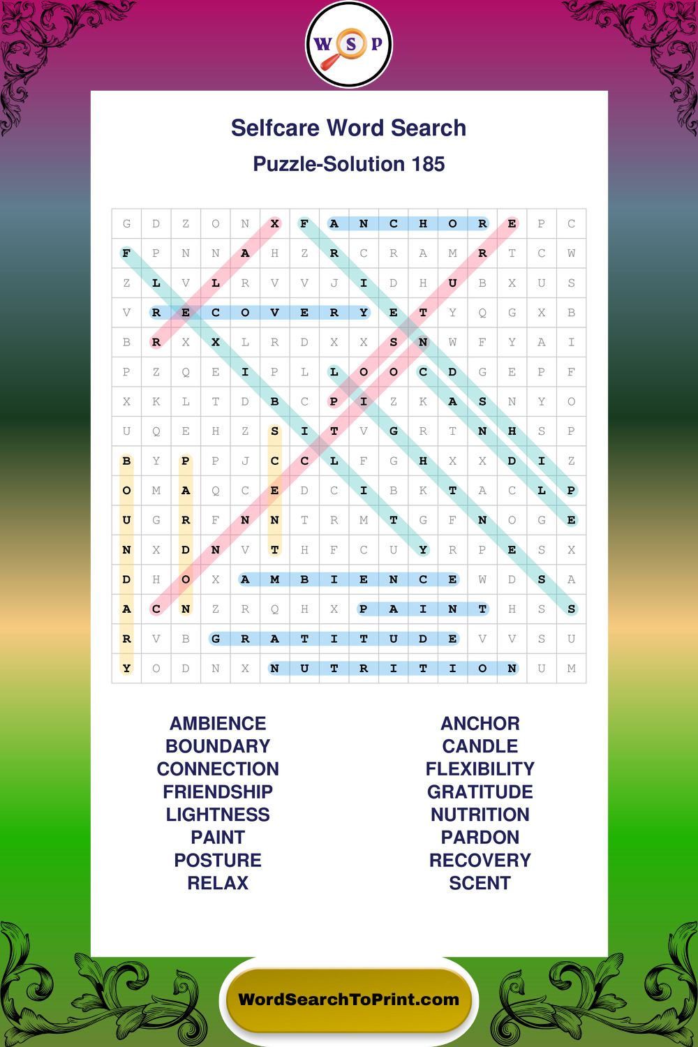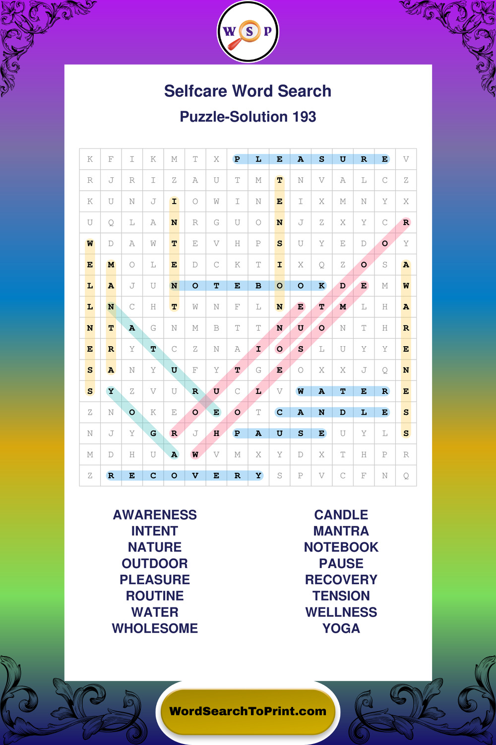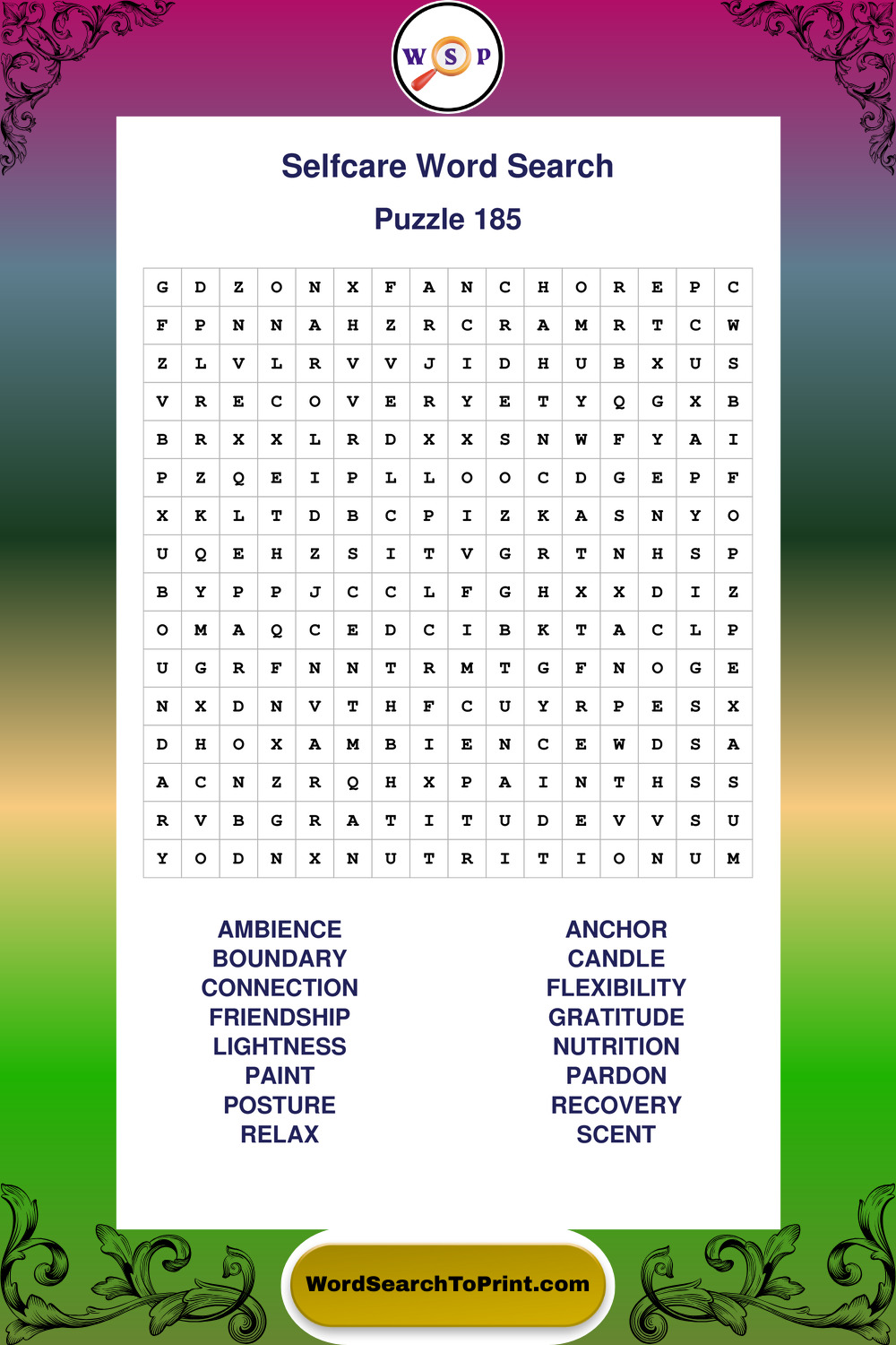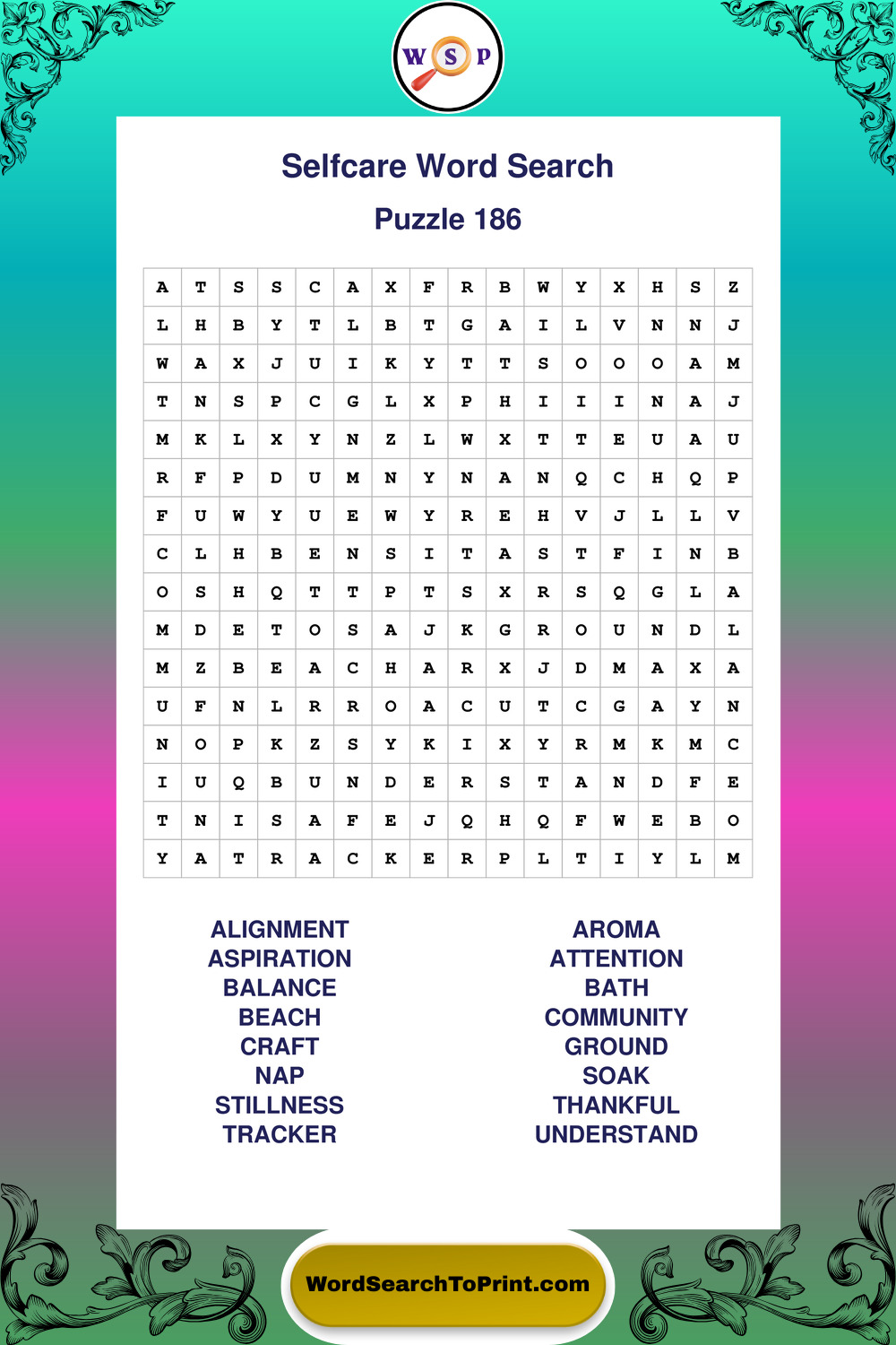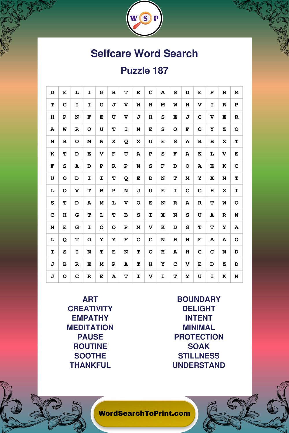 These large print Selfcare wordsearches are ideal for calm focus, light mental exercise, and easy readability.