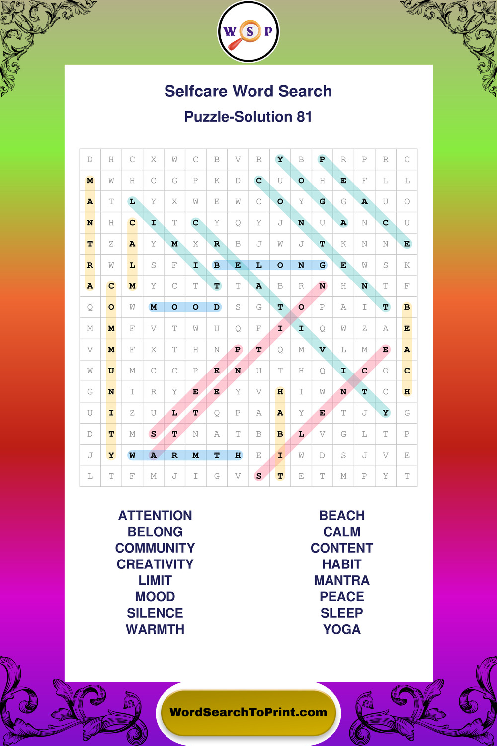 Selfcare Wordsearches