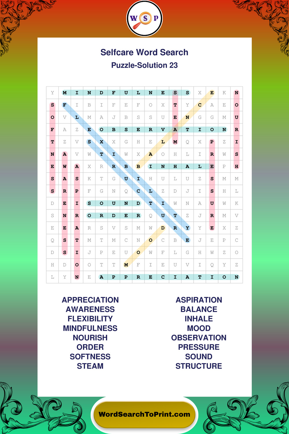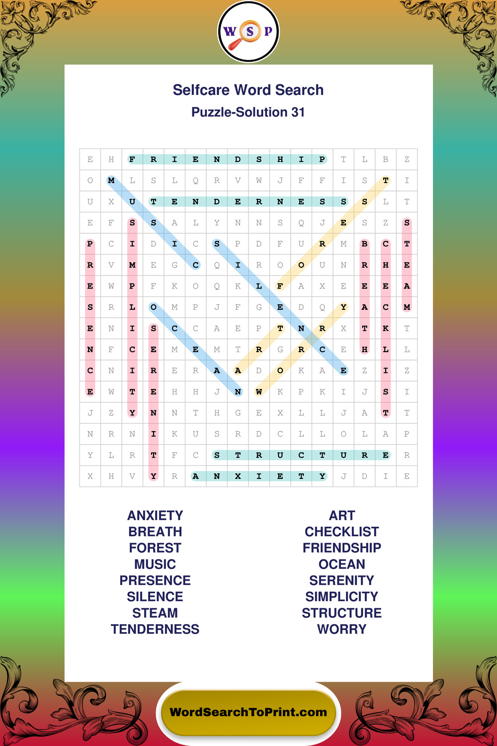 These puzzles highlight positive thinking, emotional awareness, mindfulness, and wellbeing concepts. They provide a relaxing and effective way to connect with this subject while supporting memory and language skills. You may also enjoy our Gratitude word search puzzles and Positive Thinking word search puzzles.