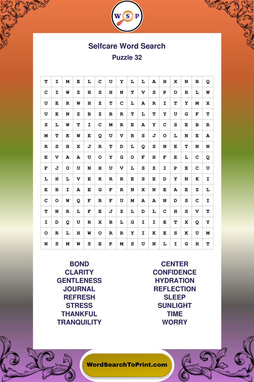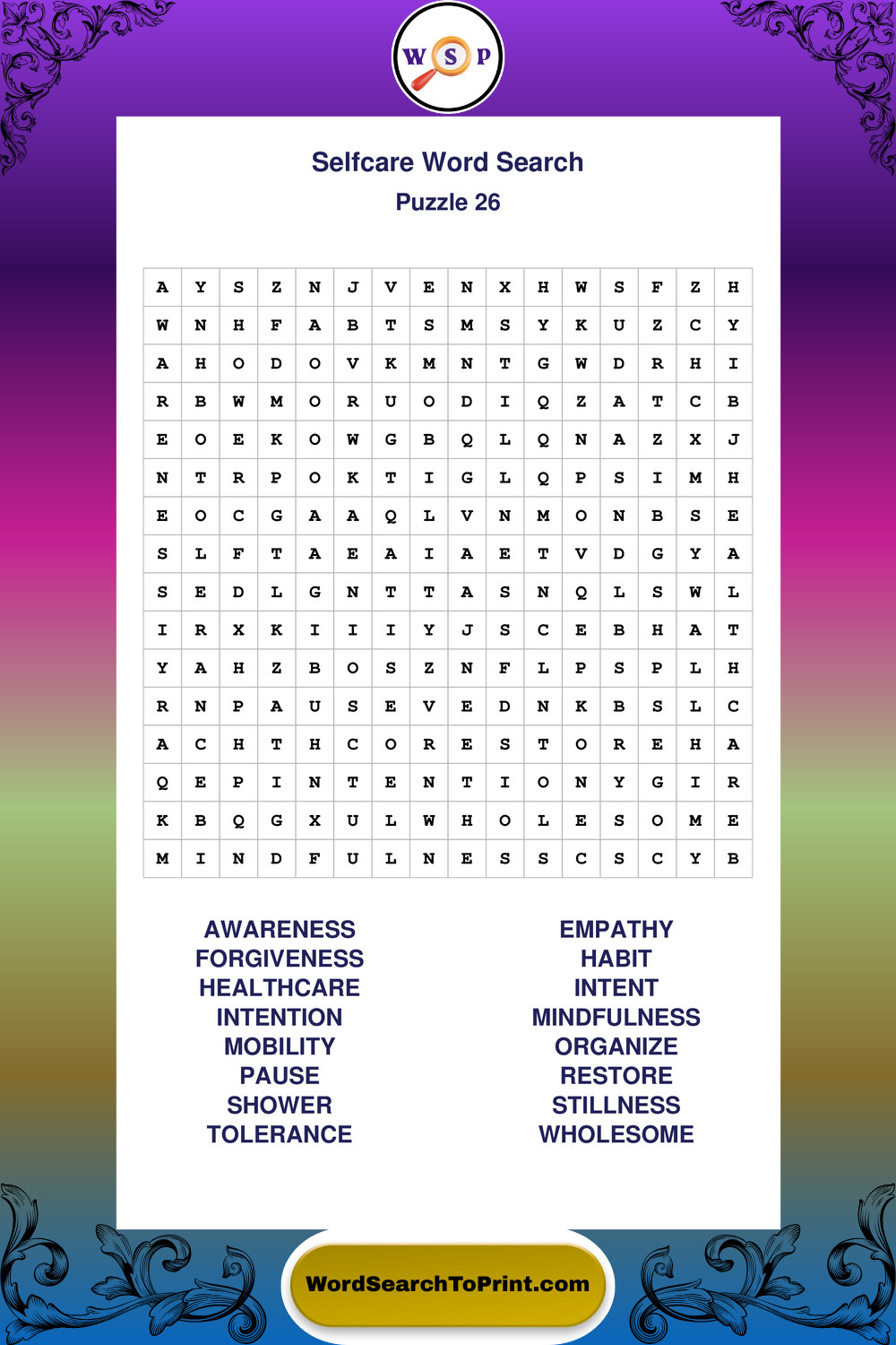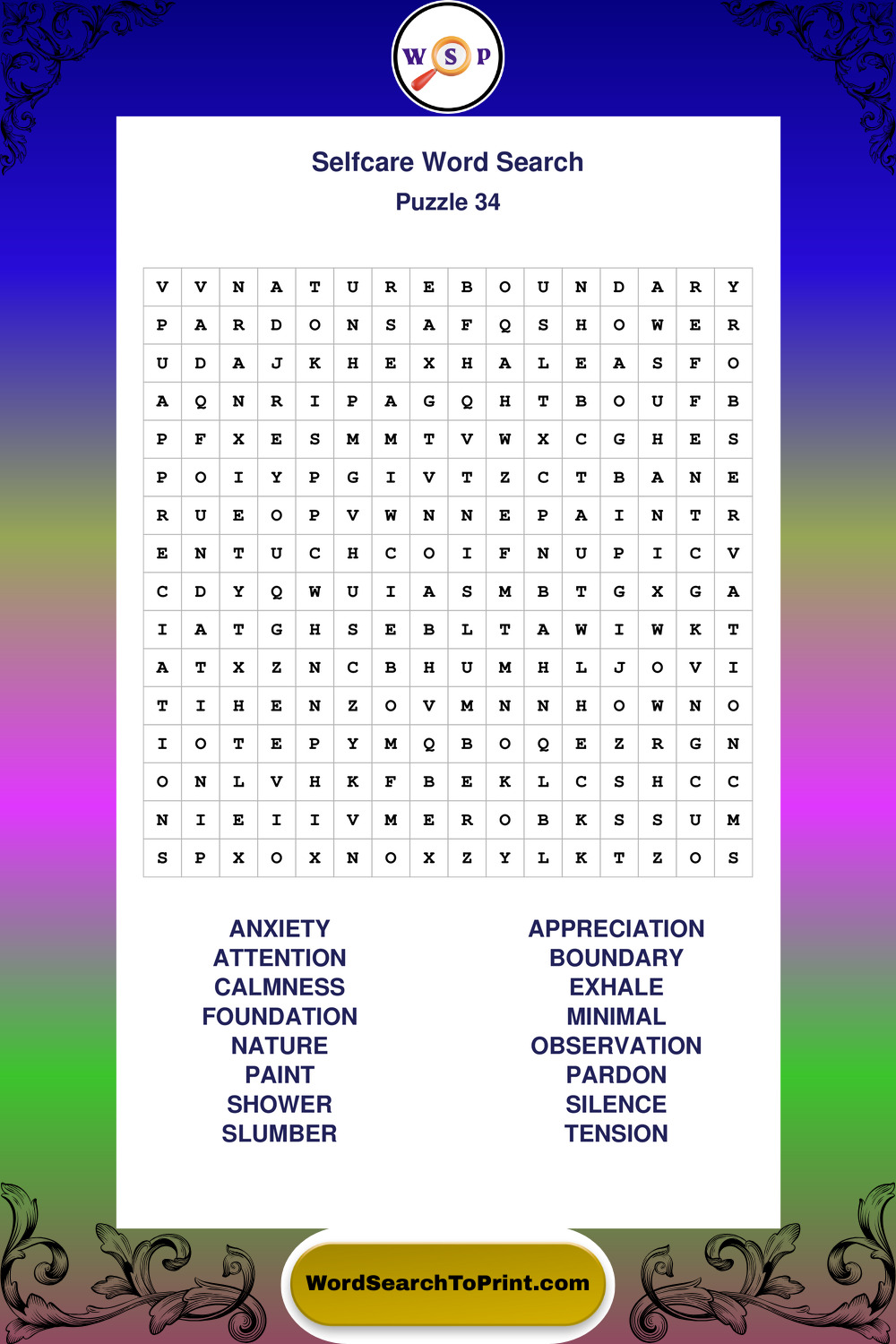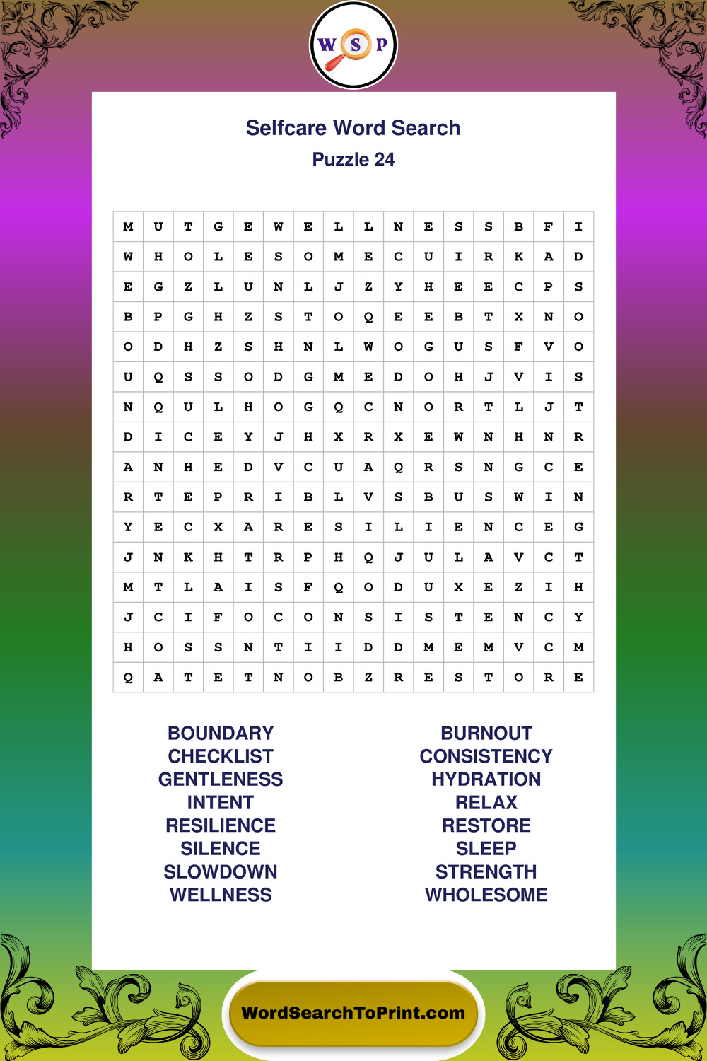 These large print Selfcare wordsearches are ideal for calm focus, light mental exercise, and easy readability.