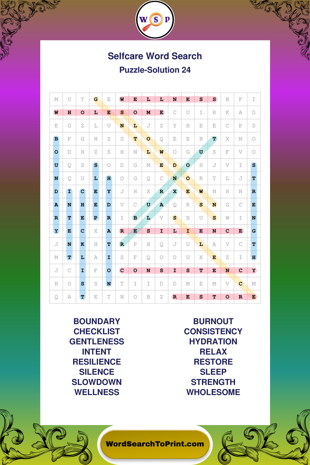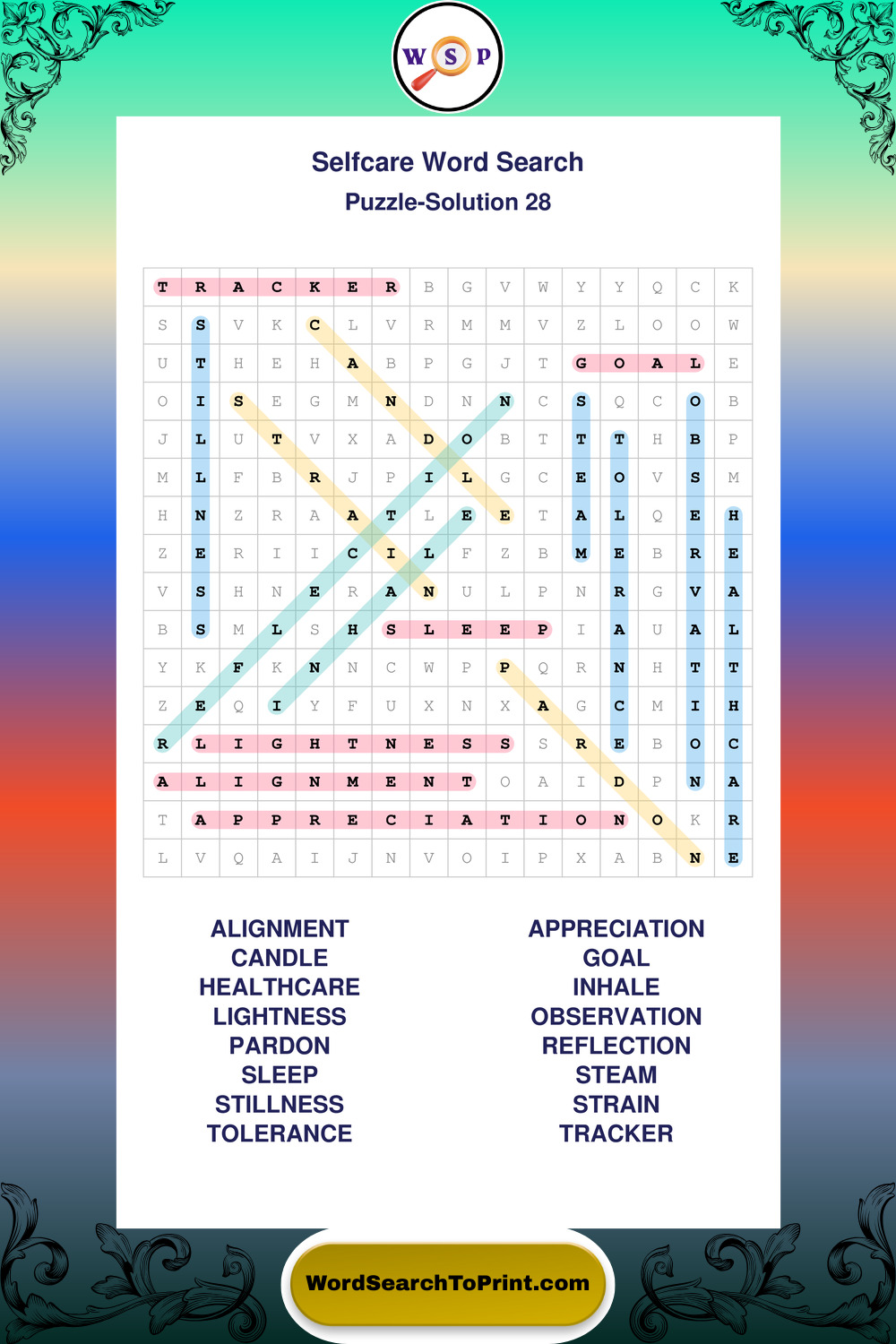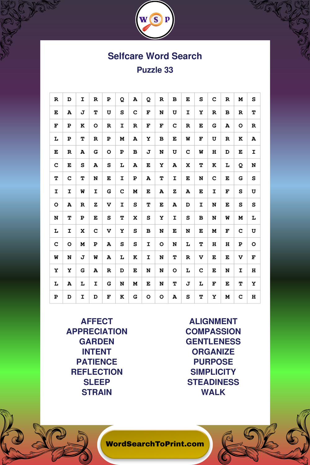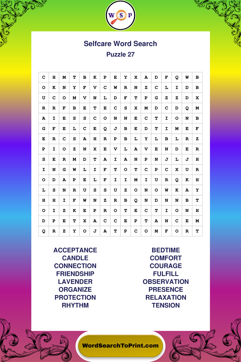 These large print Selfcare wordsearches are ideal for calm focus, light mental exercise, and easy readability.