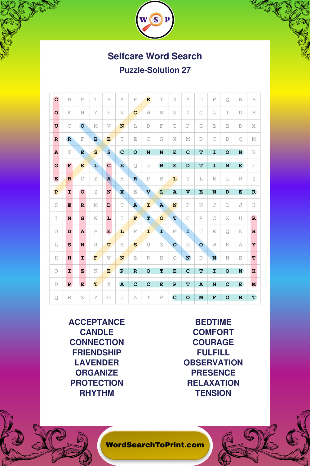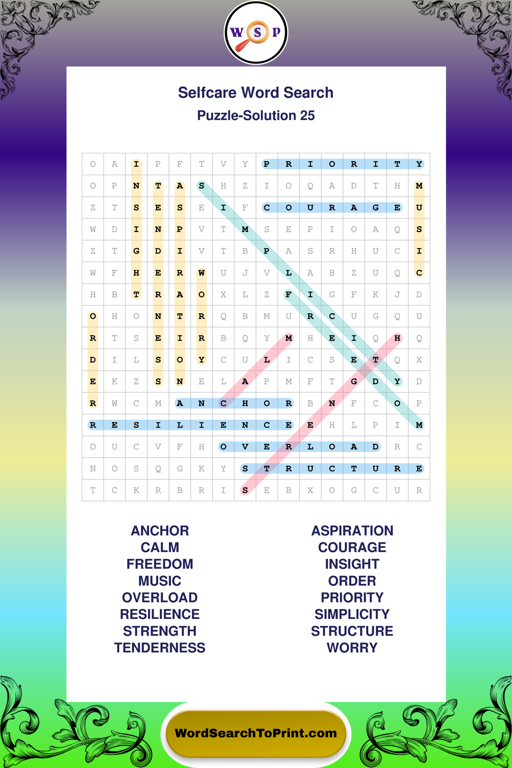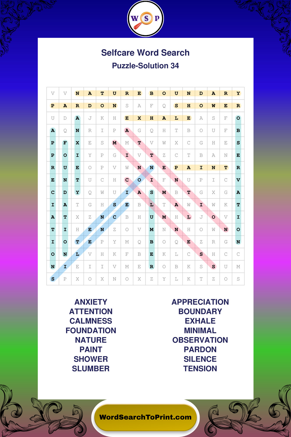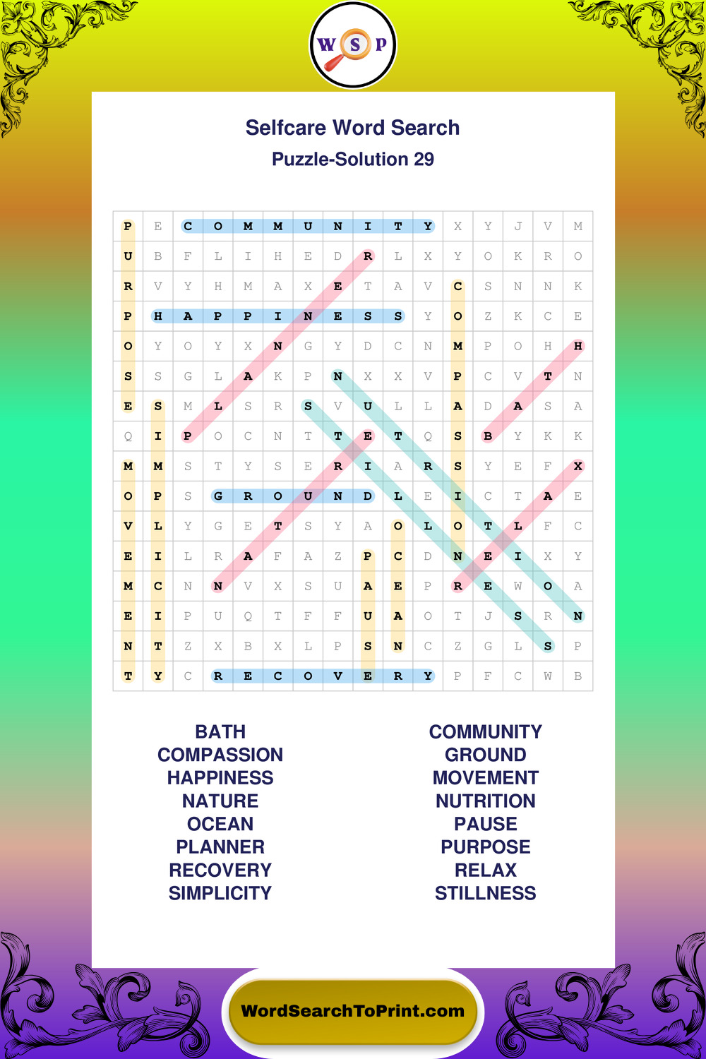 These large print Selfcare wordsearches are ideal for calm focus, light mental exercise, and easy readability.